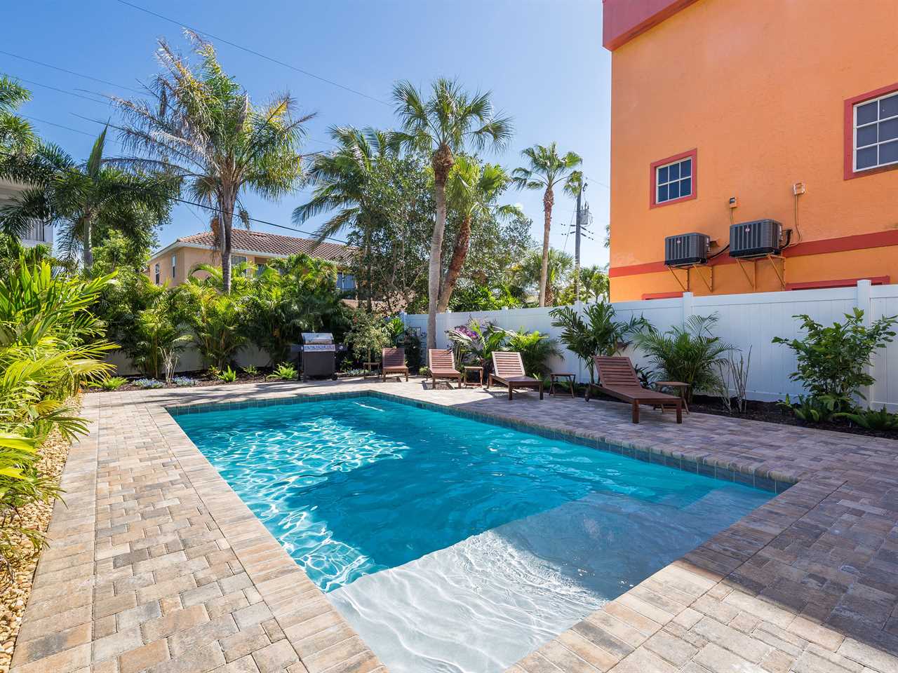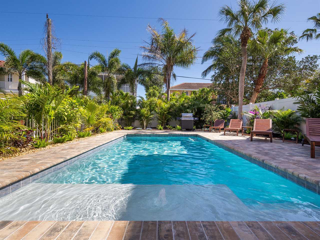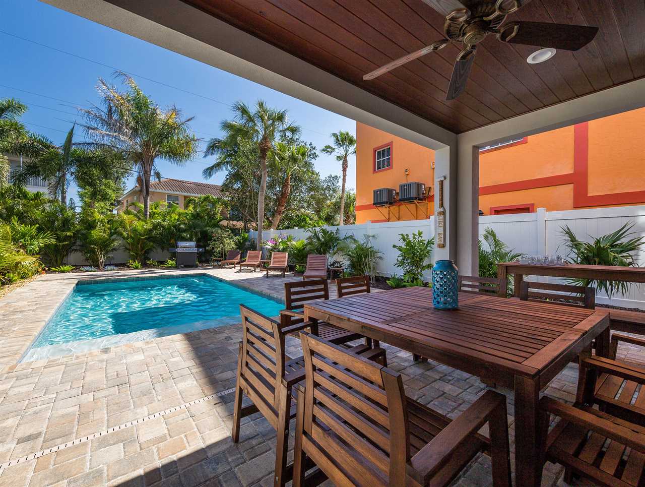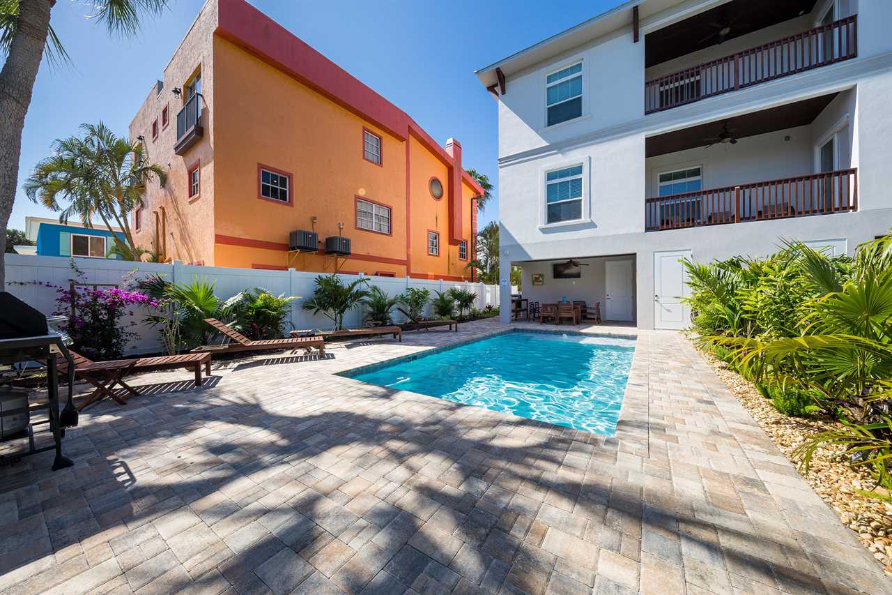 Start your morning with fresh coffee on the covered patio while palm trees sway overhead. Pack the beach cart with chairs and towels for a quick flip-flop walk to the sugar-white sands of Siesta Key Beach. After a sun-soaked afternoon, return to your private heated pool for a refreshing dip while the kids play. As evening sets in, fire up the grill, share stories in the cabana lounge, or unwind in the spacious living area with a movie night. Tomorrow? Breakfast in the full kitchen and another perfect beach day just steps away.