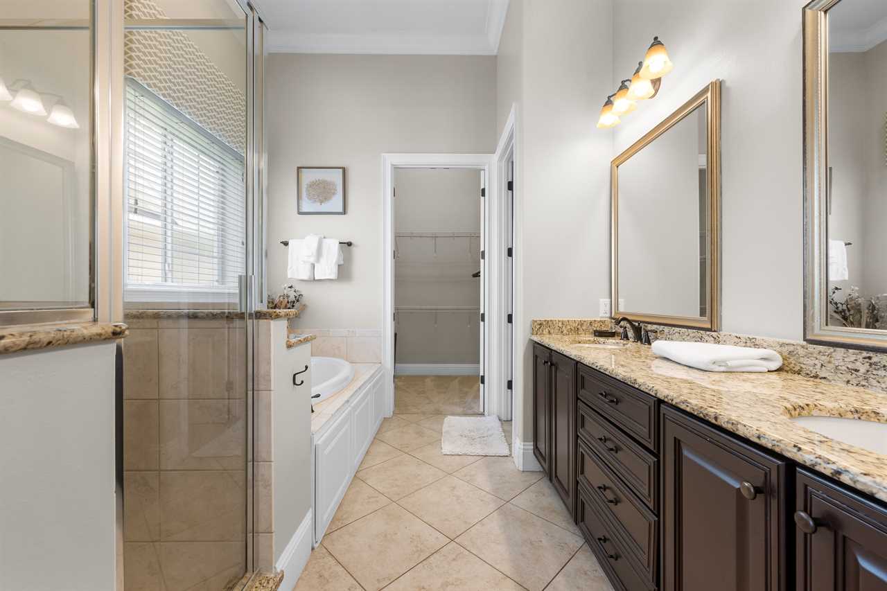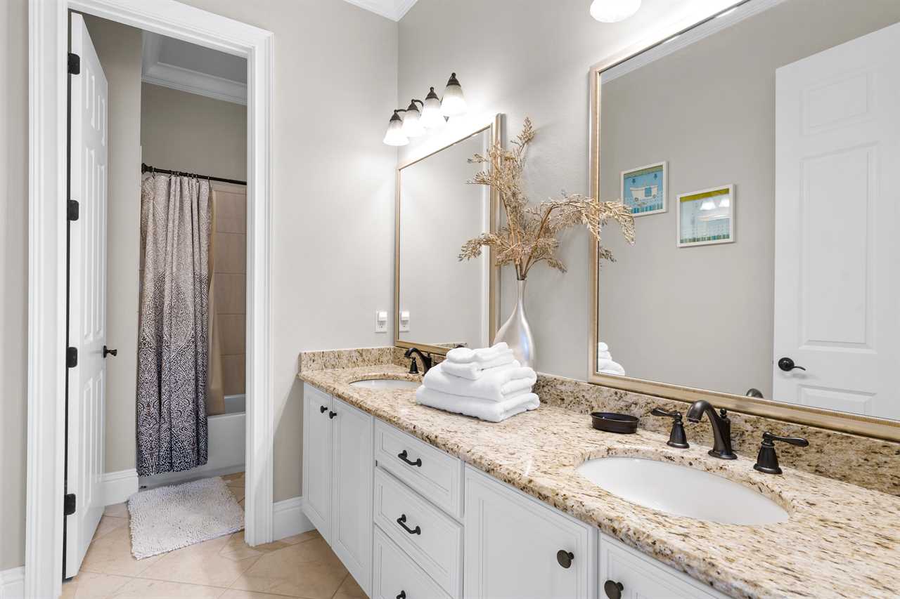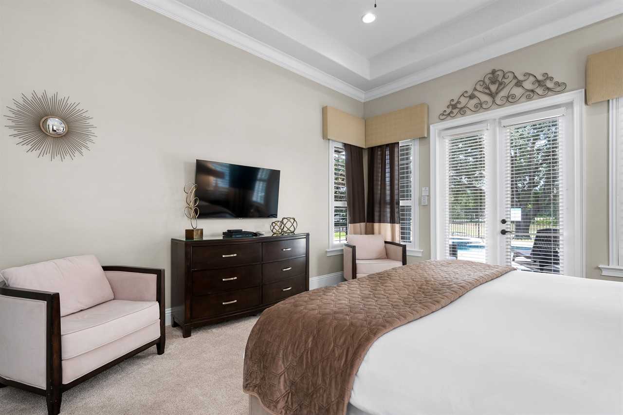 Step through the front door and you are greeted by a grand staircase that leads you up to the second floor. An elegant chandelier illuminates the grand foyer leading you back to an open floor plan allowing for easy entertainment. The living area is furnished with a large 70" Smart TV with Netflix (Guest must use own account), surround sound system, and sectional sofa. Adjoining is the exquisite kitchen equipped with granite countertops and state-of-the-art stainless steel appliances making this a chef's dream. The island is equipped with a bonus wine cooler! Off the kitchen is the dining area which also has a breakfast bar making ample seating for large family dinners. Completing the first floor is two King bedrooms. On the second floor, you will find two rooms with two Twin size beds (both with PlayStation 3 games consoles for the kids) and two more King master suites. Both have large wall-mounted TVs with Blu-Ray players. One of which has its own private balcony with outdoor seating.