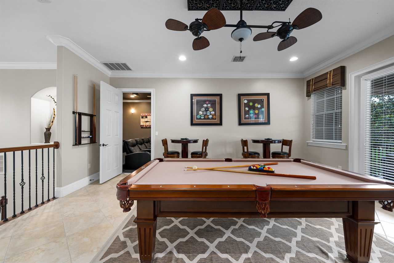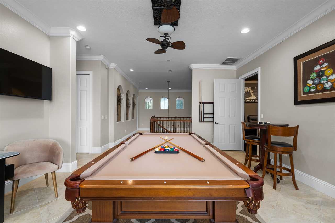 Looking to entertain? Look no further the Cinema Room with seating for eleven, set over two levels allowing for the ultimate viewing experience. Once you dim the lights it will truly make you feel like you're at the movies or gamers can enjoy the PlayStation 4 on the huge screen. A billiards table, high top tables, and THREE wall-mounted TVs are located in the upstairs "Pub Den" making it ideal for sports fans following their favorite teams.