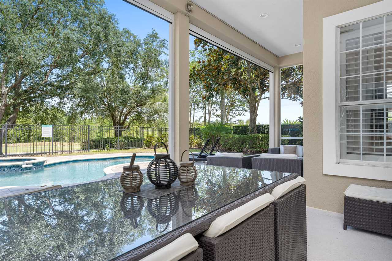 Enjoy the warm days whilst lounging around your lushly landscaped pool area. The re-surfaced pool boasts a color-changing LED night for the extra wow factor in the evenings. The shaded patio area is furnished to the highest degree with a large table with 6 chairs and two bench seats. Around the pool, you will find six large loungers perfect for soaking up the Florida sun.