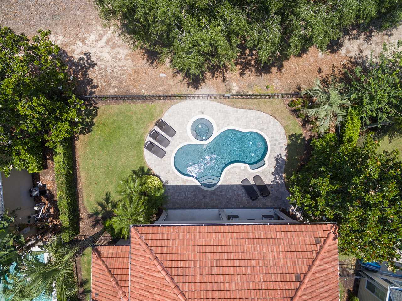 This home has an outdoor pool without a screen enclosure that is cleaned and serviced once a week. Please be aware that in between the weekly clean all outdoor pools are susceptible to some minor debris such as mulch or leaves being blown into the pool. Especially during periods of heavy rain. A skimmer net is provided to remove any debris in between the weekly cleans.