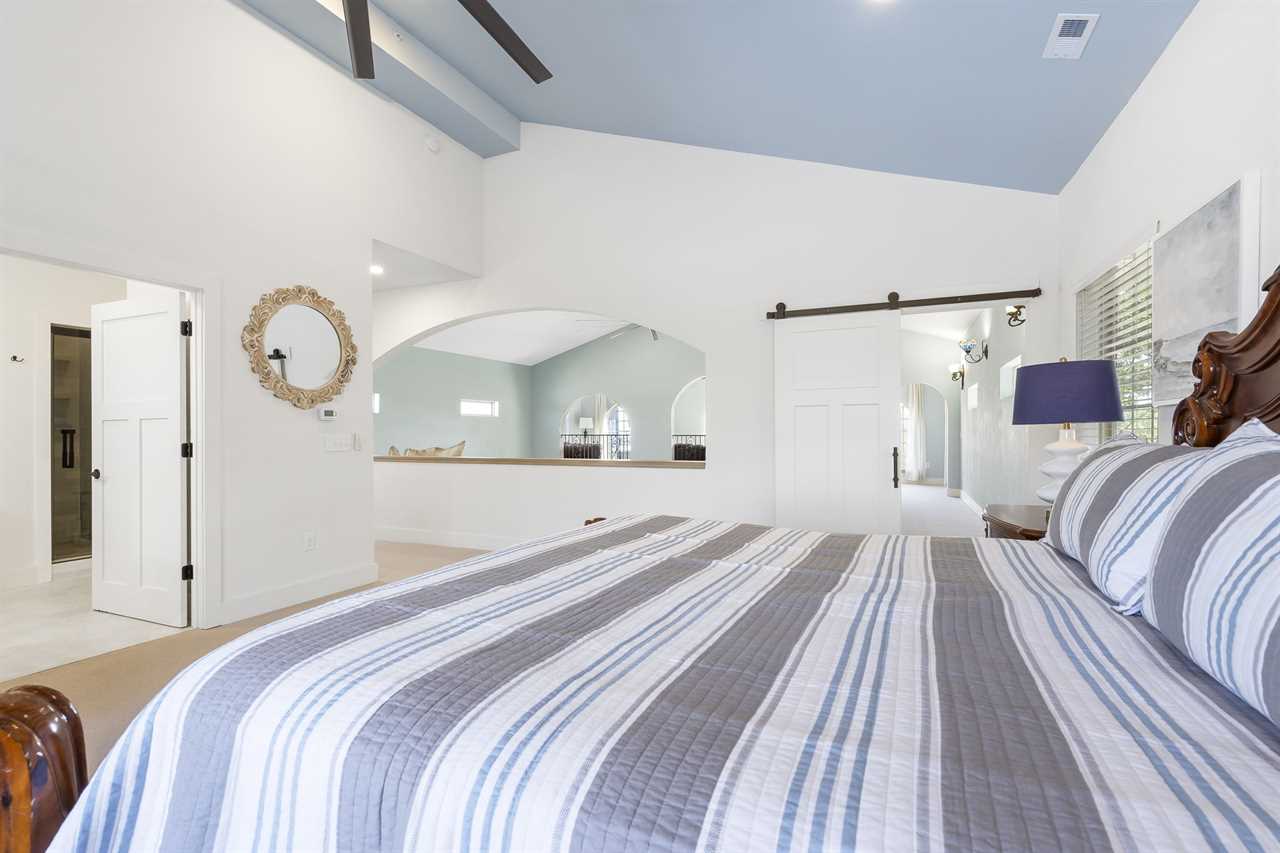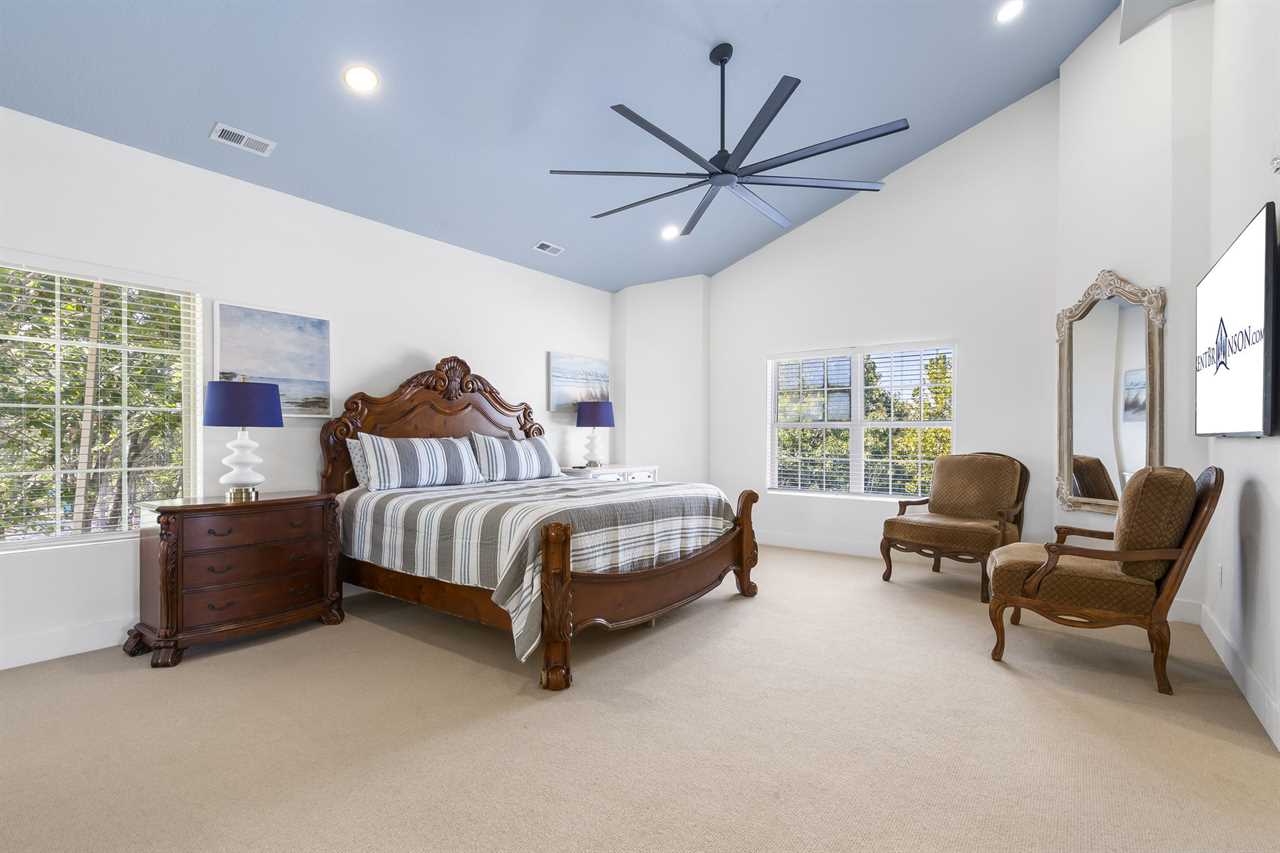 Head up another flight of stairs where you will find yourself in the expansive master suite. You will find a king-sized bed and an ensuite bathroom with a jetted tub and beautiful walk-in shower with a rain shower head. Head into the sitting area off the bedroom for some quiet time with a view or get some work done at the desk area.