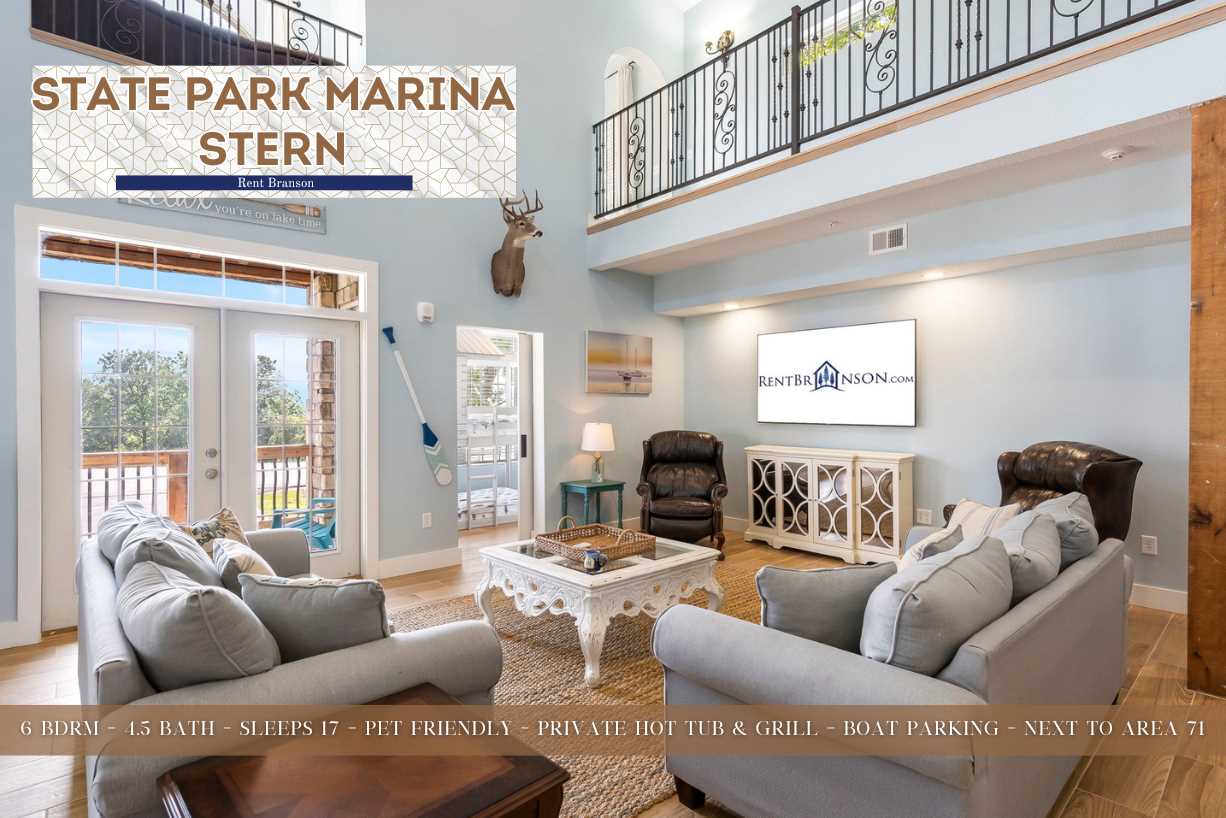 State Park Marina Stern is located just a mile from State Park Marina and a short drive to all the entertainment, shopping, and food Branson has to offer!