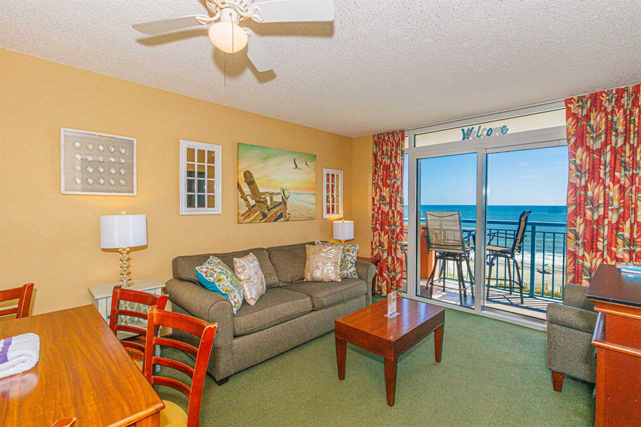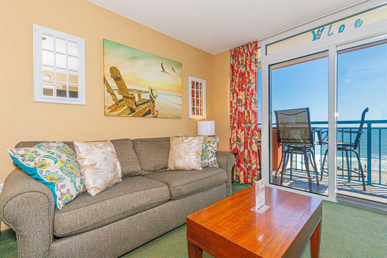 The search for your next vacation stops here! Check out this 4th floor, direct ocean front condo at the Roxanne Towers Resort in Myrtle Beach. This 2-bedroom suite is fully furnished with 1 king bed, 2 full size beds, a full size sleeper sofa, and will comfortably accommodate up to 8 guests. This unique layout offers an oversized living space with a couch, TV with cable, a small dining table with chairs, and beautiful direct ocean front views from the private balcony right off the living area. This layout features an open floor plan making the space feel bigger and not cramped!