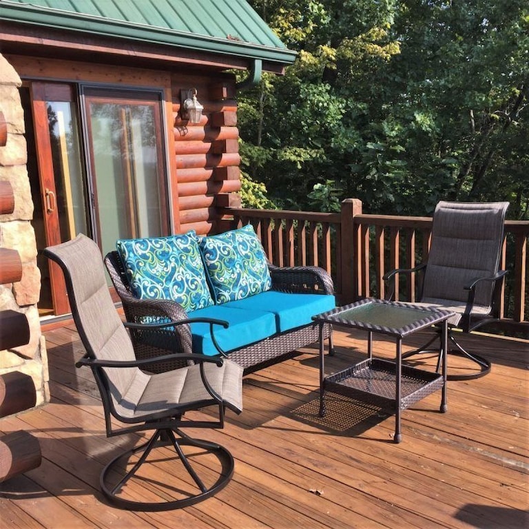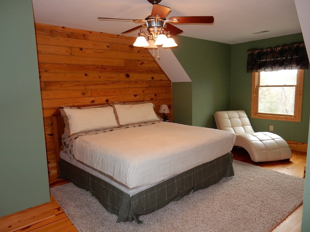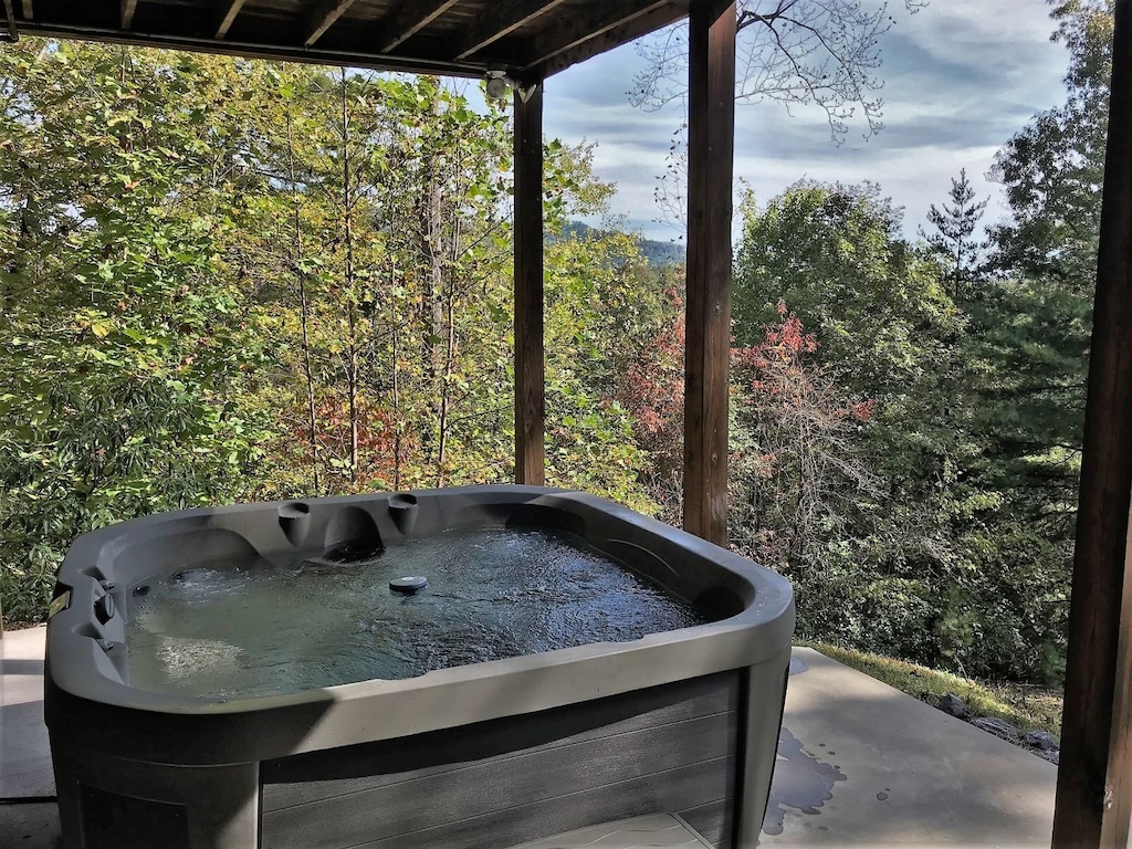 Outside, enjoy the hot tub, gas fire pit, gas grill, rocking chairs, and large deck. Wildlife is abundant, including deer, assorted birds, rabbits, wild turkey, fox, and the occasional black bear. The cabin has a mountain lodge feel. The views are best in the winter, but you will feel right at home at Appalachian Sunrise no matter what time of the year you choose.