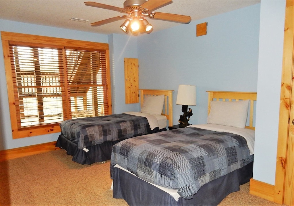 Appalachian Sunrise offers a great room with a cathedral ceiling, a gas log fireplace, Wi-Fi, a DVD/Blu-ray player, a flat-screen TV with surround sound, and a DirecTV basic package. The dining room seats 6, and there is a breakfast island with 2 additional seats. This property offers a well-appointed, stocked kitchen. The main level features a master bedroom with a king bed, flat-screen TV, French doors to the deck, a walk-in shower, and a laundry area. There is a half bath in the hall. Upstairs, you’ll find a loft overlooking the great room; additionally, a guest bedroom with a King bed and a second guest bedroom with a queen bed and 2 twin beds, plus a full shared bathroom. A lower-level family and the game room come with a pool table, 70″ flat-screen TV with DirecTV, beer/wine refrigerator, and patio area. There is a lower-level bedroom with 2 twin beds and a full bath.