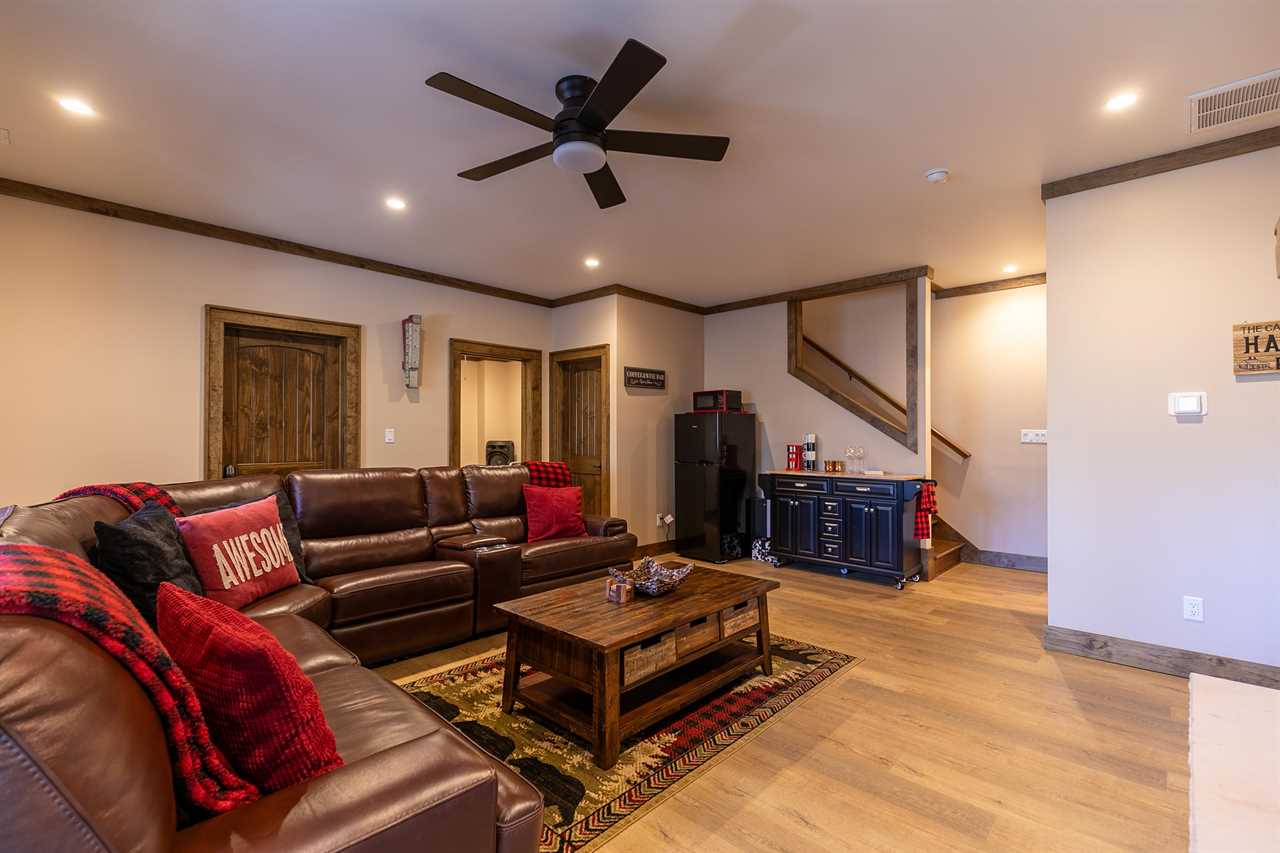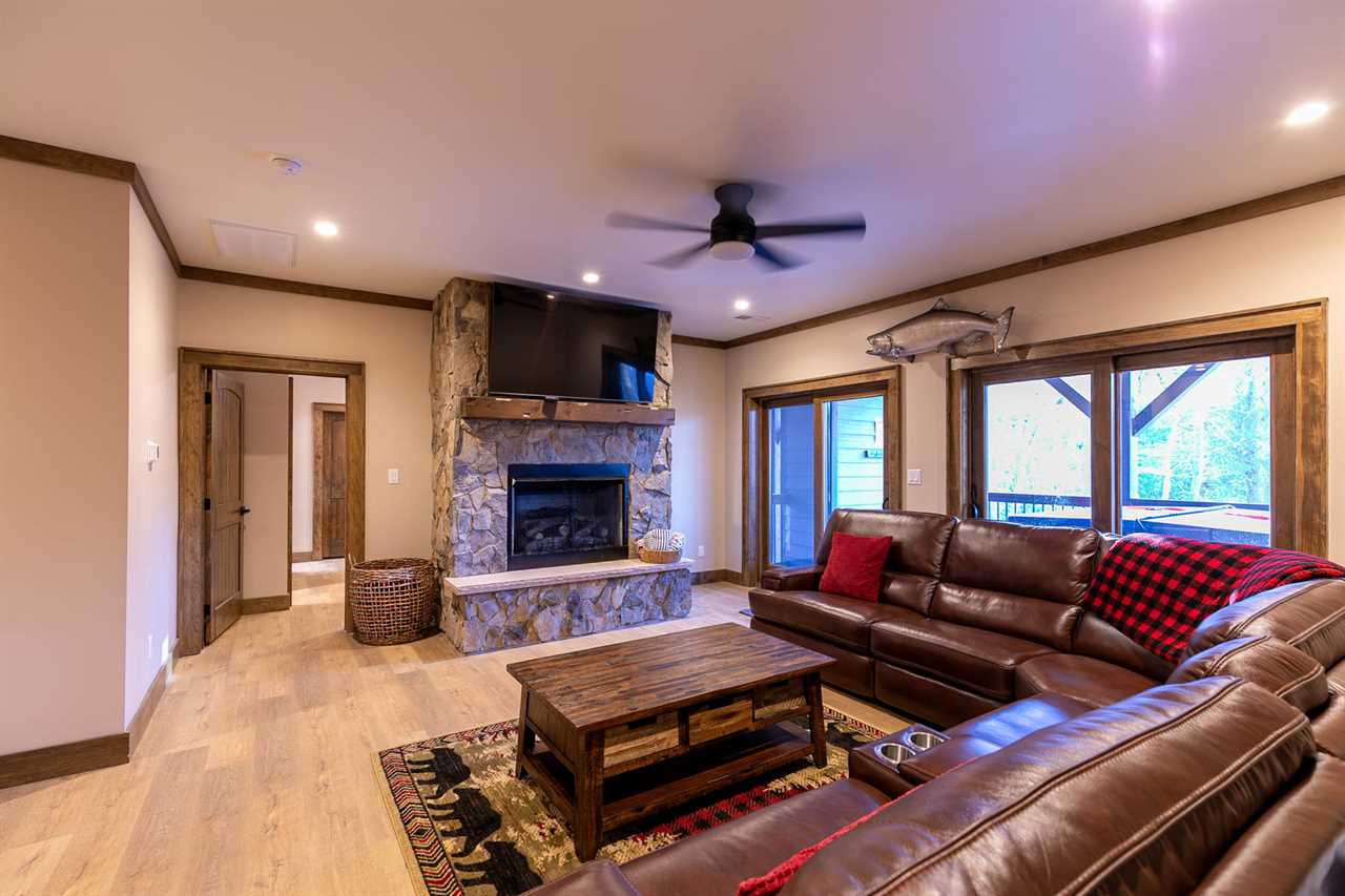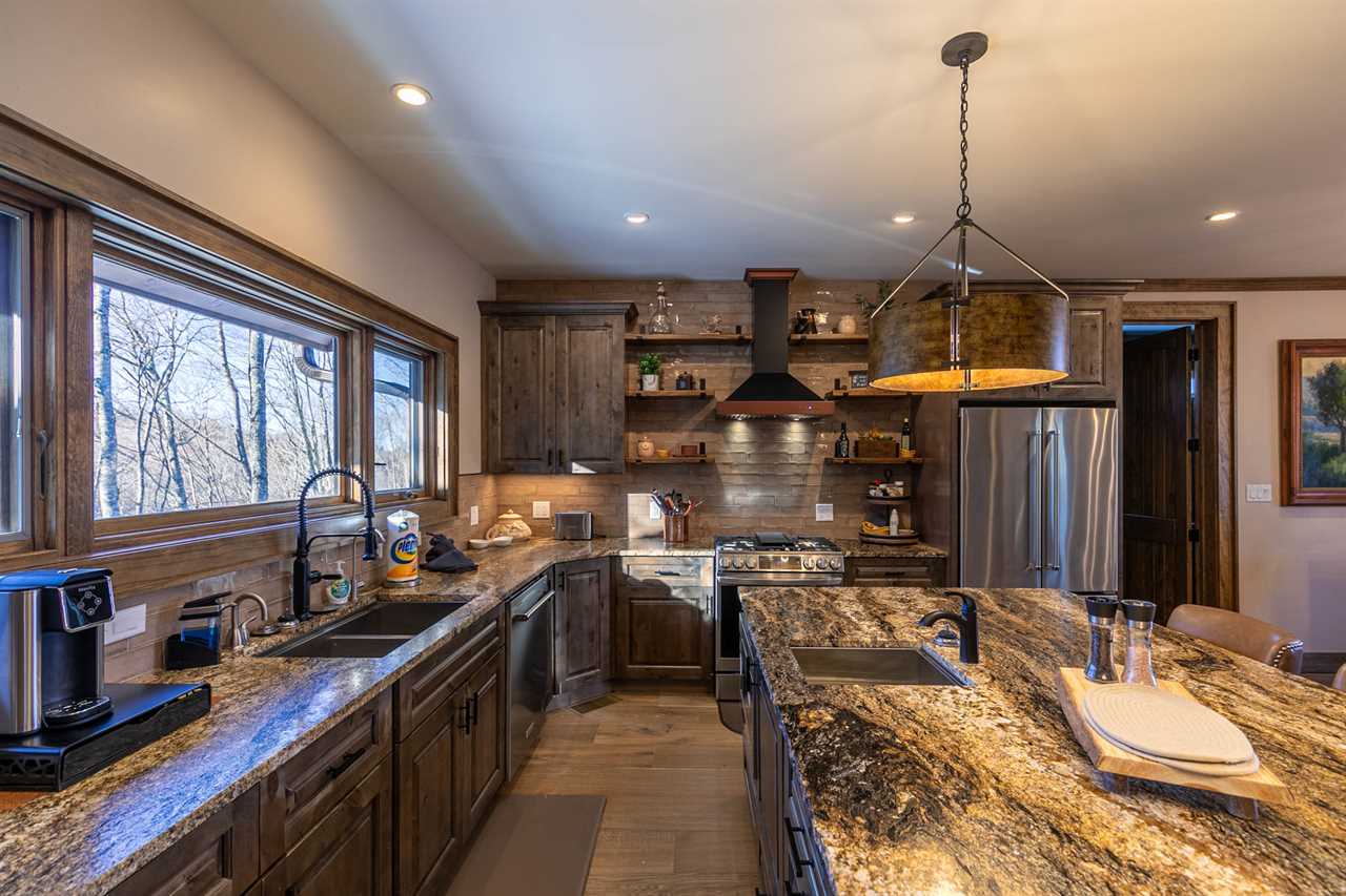 The main level has a spectacular gourmet kitchen completely stocked with everything you'll need including small appliances, plates, silverware, napkins and tablecloths for 12. The rustic dining table can be extended to provide extra seating and the oversized 10-foot granite island will be the center of your family gathering. There is a dramatic floor to ceiling gas fireplace in the living room right off the kitchen to enhance this cozy area. The power recliner sofa is guaranteed to reduce your stress!