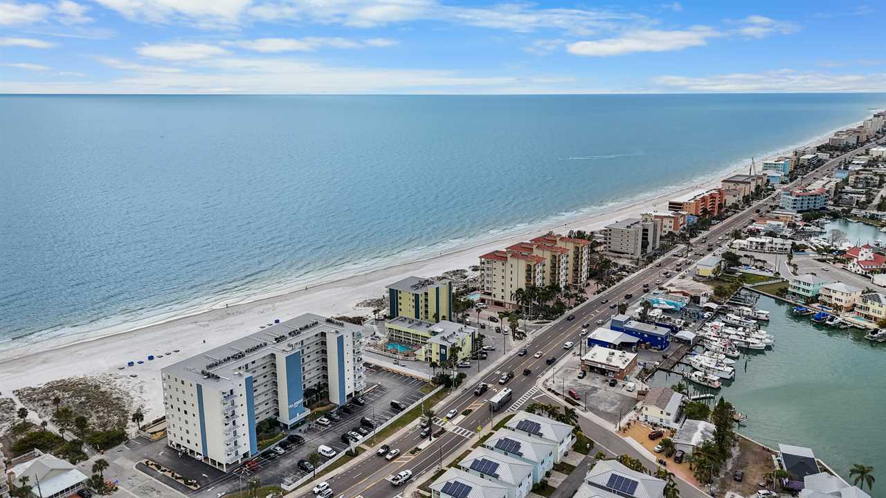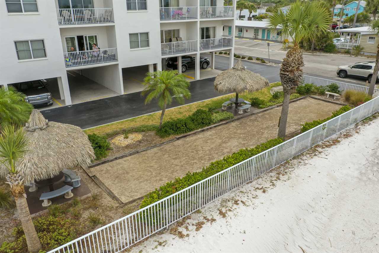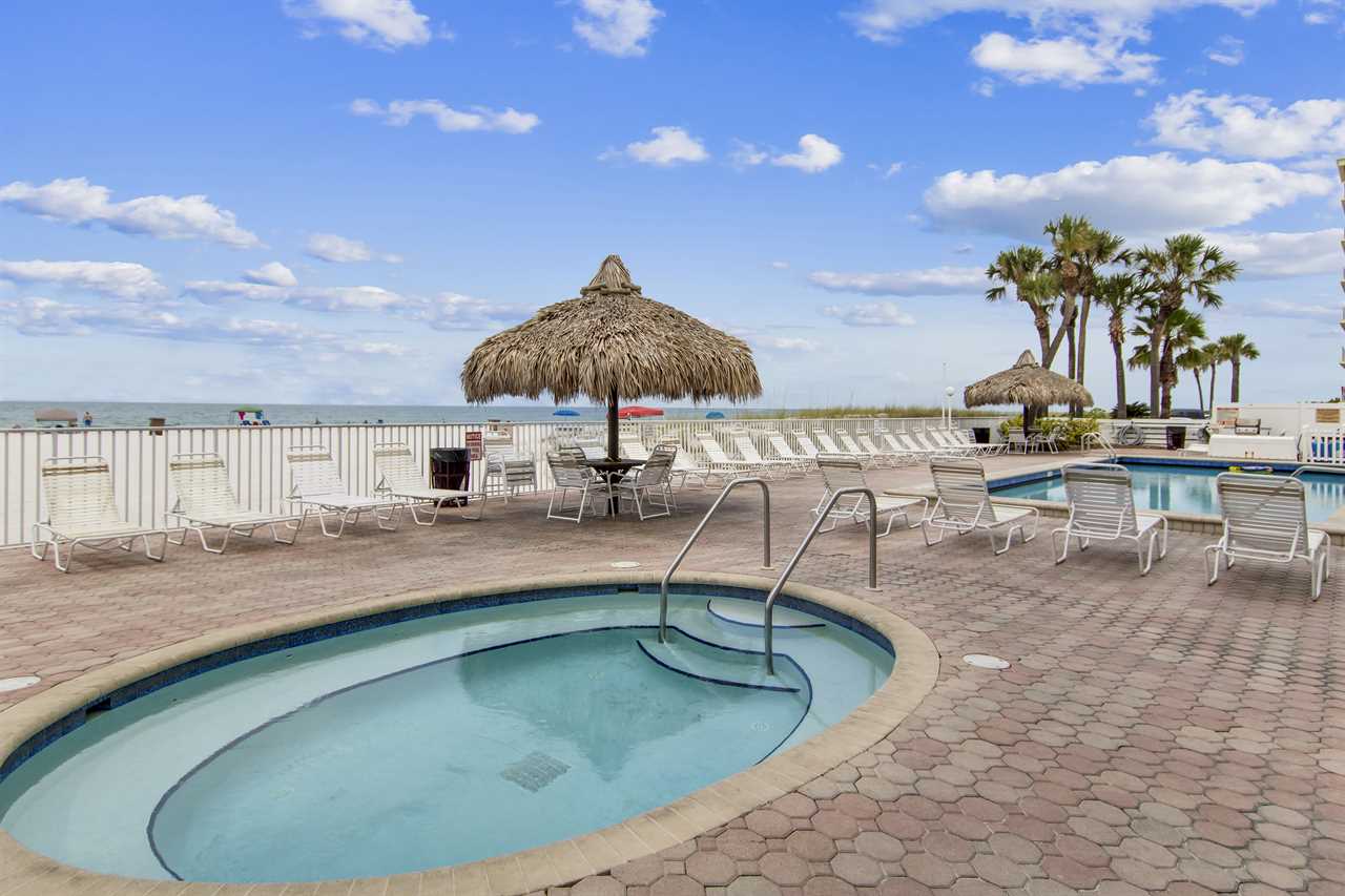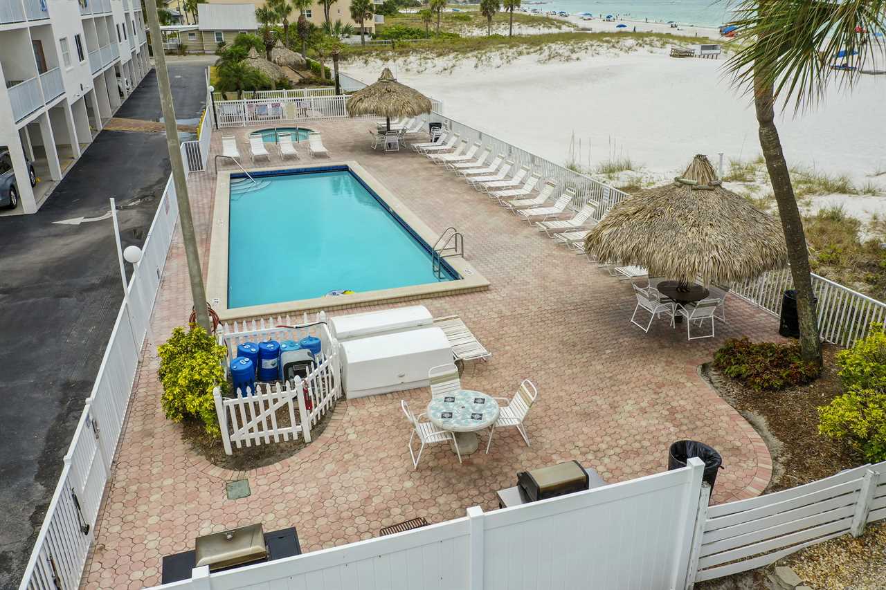 Sea Breeze has all the amenities you need for a fun and relaxing stay, including a beachfront heated pool and hot tub, shaded tiki huts, BBQ grills, a bocce ball court, and direct access to the soft white sand. When you're ready to explore, you're just a short stroll from John's Pass Village & Boardwalk, a local favorite with restaurants, shops, dolphin cruises, fishing charters, and family-friendly activities.