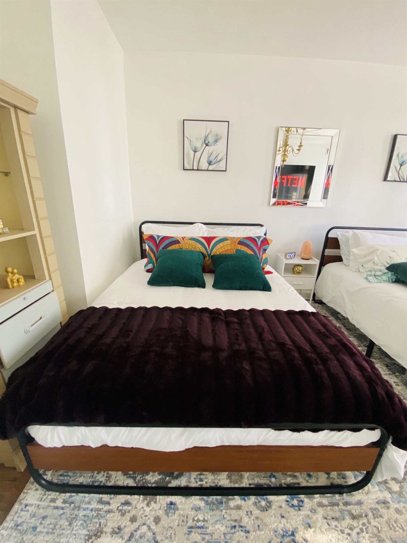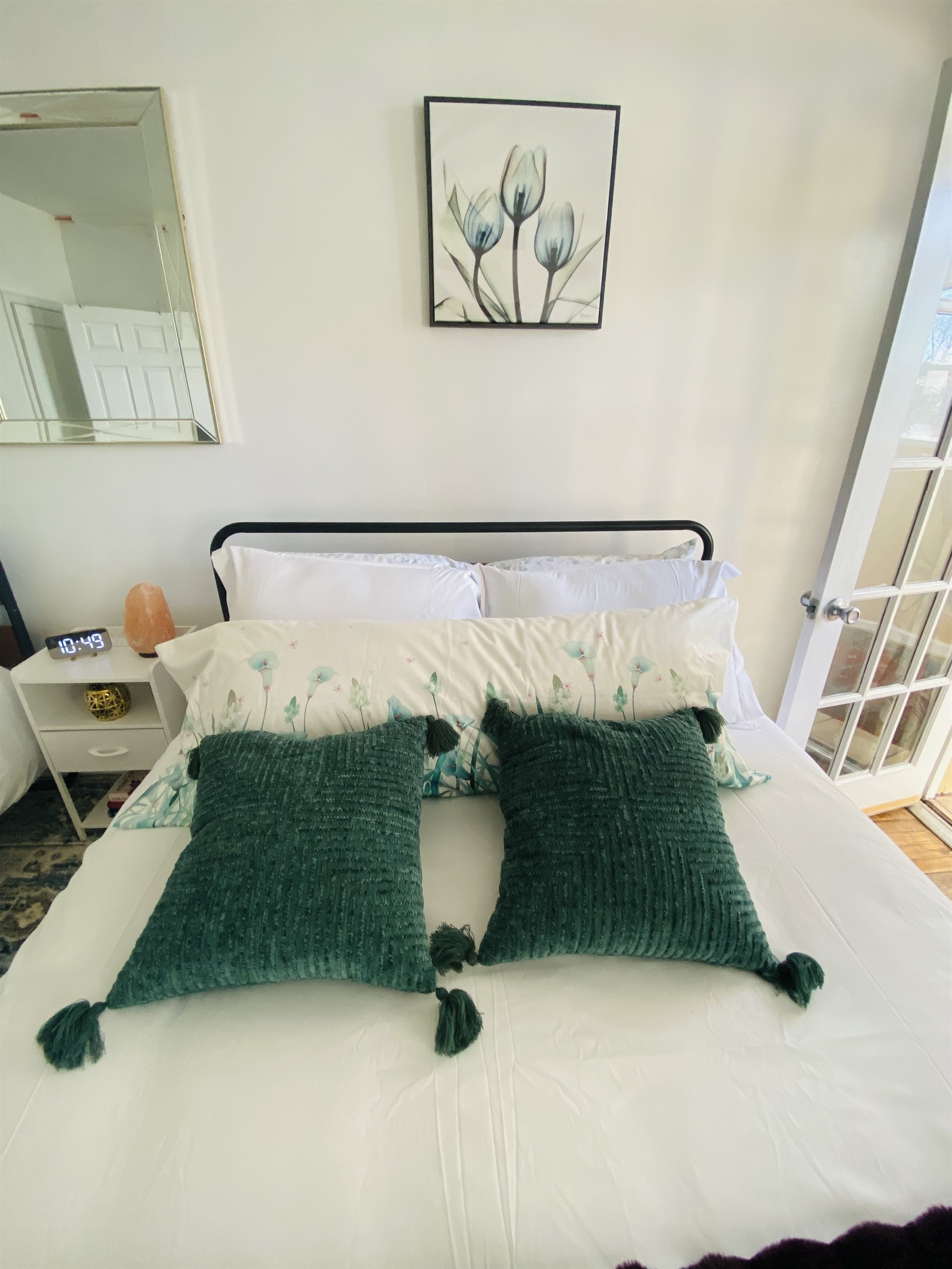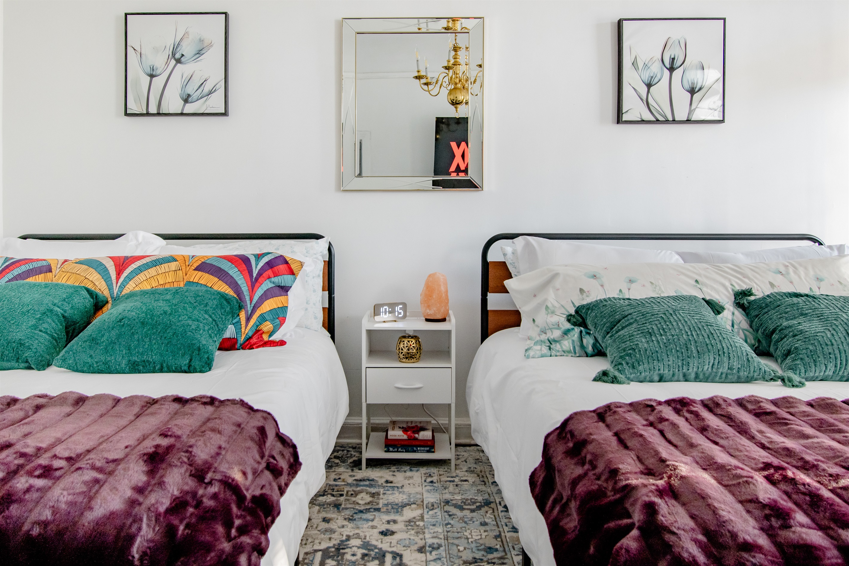 Spoil yourself with the large king bed in the first bedroom or the queen bed in the second bedroom for a comfortable nights rest after exploring all this amazing city has to offer! There is also a luxurious full bathroom with a rain shower head and a top of the line washer and dryer unit for guest use.