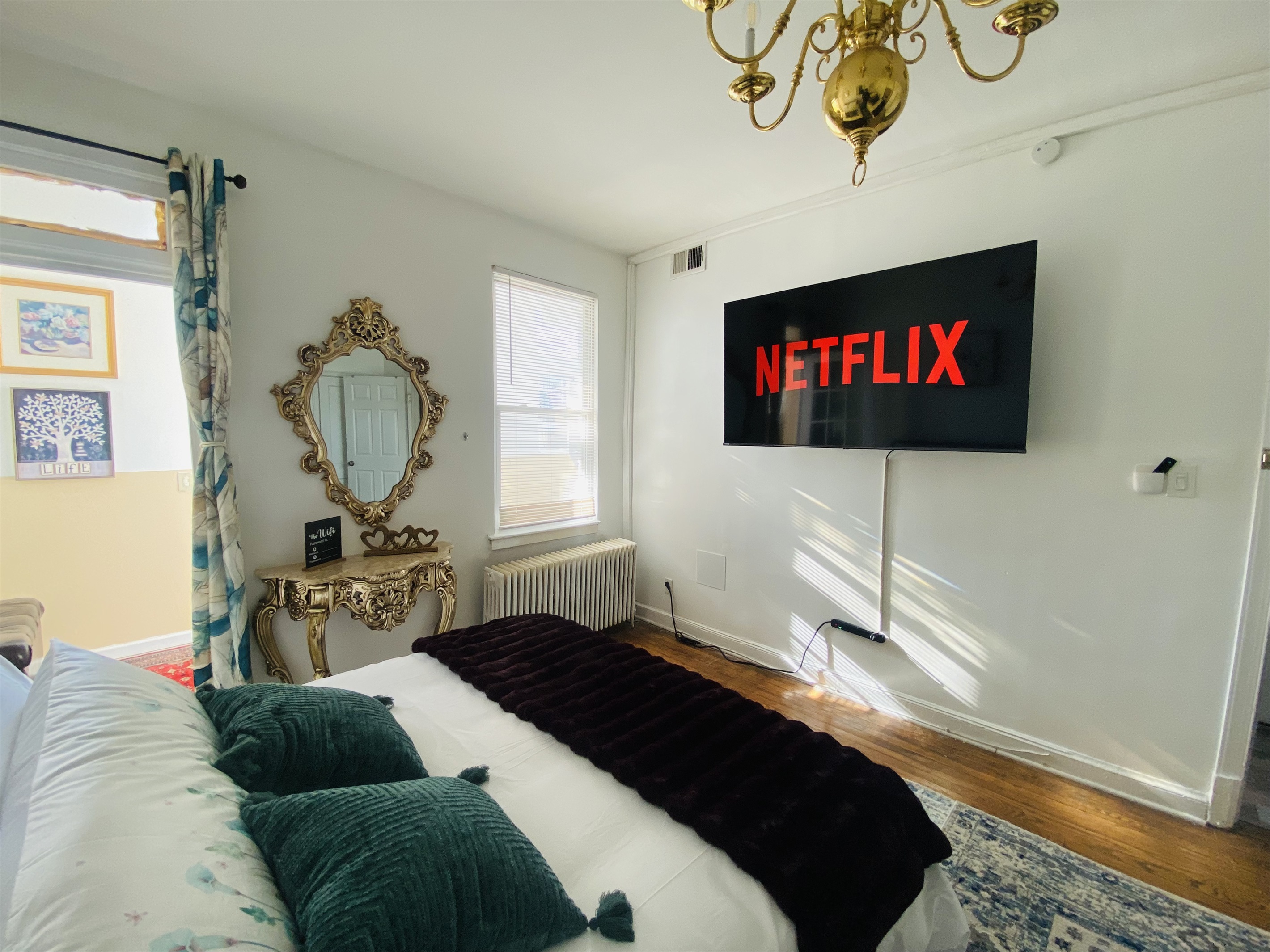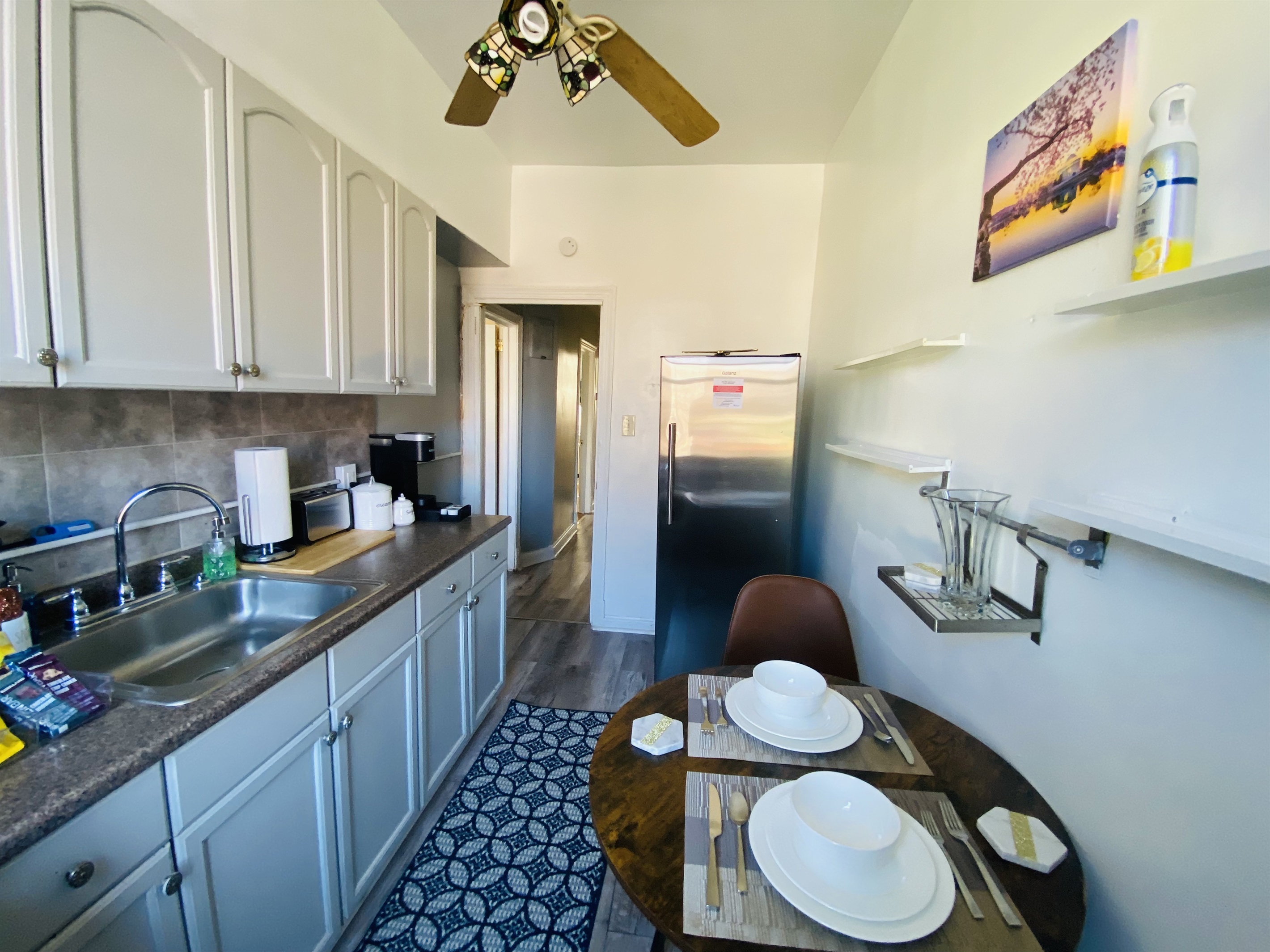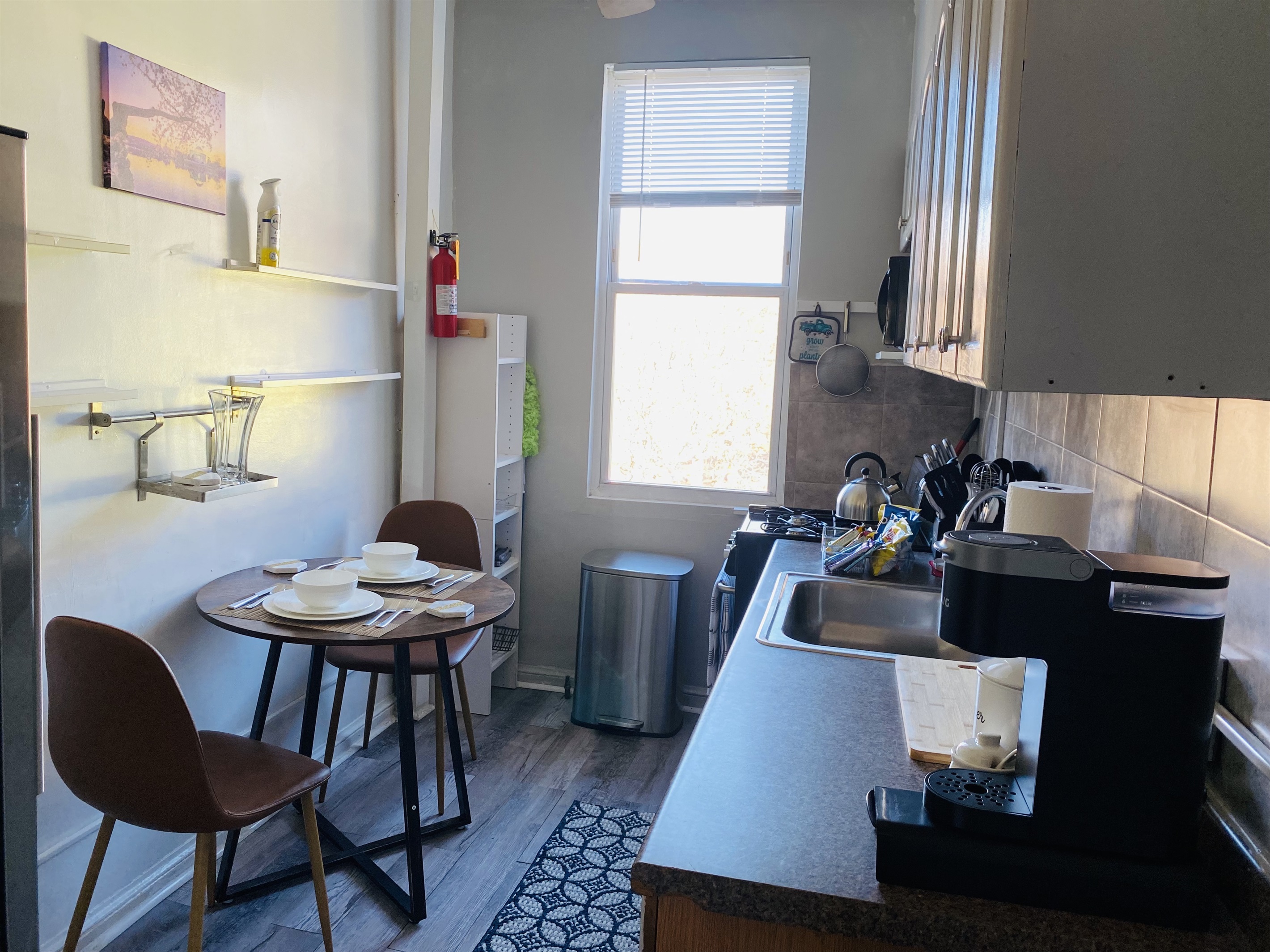 This charming apartment boasts nicely decorated rooms for to ensure your comfort and full kitchen, making you feel right at home. There is a cozy sun filled breakfast nook to plan the day or catch up on work. And there is excellent wifi signal throughout the space.