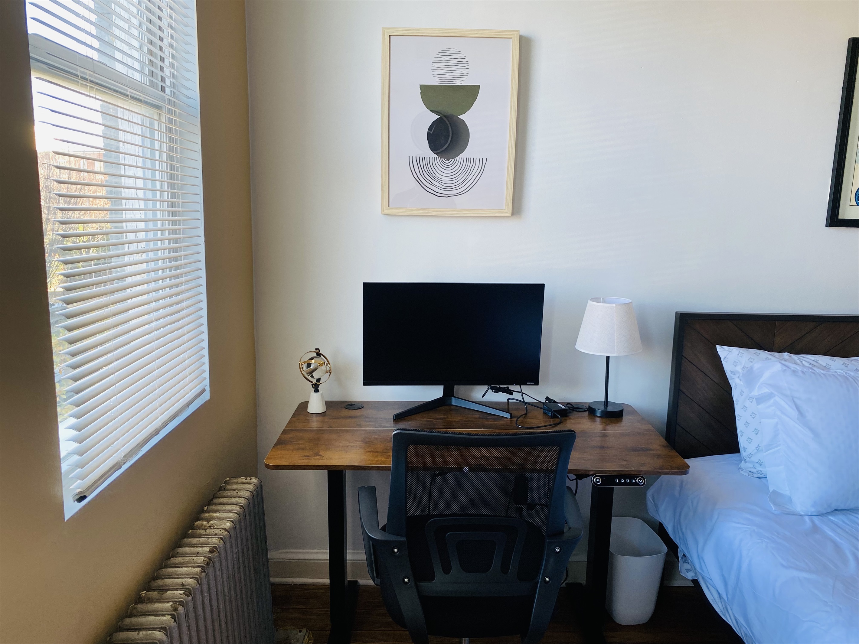 -Home Office with Adjustable Height Standing Desk & Monitor