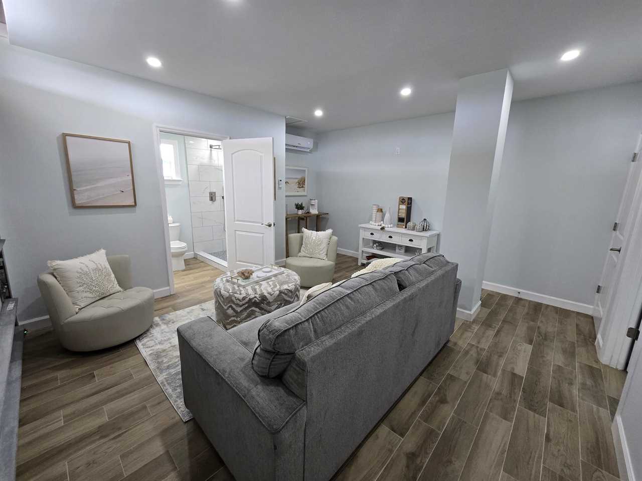 Newly Renovated bonus room with a Queen bed and shower in the bathroom. This room is accessed outside of the property.