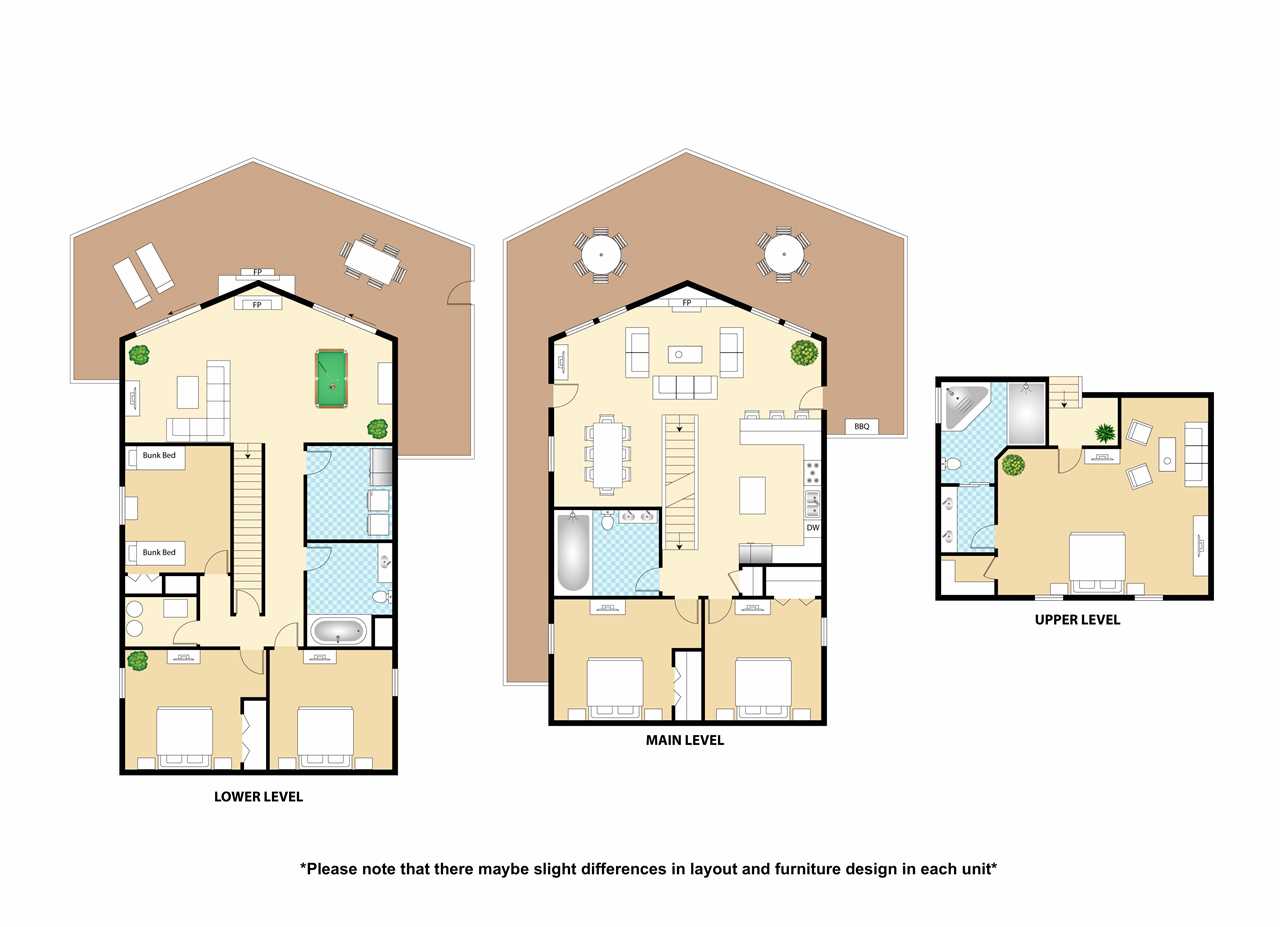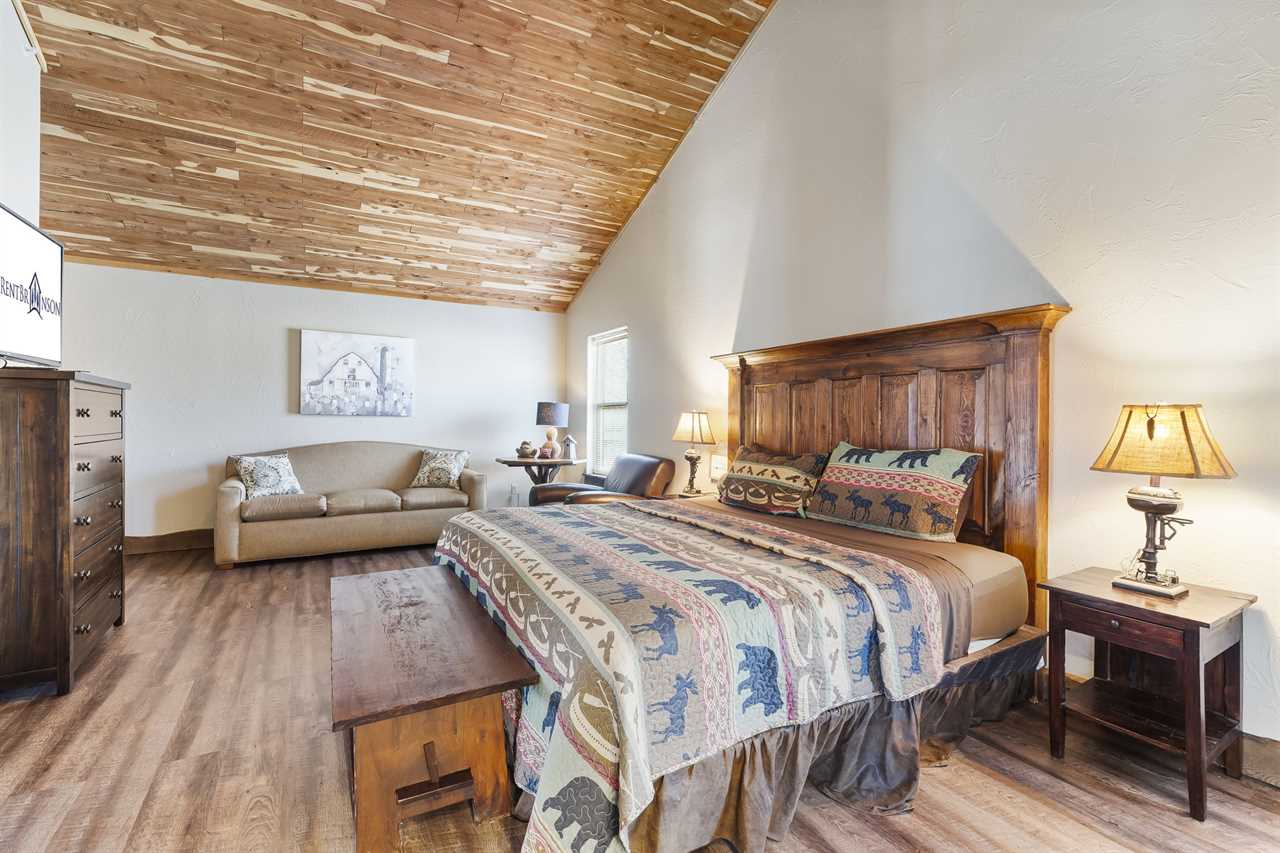 With six bedrooms and three bathrooms, Inn Over My Head accommodates a variety of guests. On the main level, two bedrooms boast king beds for a luxurious night's sleep. The second level features a master bedroom with a king bed and an ensuite bathroom, providing a private retreat. On the lower level, two additional bedrooms with king beds and a sixth bedroom designed as a bunkbed haven for kids ensure that everyone has their own space.