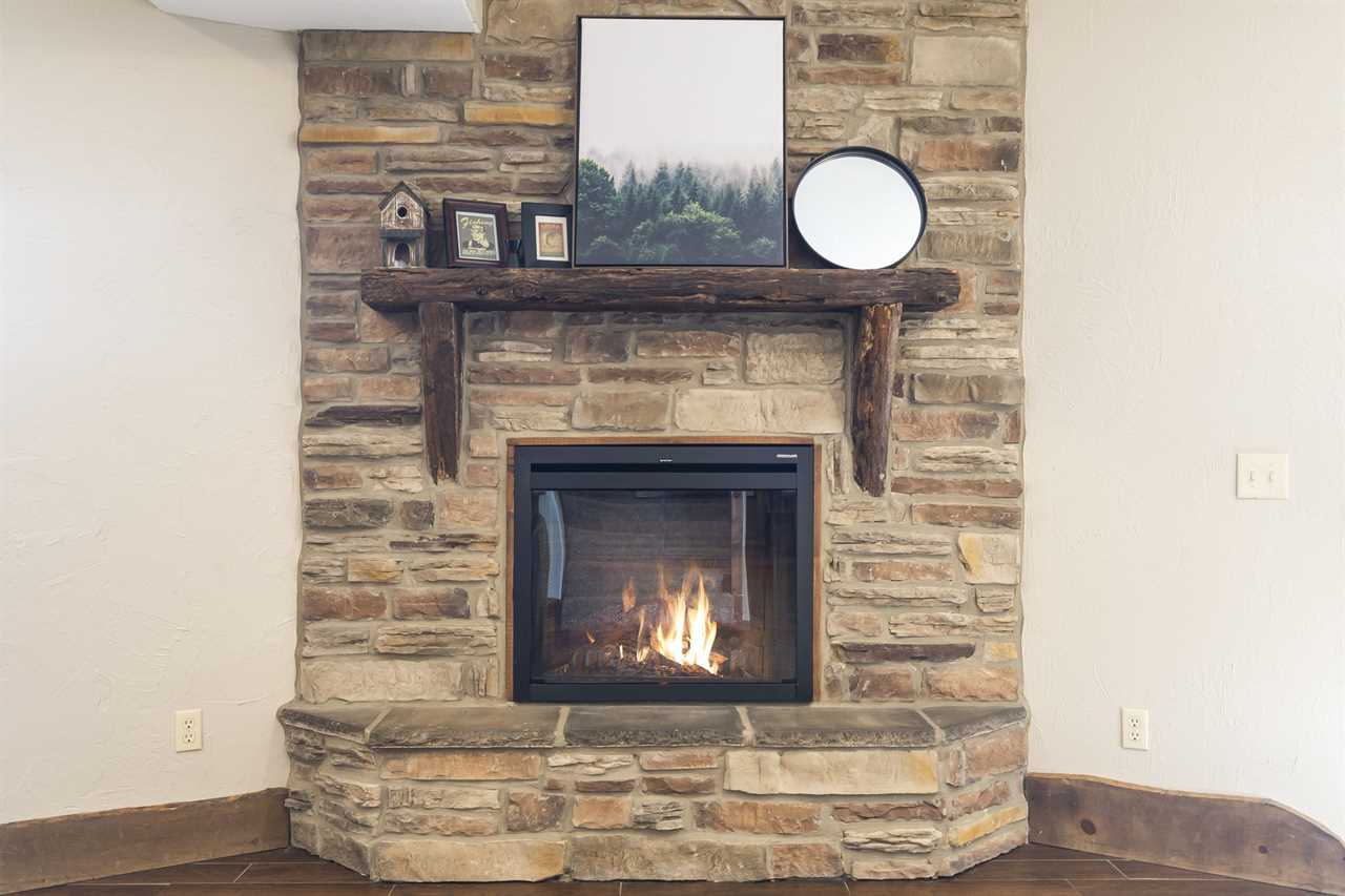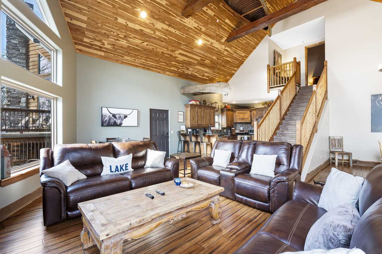 As you step into the living room, you'll be greeted by the warm ambiance of an electric fireplace, creating a cozy atmosphere for those chilly evenings. The tall ceilings add a touch of grandeur, making the space feel open and inviting. Sink into plenty of comfortable seating, perfect for winding down after a day of exploration. The allure of this vacation home extends outdoors, where a patio awaits with a propane grill and outdoor seating. Take in the breathtaking view of the lake, creating a serene backdrop for your stay. Whether you're enjoying a meal al fresco or simply unwinding with a drink, this outdoor space is sure to be a favorite. For the culinary enthusiasts, the fully equipped kitchen provides everything you need to prepare delicious meals. From morning coffee to elaborate dinners, you'll find all the amenities to make your stay convenient and enjoyable.