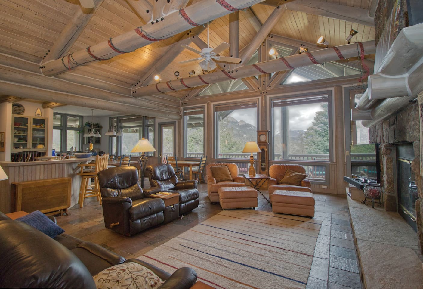 PHENOMENAL LOCATION. Our Rocky Mountain vacation home features a huge comfortable great room with an unparalleled mountain view (STR license 23-ZONE3439).