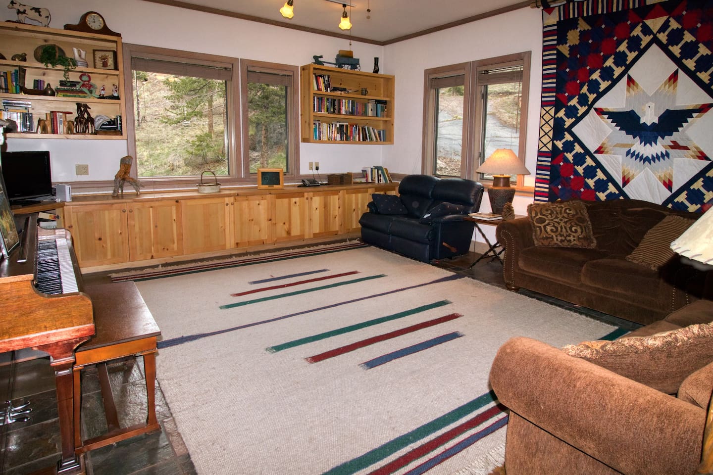 DEN just off the living room has more seating, an antique piano and another TV for games.