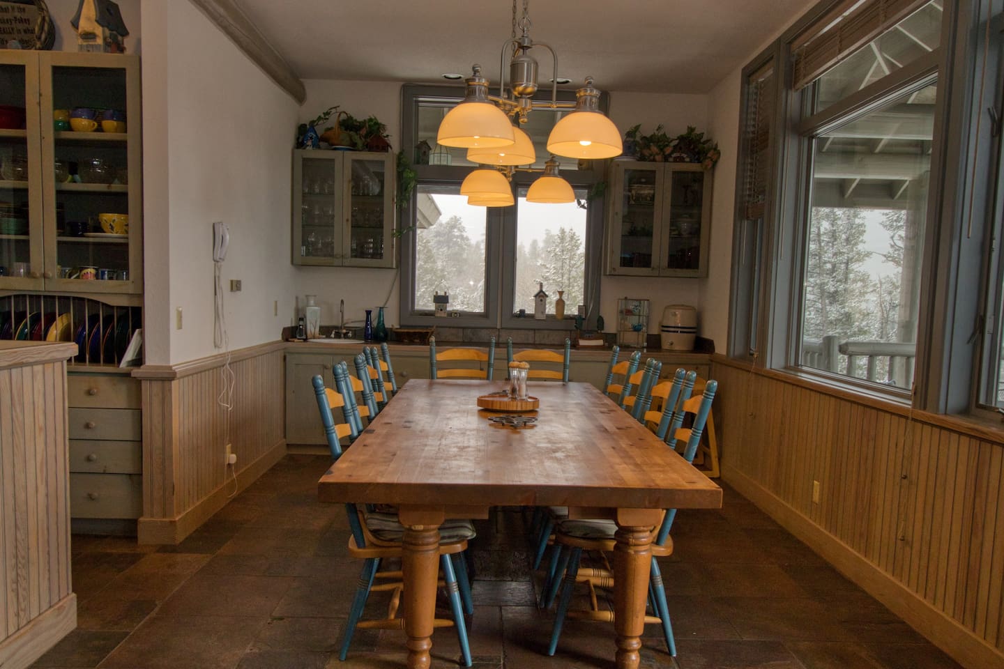 DINING ROOM has a sprawling hand-made table with lots of serving space.