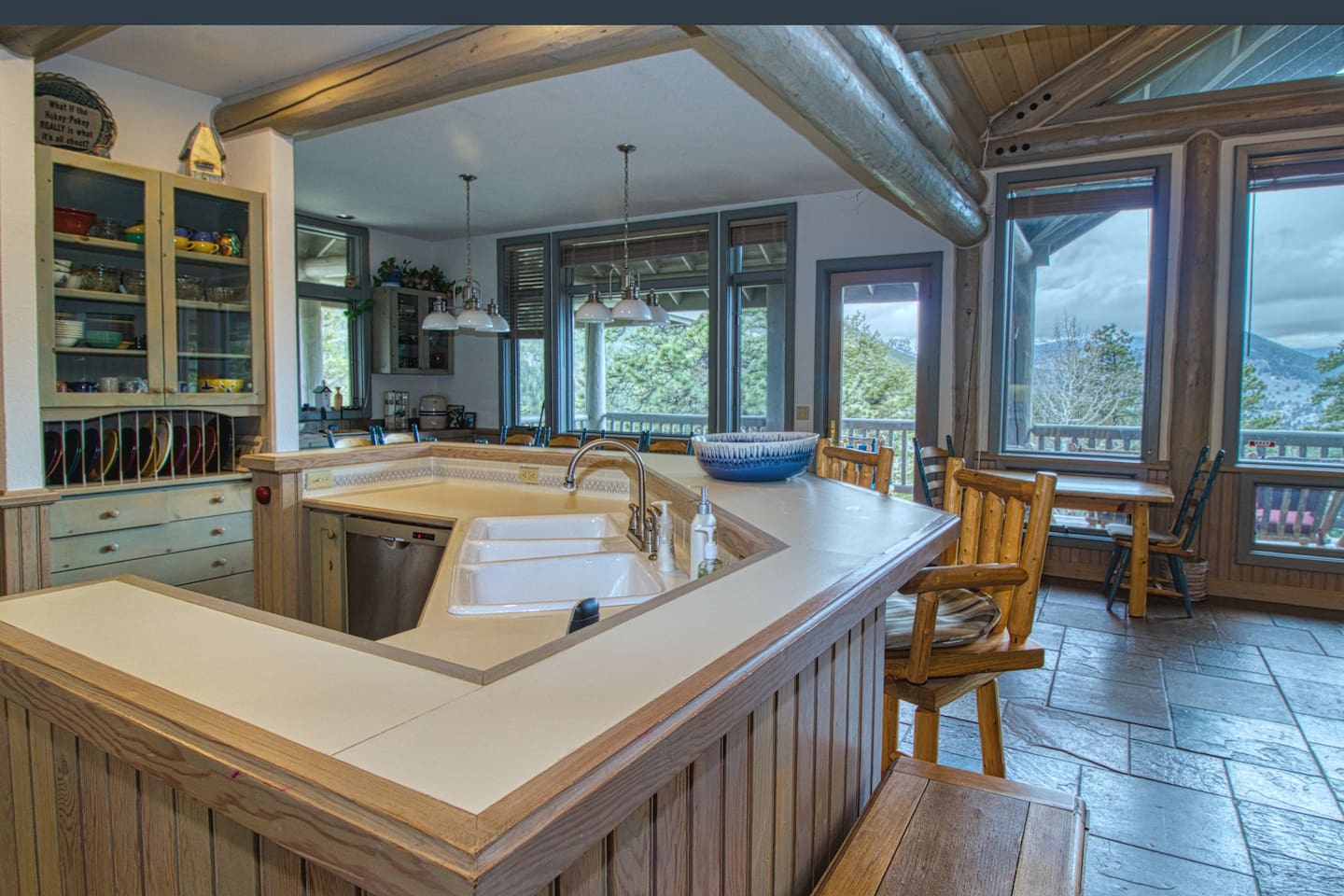 Floor to ceiling windows with expansive view of the continental divide. Arguably the best view in Estes Park!
