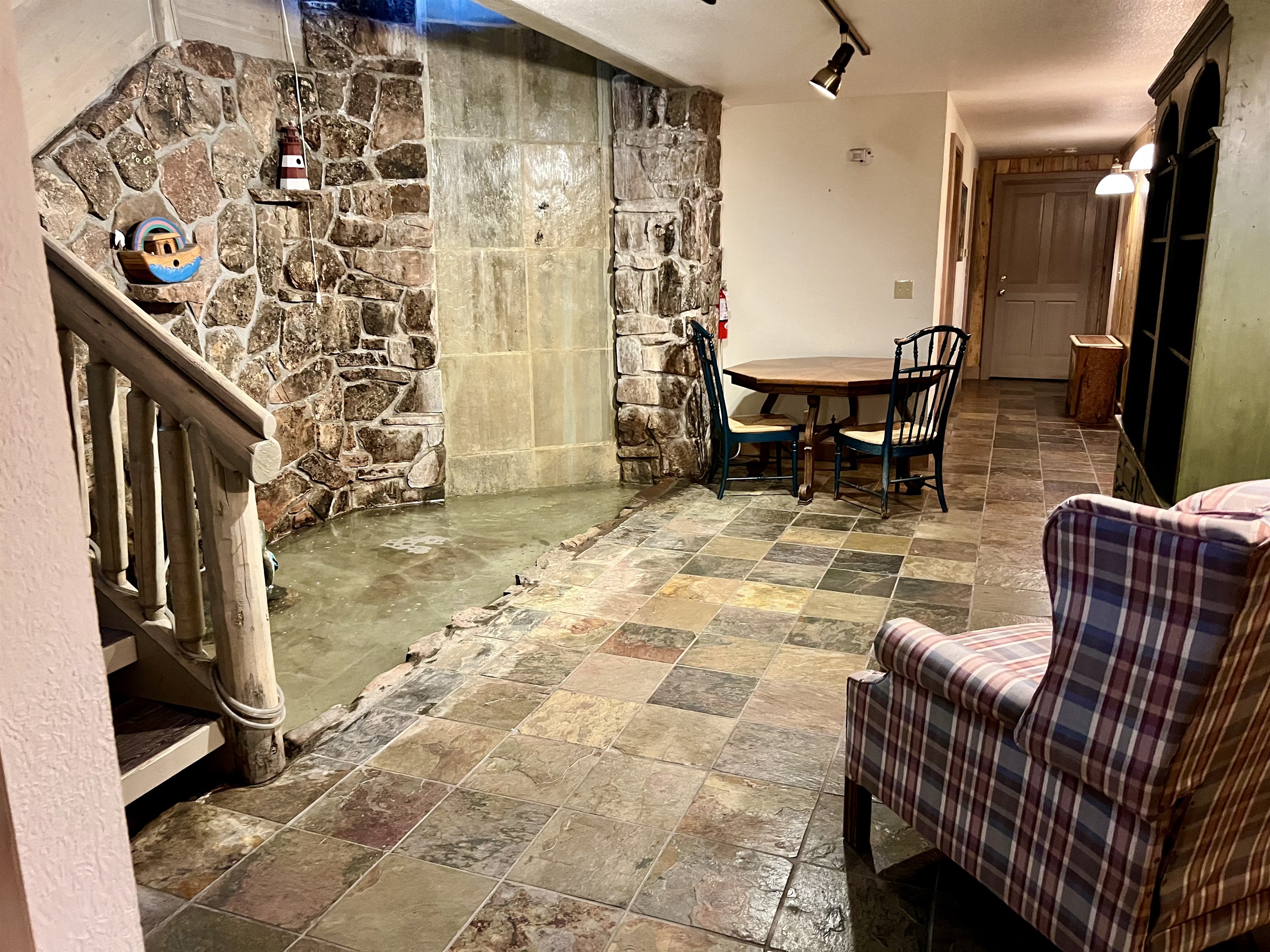 Unique interior waterfall adds ambiance and much needed humidity