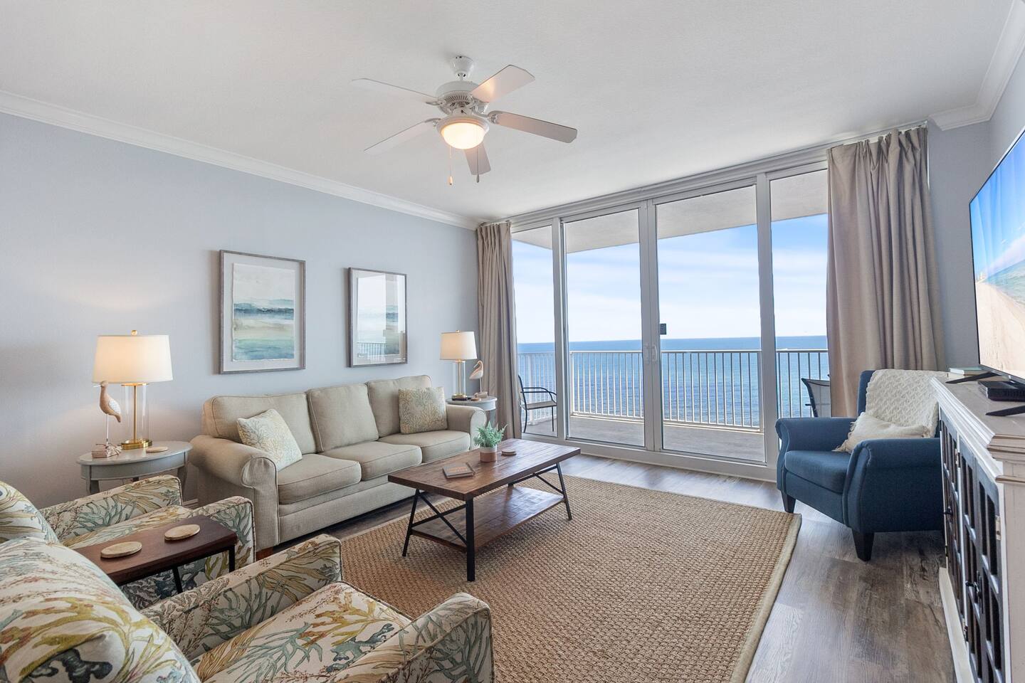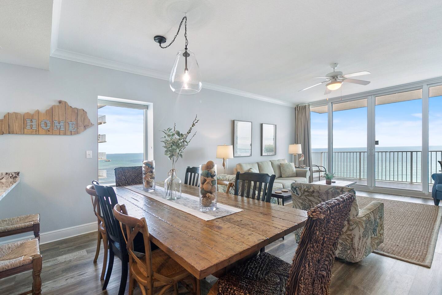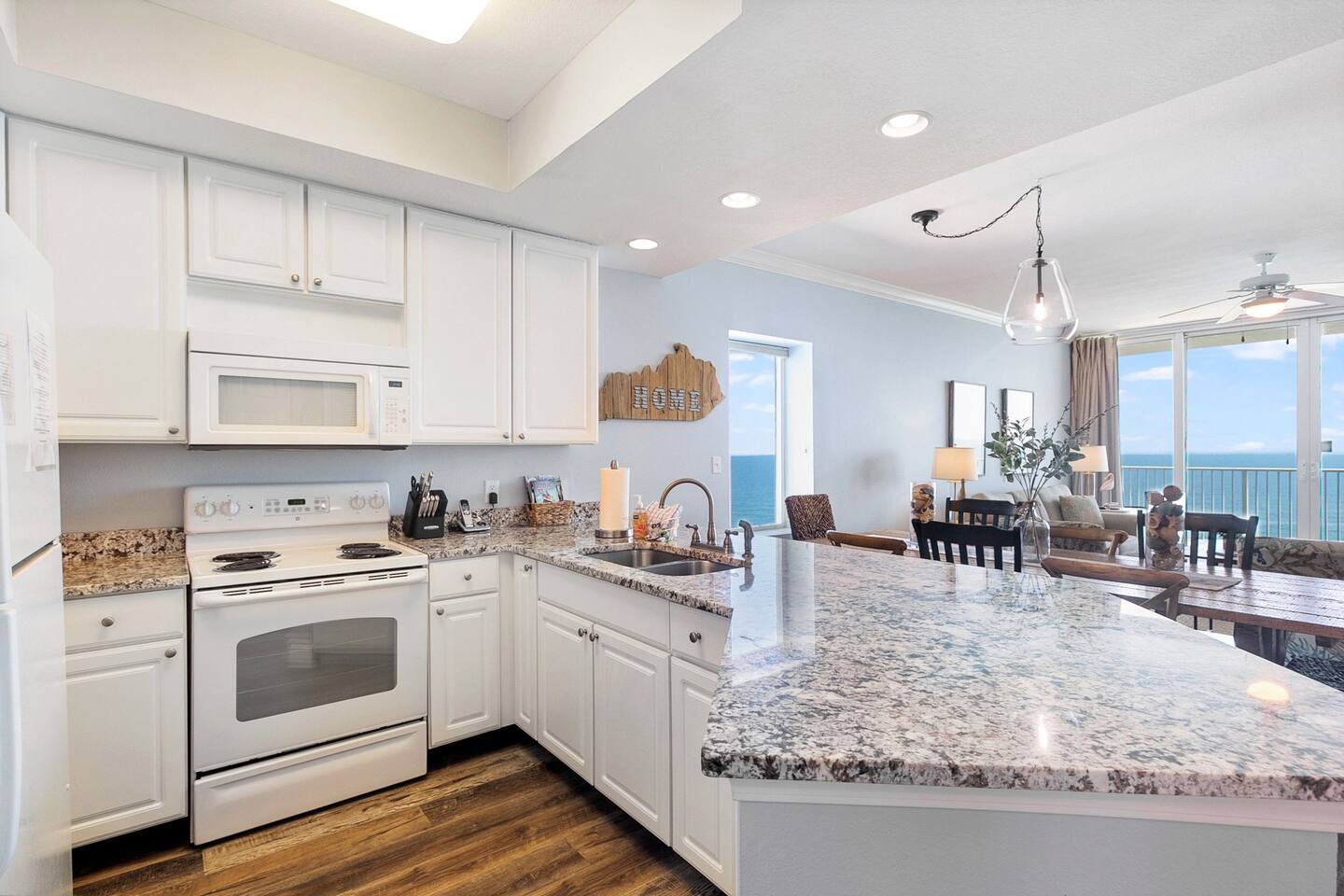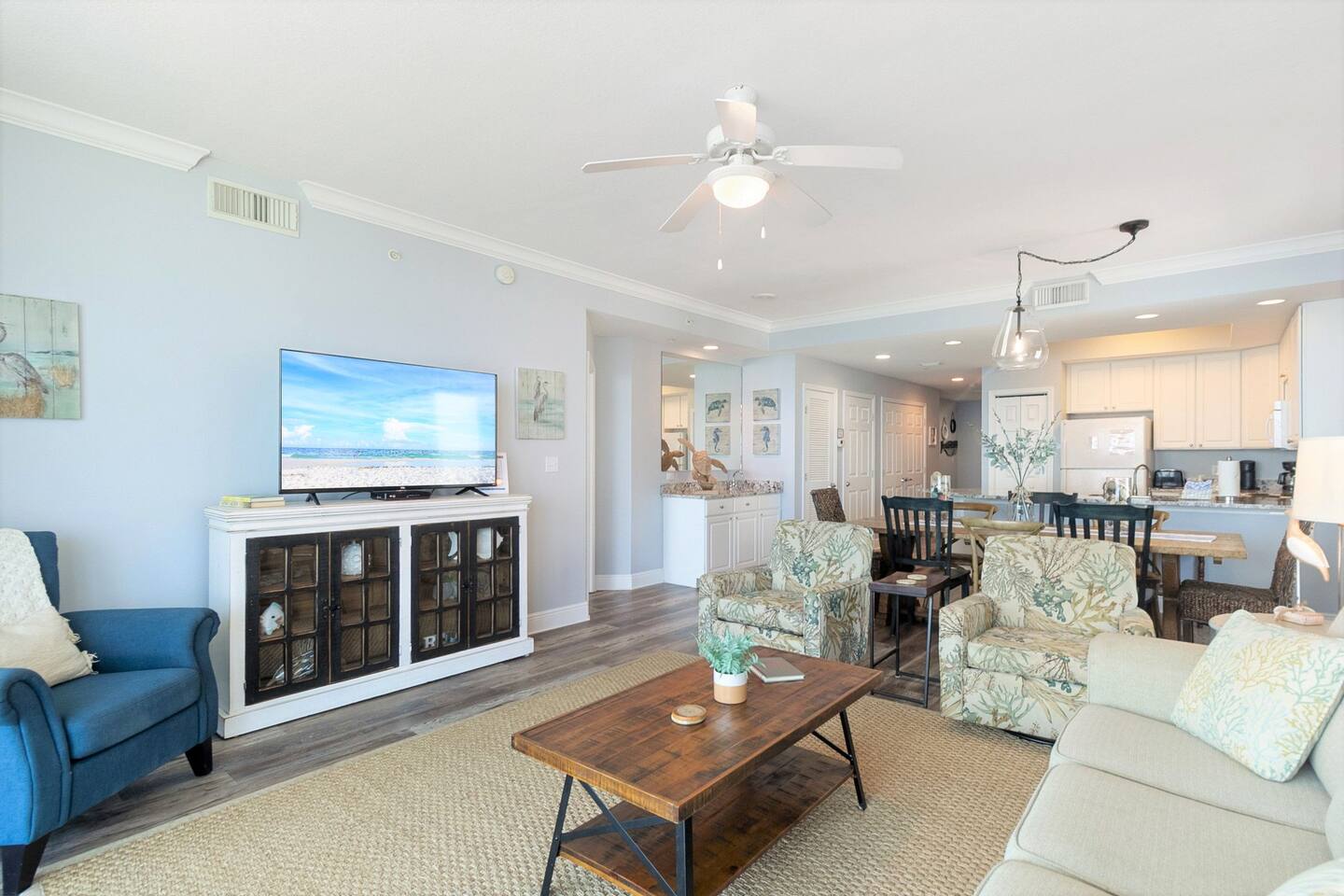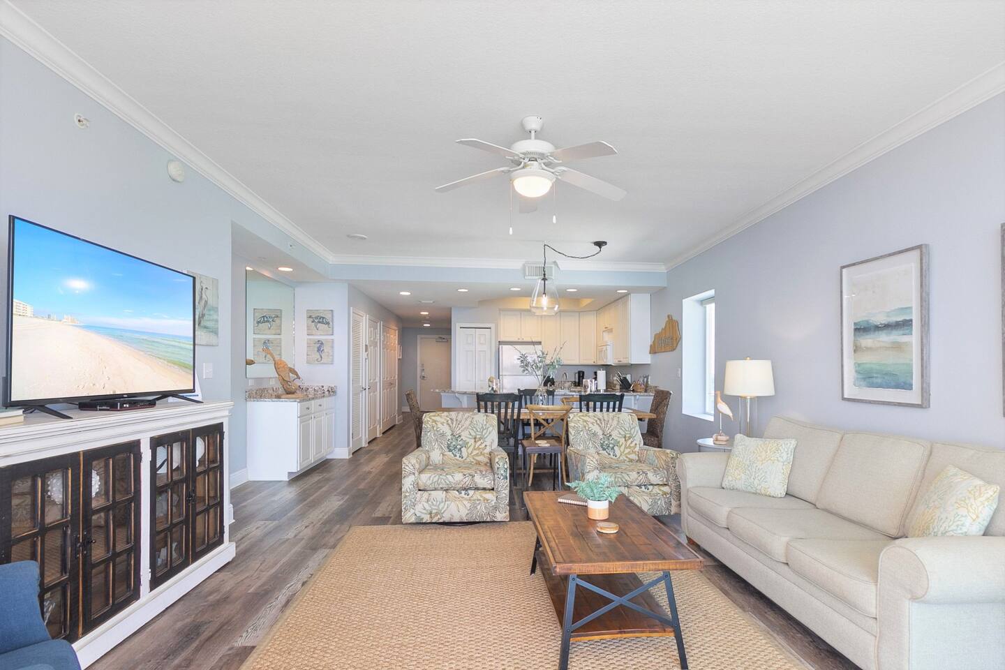 Indulge in the ultimate coastal retreat with "A Wave From It All!" This renovated gem, adorned with penthouse-quality views from the 19th floor corner unit, invites you to experience unparalleled luxury. Revel in the comfort of a 2-bedroom, 2-bathroom haven that graciously accommodates 8 guests. Sleeping arrangements include a king bed, queen bed, twin bunk set, and a sleeper sofa.