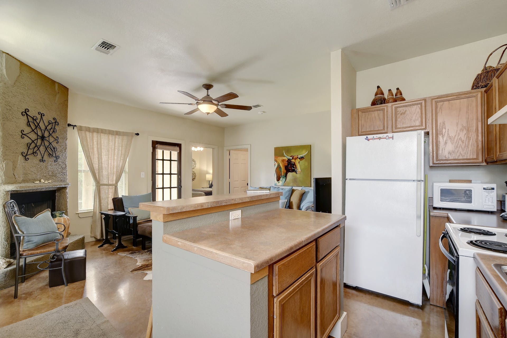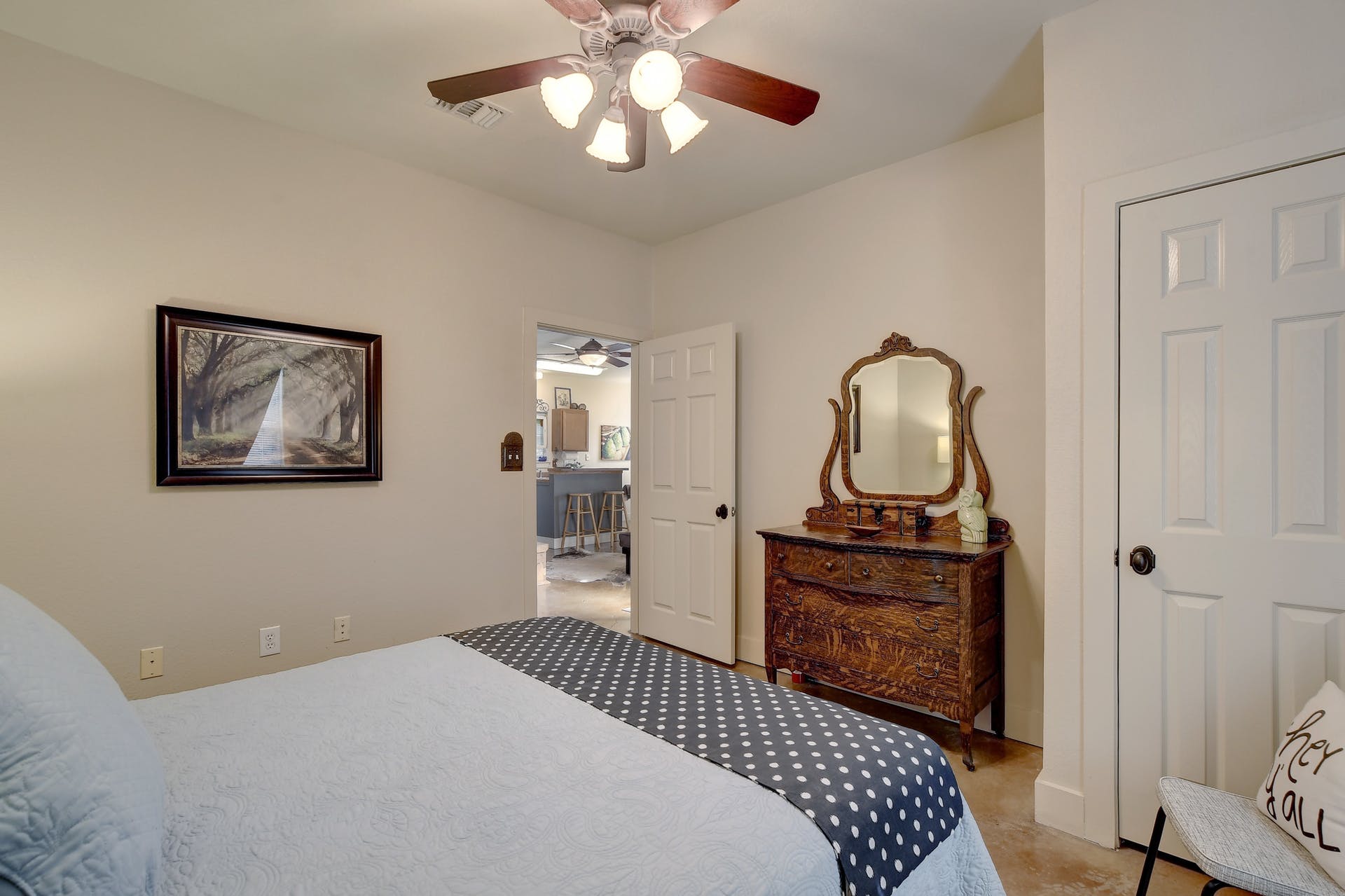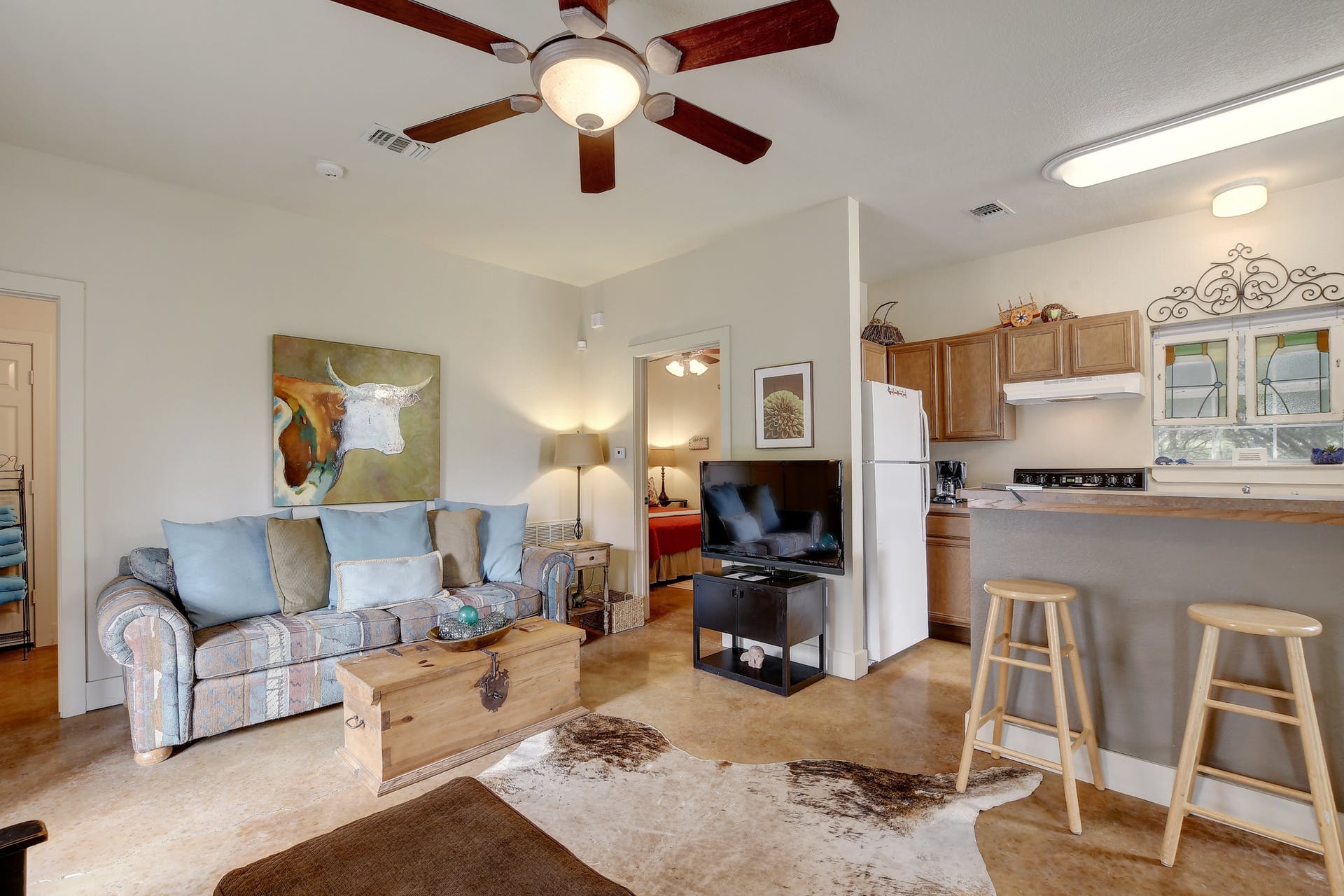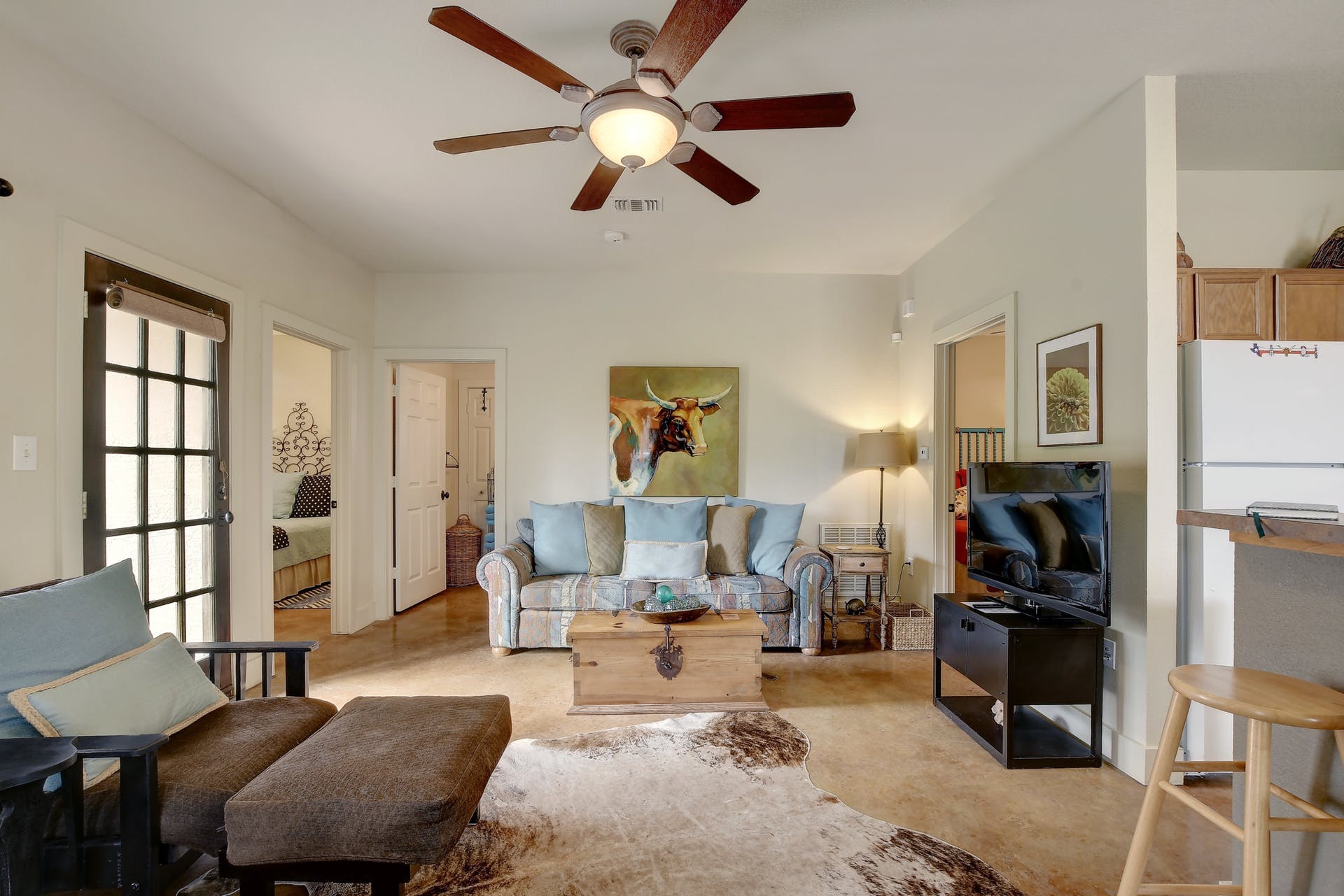 Escape to the charming allure of "Blue Armadillo," your serene haven nestled just 2.5 miles from the vibrant heart of Wimberley's downtown square. This delightful 2-bedroom retreat offers a perfect blend of comfort, convenience, and rustic charm, promising an unforgettable Hill Country getaway.