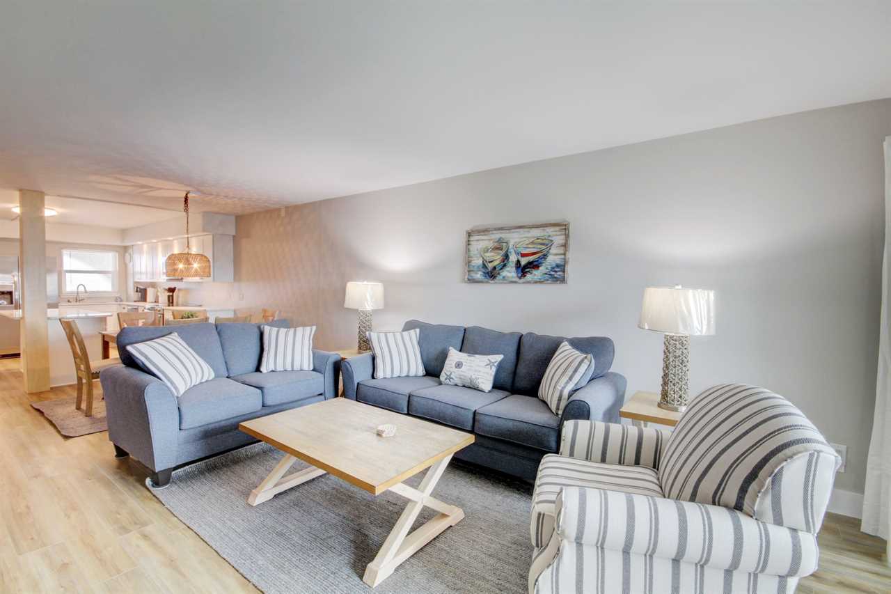 Experience beautiful views of the courtyard and the Gulf of Mexico in this totally remodeled and updated unit just steps from the sugary sands of the Emerald Coast. Enjoy the open concept, fully equipped kitchen make this one a cook's dream. The open/floor plan, and large dining table make entertaining a breeze. Easy balcony access from the living room. Master bedroom has a king size bed with a beautiful view of the courtyard and Gulf of Mexico and the guest bedroom has 2 full size beds with a spectacular view of the vacant beach next to the El Matador. After a day at the beach, have your evening meal on the balcony while enjoying a view of the Gulf.