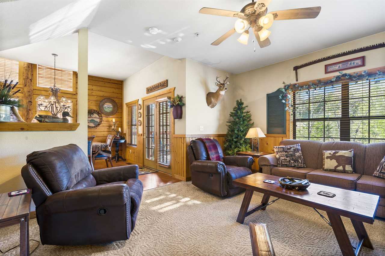 Looking for an unforgettable family vacation in Branson? Our two adjacent cabins at The Cabins at Grand Mountain offer EXCLUSIVE Ticket DEALS and Golf Discounts for guests. Experience a relaxing, remote atmosphere while staying in the heart of Branson, just minutes from shopping, shows, and entertainment. Accommodate up to 14 guests with 4 bedrooms plus loft space, and enjoy TWO living areas, TWO seasonal fireplaces, TWO full kitchens, and TWO screened-in decks. It's perfect for large groups or two families to enjoy together while maintaining privacy.