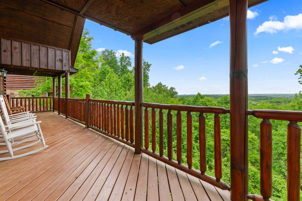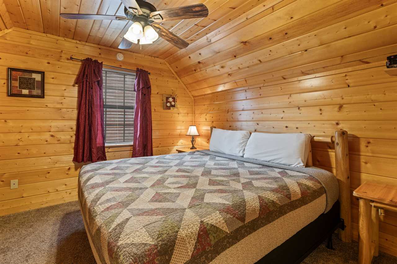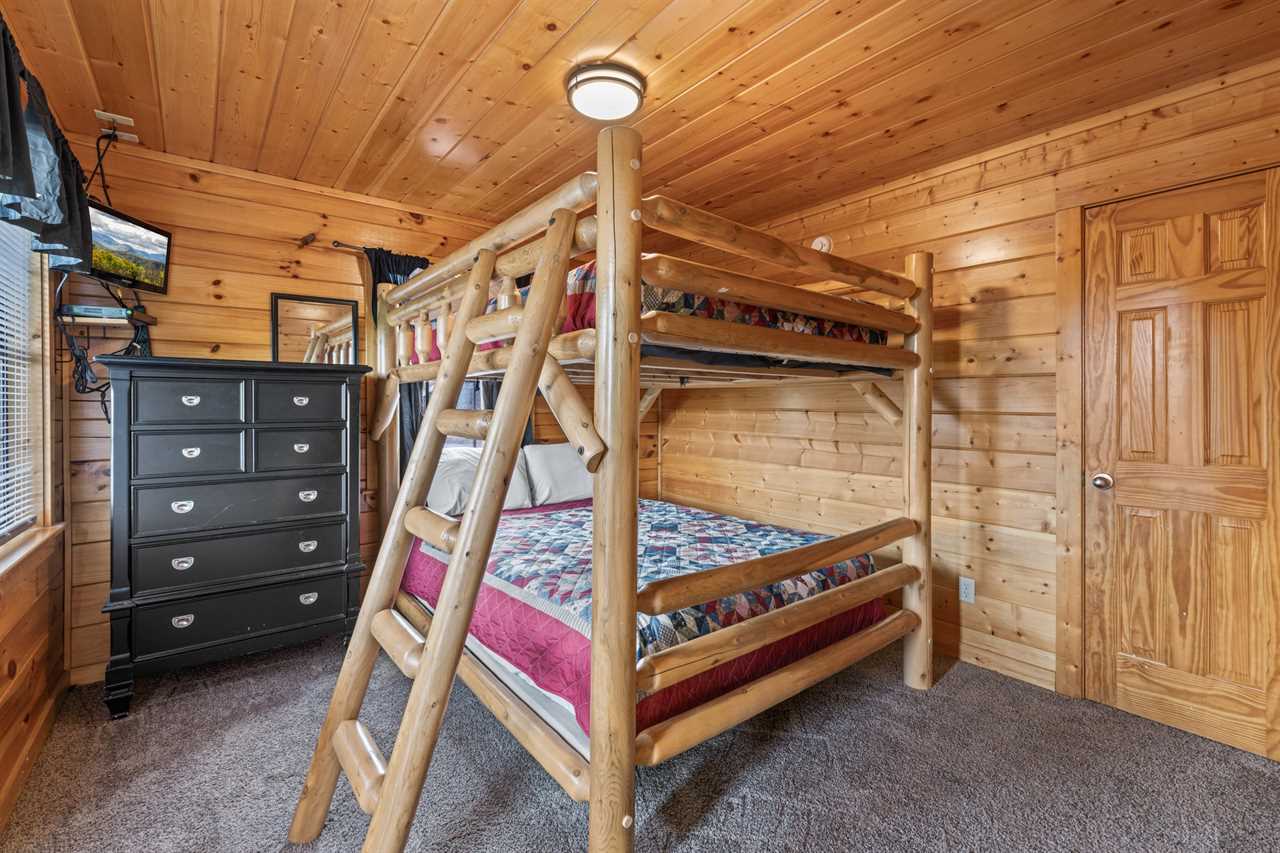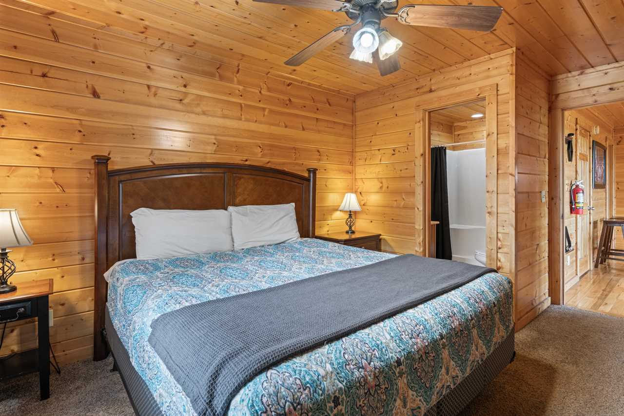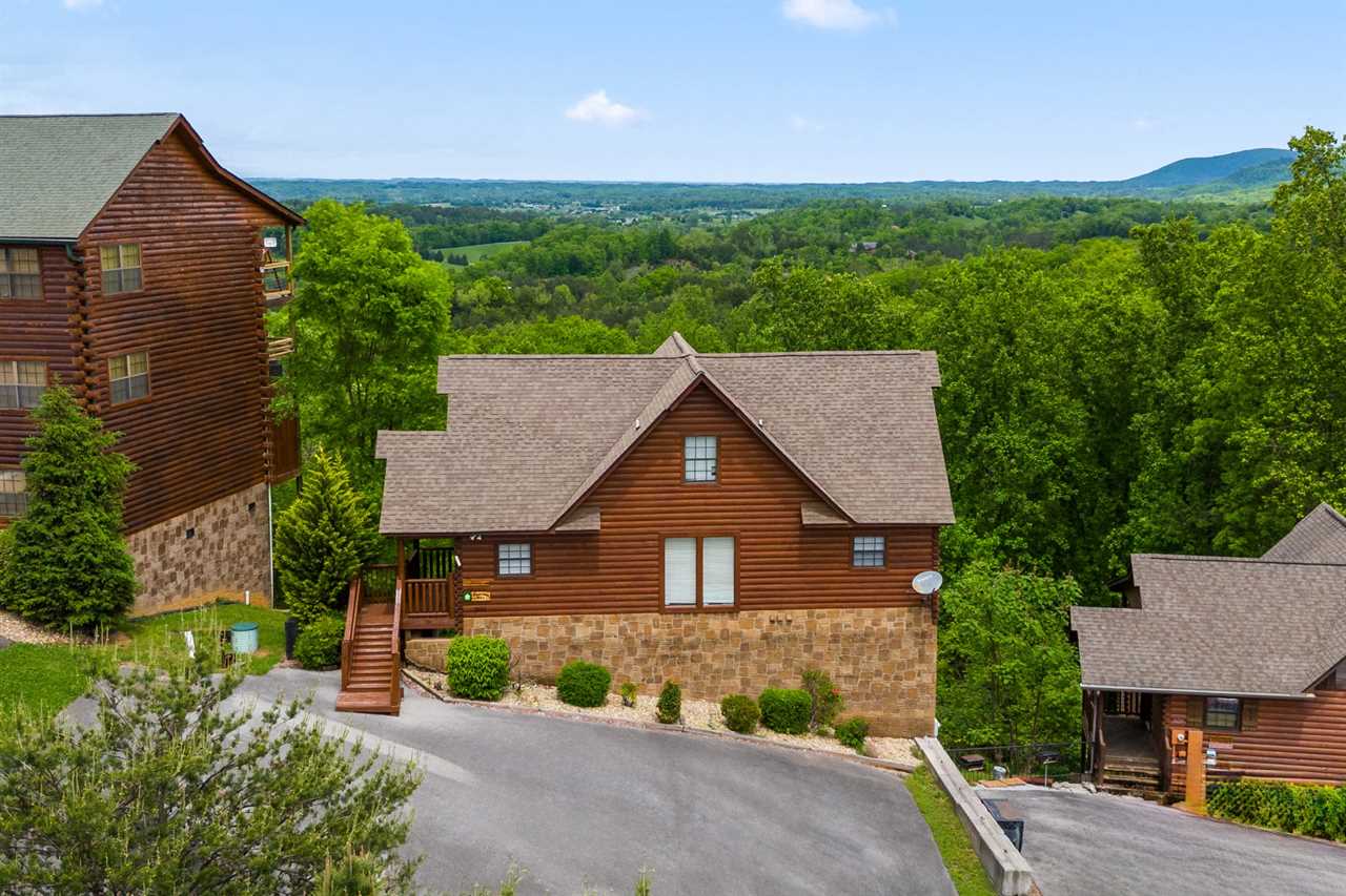 Panoramic View boasts 3 levels, each offering unique features and amenities. The main level is equipped with an open kitchen, complete with an island, and two dining tables, a cozy living room with ample seating, and a large 50 " Roku TV. & a gas fireplace, additionally, this level includes a luxurious king bed suite with a full shower and bath & in -room jetted tub, as well as a large covered porch that spans the entire back of the house, the mountain views are spectacular from each level of the cabin.