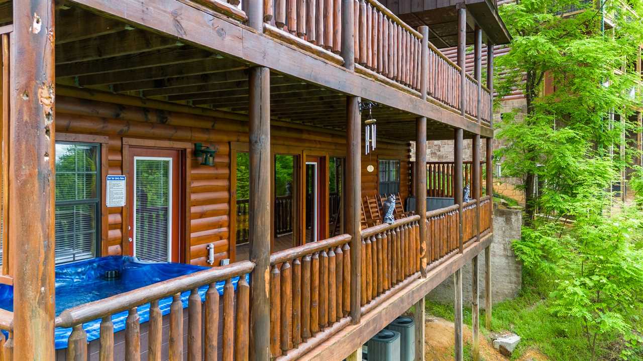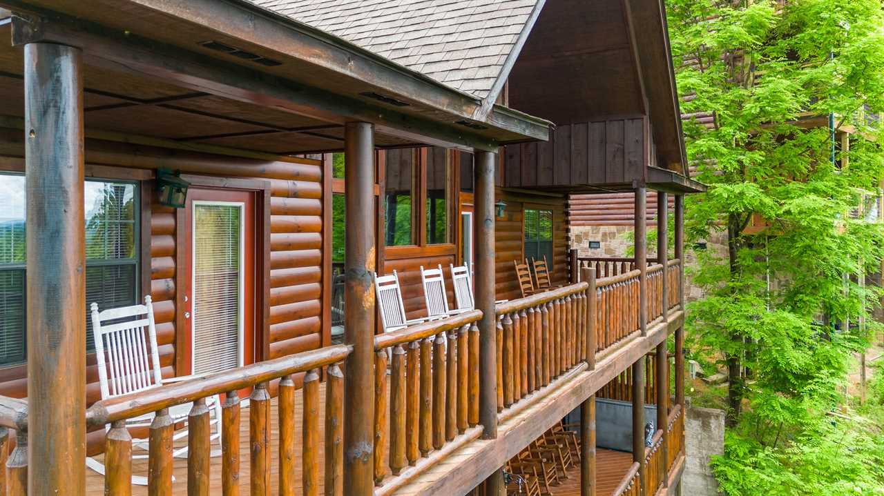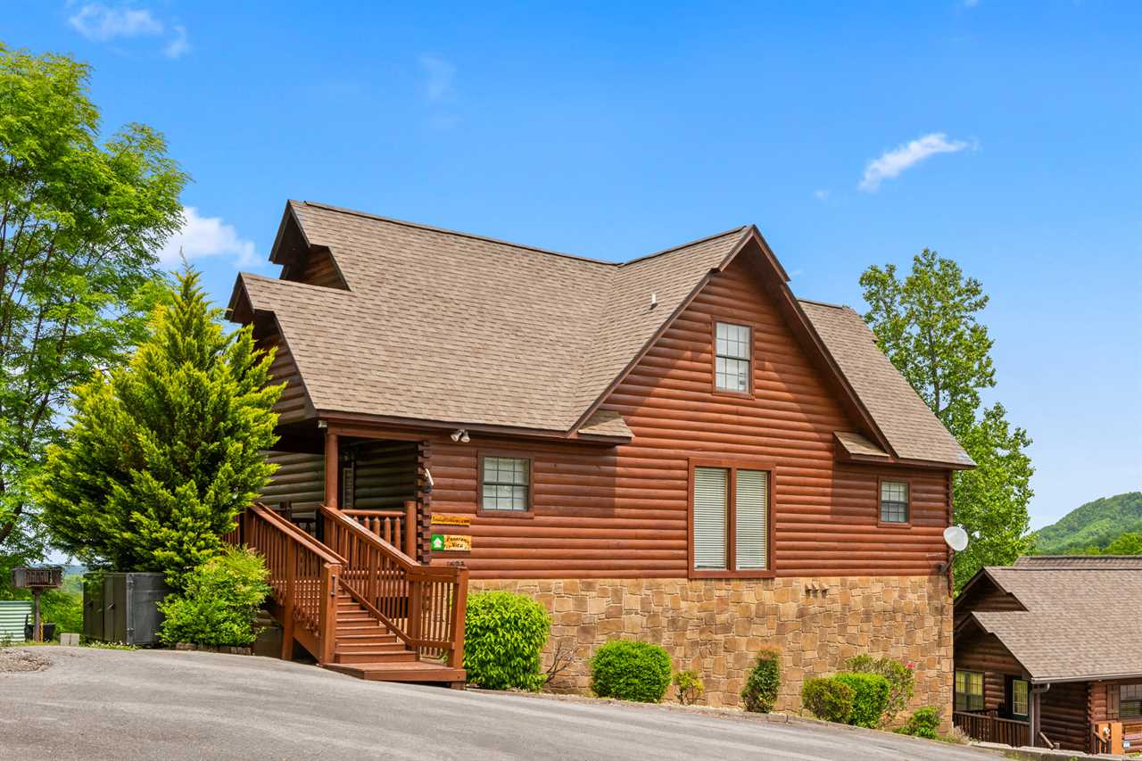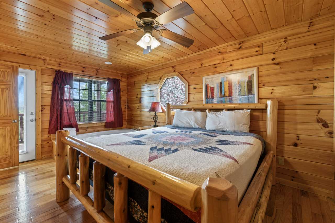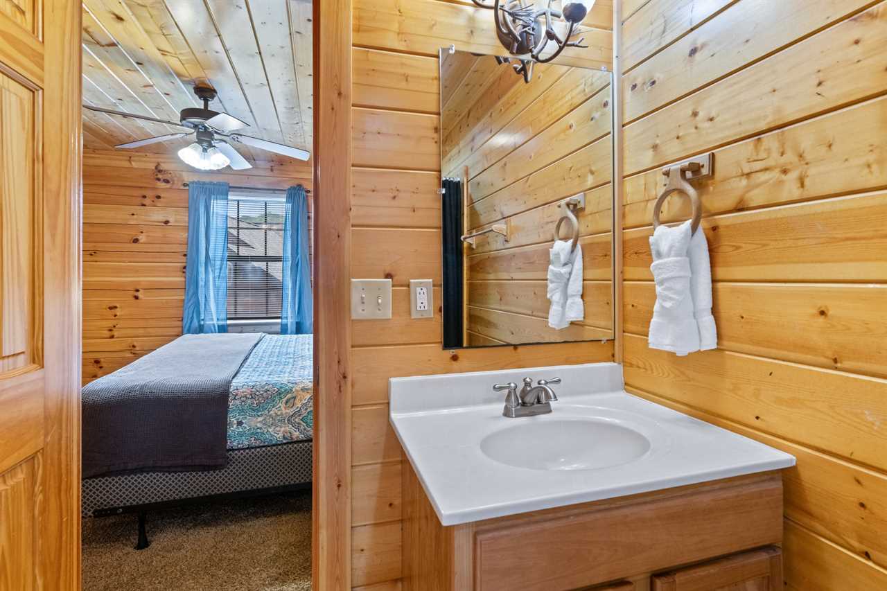 Panoramic View boasts 3 levels, each offering unique features and amenities. The main level is equipped with an open kitchen, complete with an island, and two dining tables, a cozy living room with ample seating, and a large 50 " Roku TV. & a gas fireplace, additionally, this level includes a luxurious king bed suite with a full shower and bath & in -room jetted tub, as well as a large covered porch that spans the entire back of the house, the mountain views are spectacular from each level of the cabin.