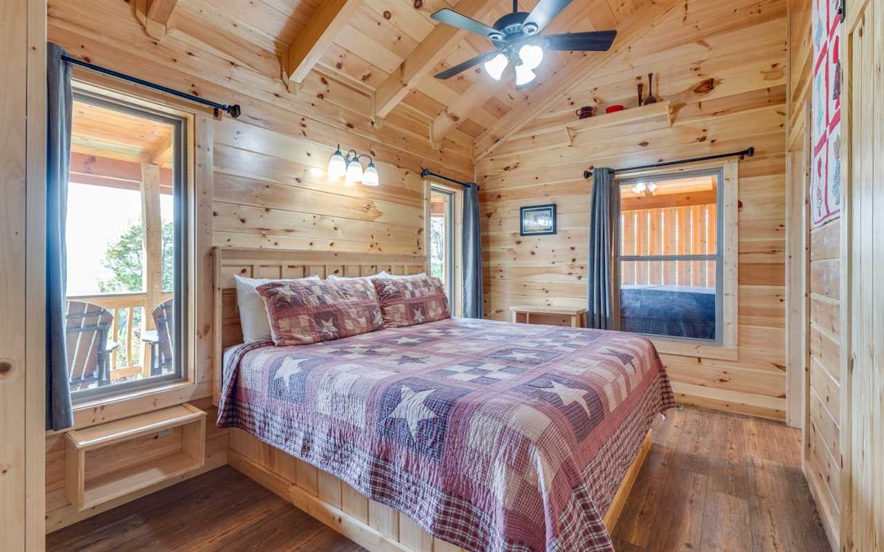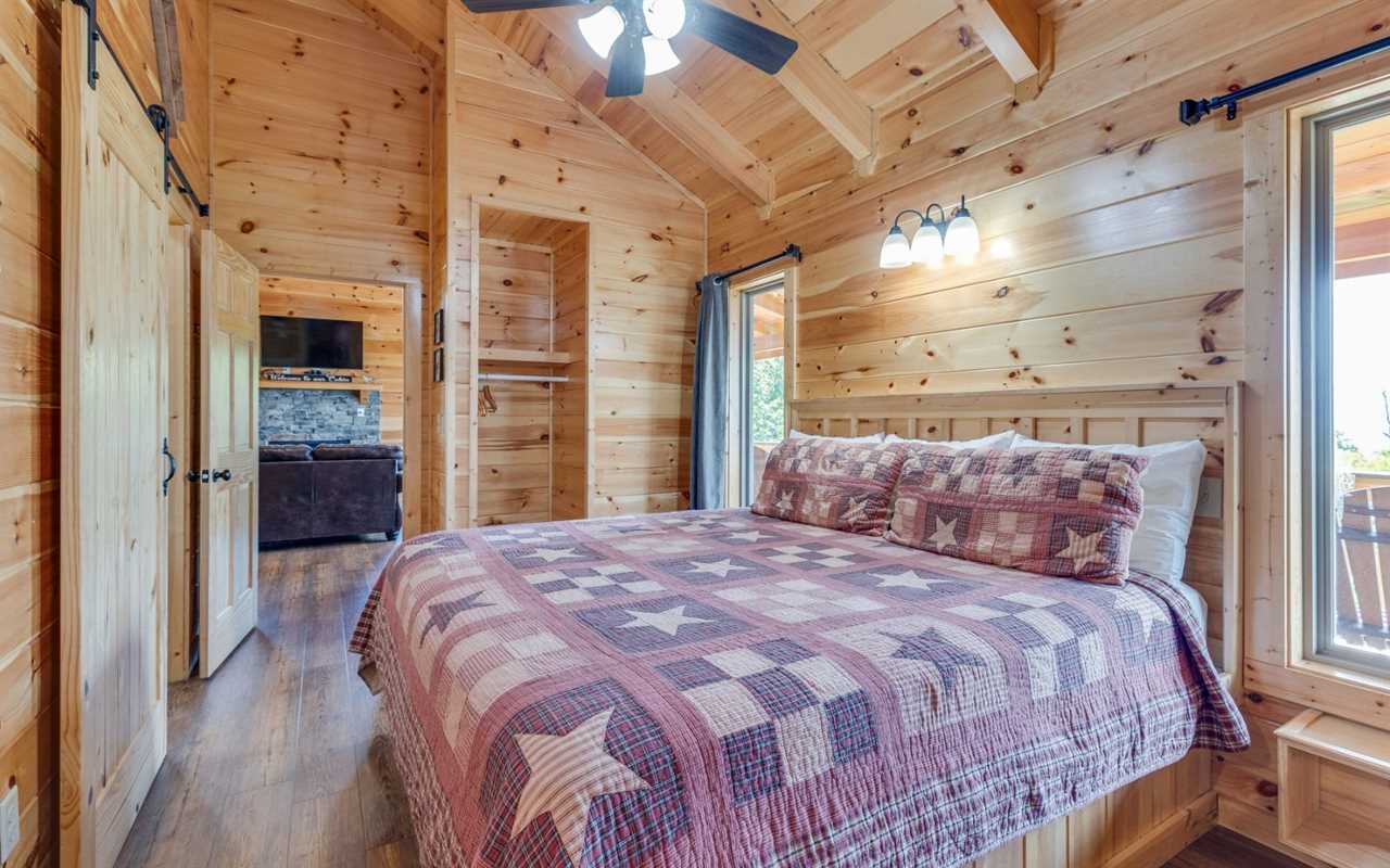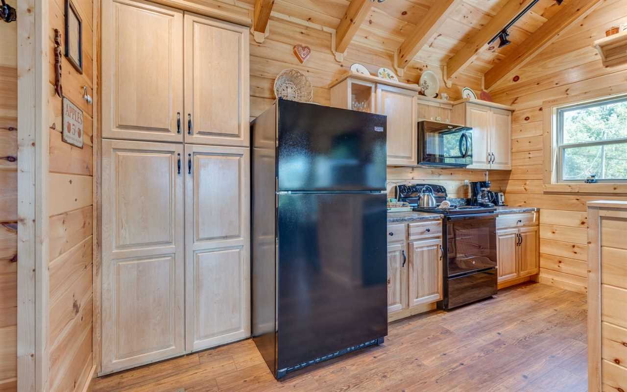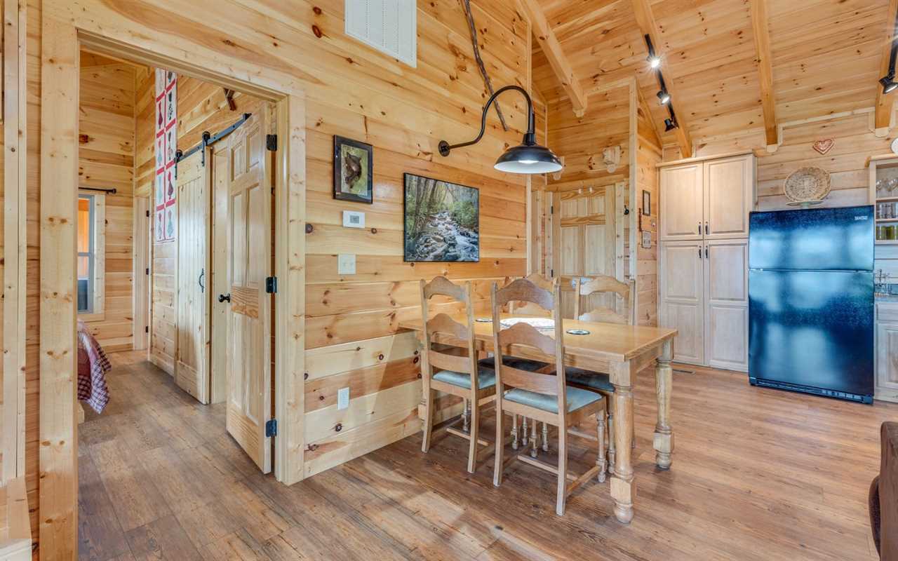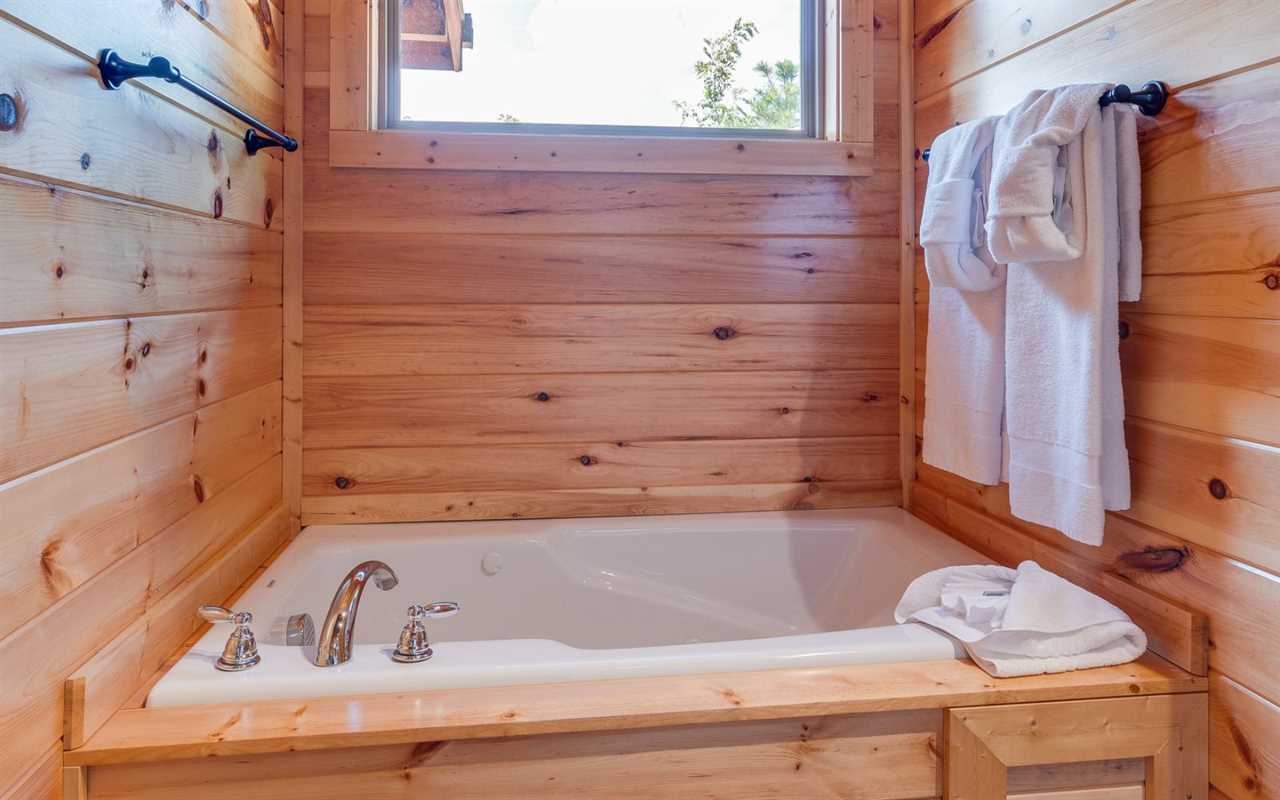 The porch extends the width of the cabin and continues along the far side to accommodate the hot tub. Of course, a table is available for dining, and the firepit – adjacent to the outdoor grill – will take your cares away while you gaze at nature's bounty, listening to local wildlife and spotting fireflies.