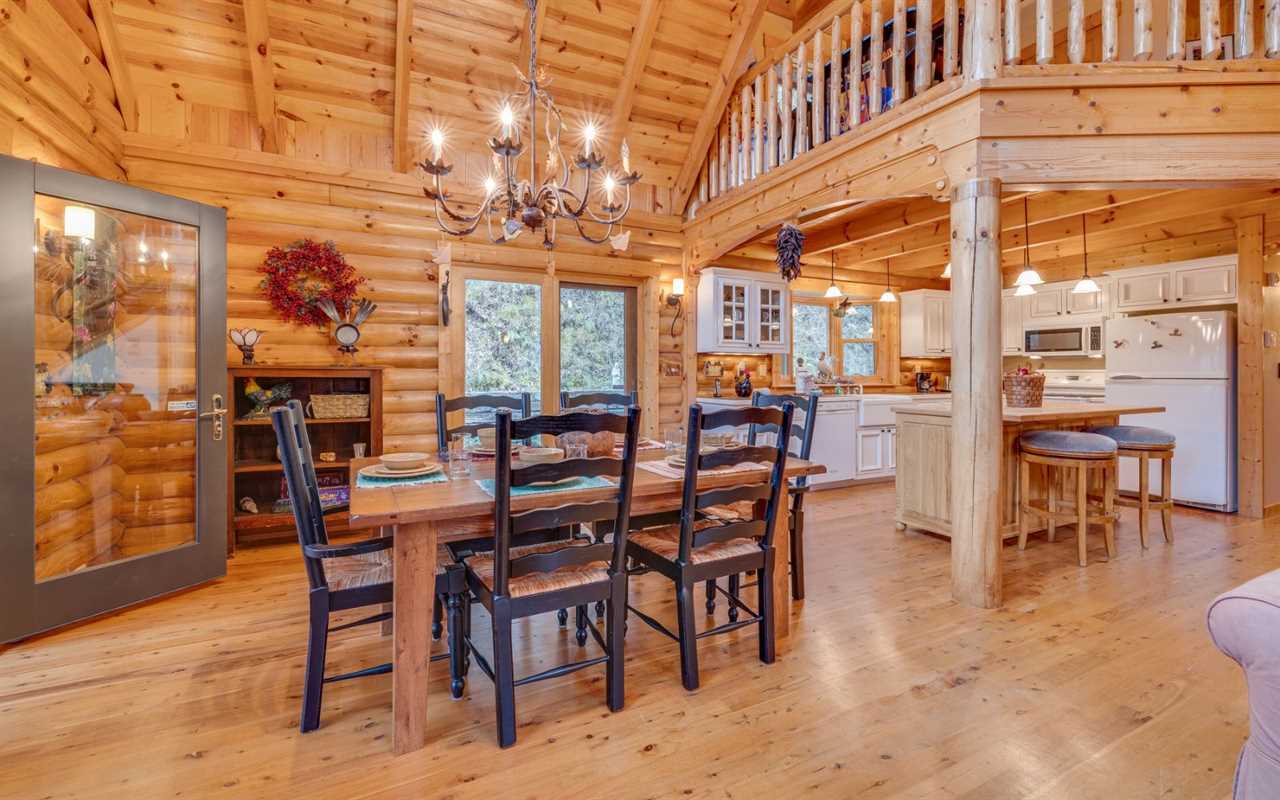 One of Hillside Hideout's highlights is its outdoor haven. Step onto the open deck and breathe in the fresh mountain air while sipping cocktails around the fire table. The bubbling hot tub on the patio beckons, promising relaxation as you soak tired muscles with mountain and tree vistas. Host a barbecue on the grill and dine at the outdoor table, creating unforgettable moments against the backdrop of nature's symphony. Or walk into the tree to sway and unwind in a pair of hammocks.