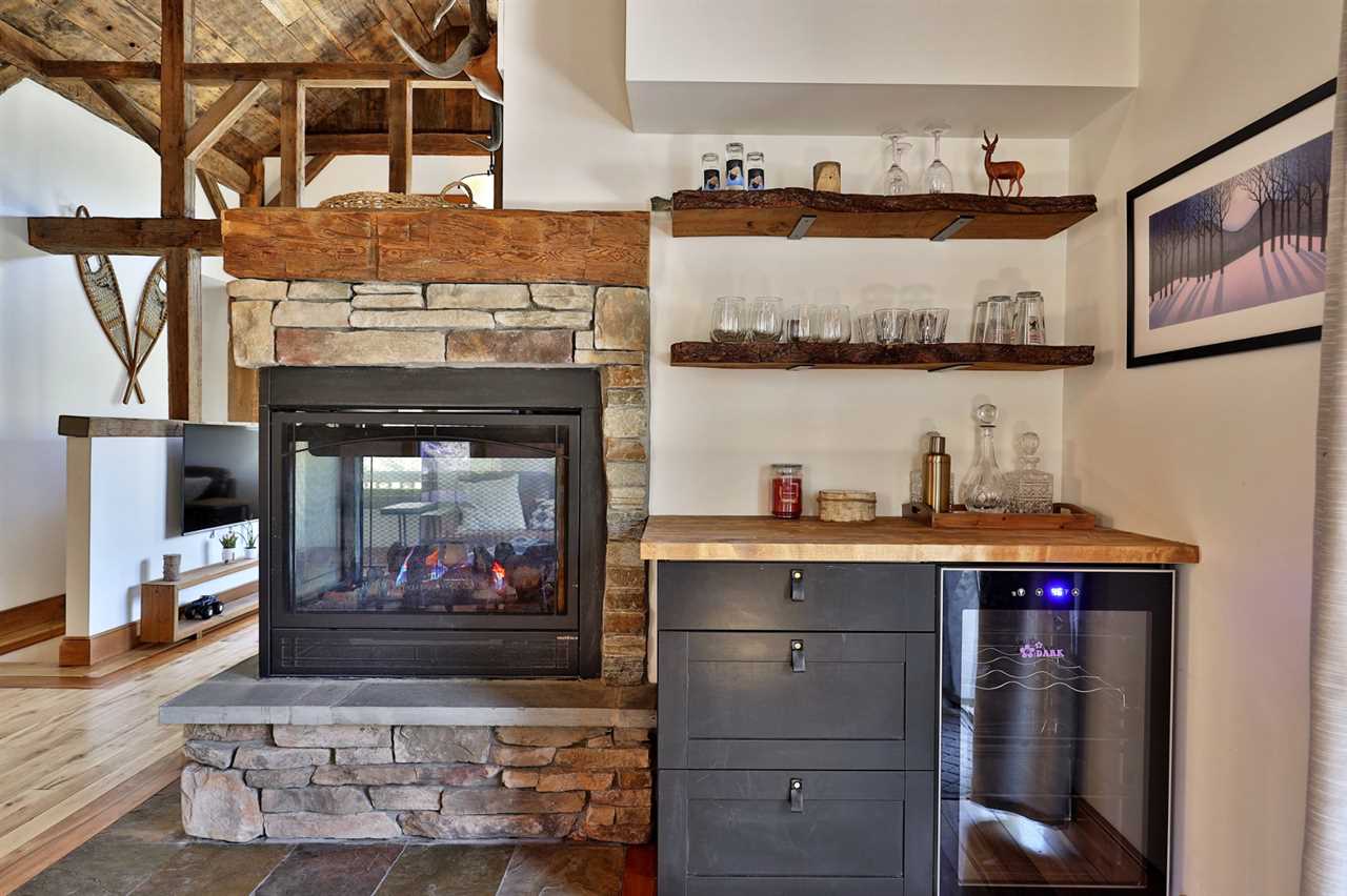 • Main Floor: enter through the main door and you'll be in the mudroom area where you can store all your gear. Past the mudroom, you'll find the kitchen and dining area to the right, the living room and half bathroom to the left and an open gas fireplace in the middle of it all. Head out the slider to the back deck with patio furniture and a gas grill.