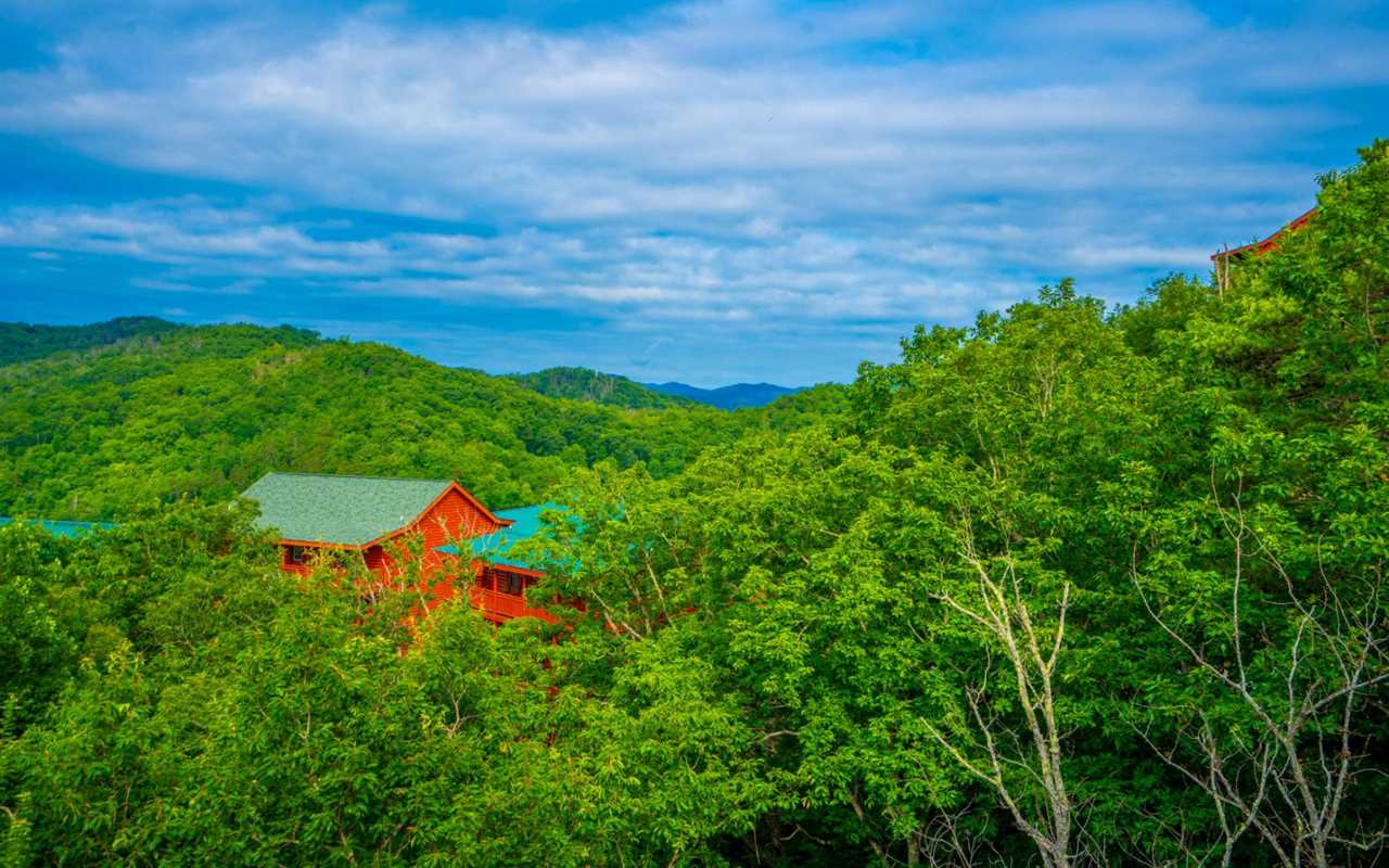 • Large windows with treetop and mountain views