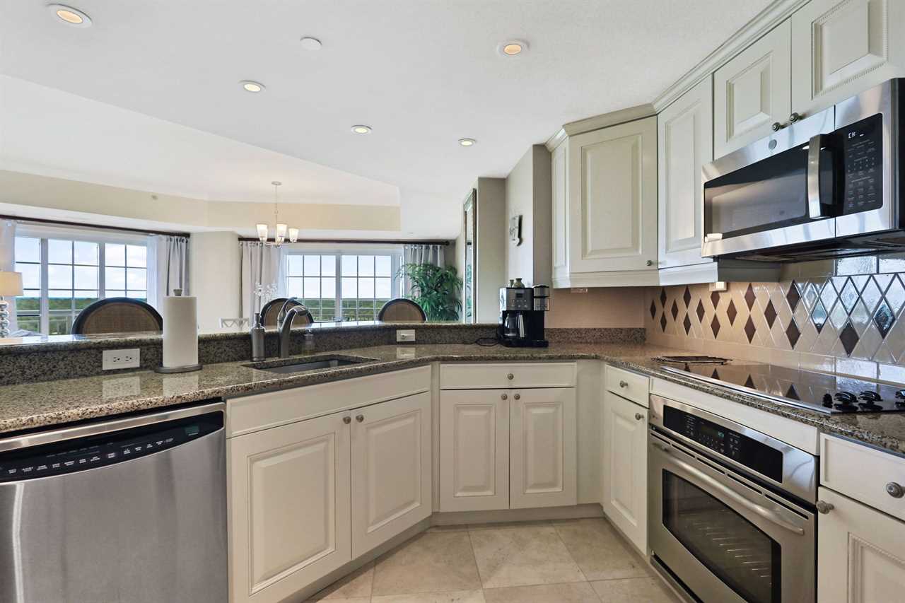 Relax and unwind on the expansive balcony, complete with a table and chairs, perfect for enjoying your morning coffee or watching the sunset over the horizon. From this vantage point, behold the awe-inspiring panoramic views of the themed-parks and the space coast, creating a truly magical backdrop to your stay. Indulge your culinary desires in the fully equipped kitchen, complete with modern appliances and ample counter space.