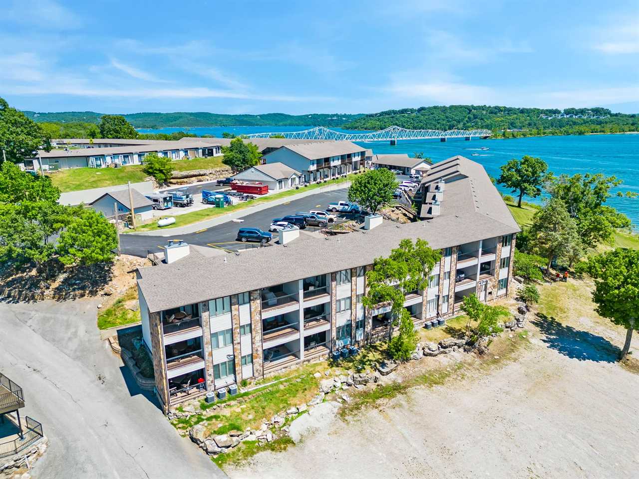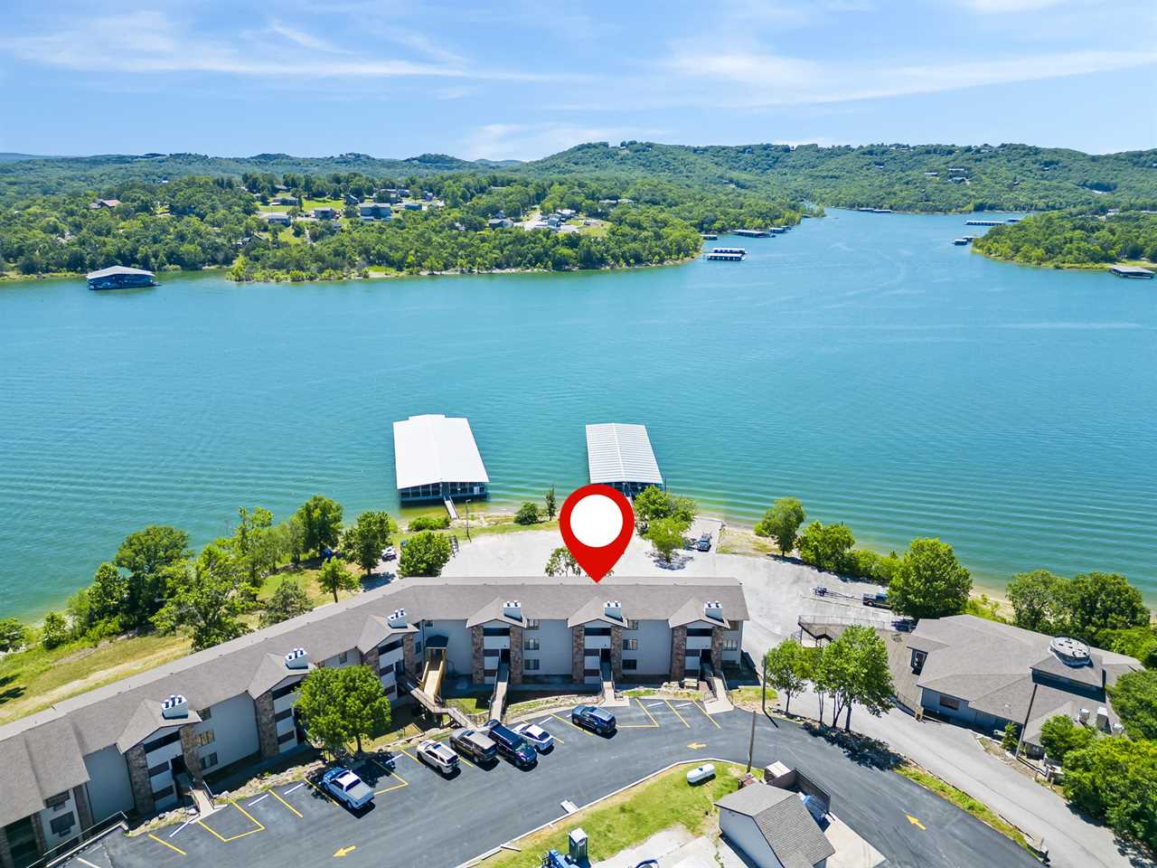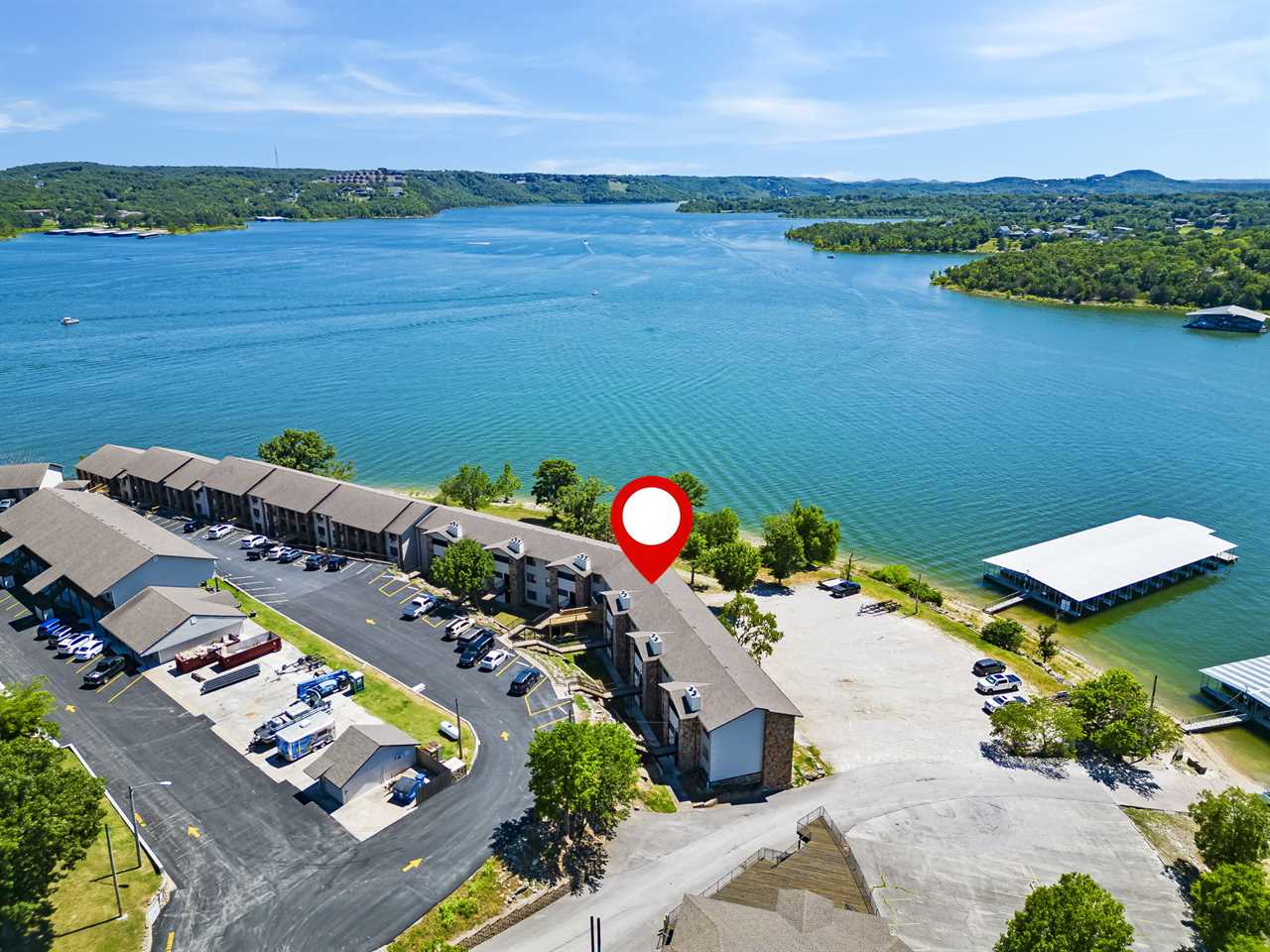 Inside you'll find a large living area to cozy up in for a movie night. The well-equipped kitchen is great for cooking up your latest catch from Table Rock Lake! Enjoy any meal at the dining table where natural light floods in from the sliding door. Out on the deck, sip on your favorite beverage with a great view of the shoreline.