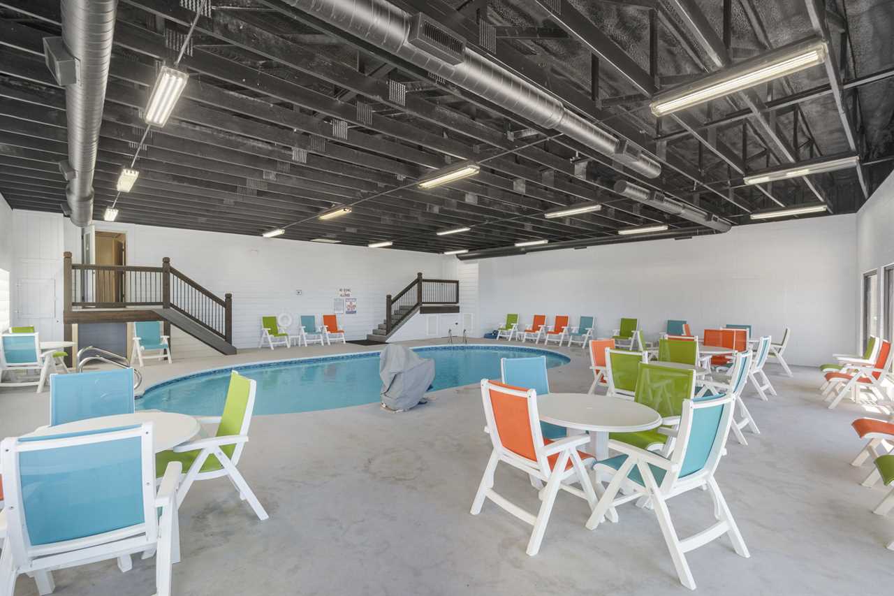 Wake up refreshed and ready to indulge in the resort amenities, including an indoor pool for year-round enjoyment. The seasonal outdoor pool will provide additional options for leisurely dips beneath the sun. Challenge your companions to a friendly match at the pickle-ball and basketball court or watch the little ones delight in the playground's offerings.