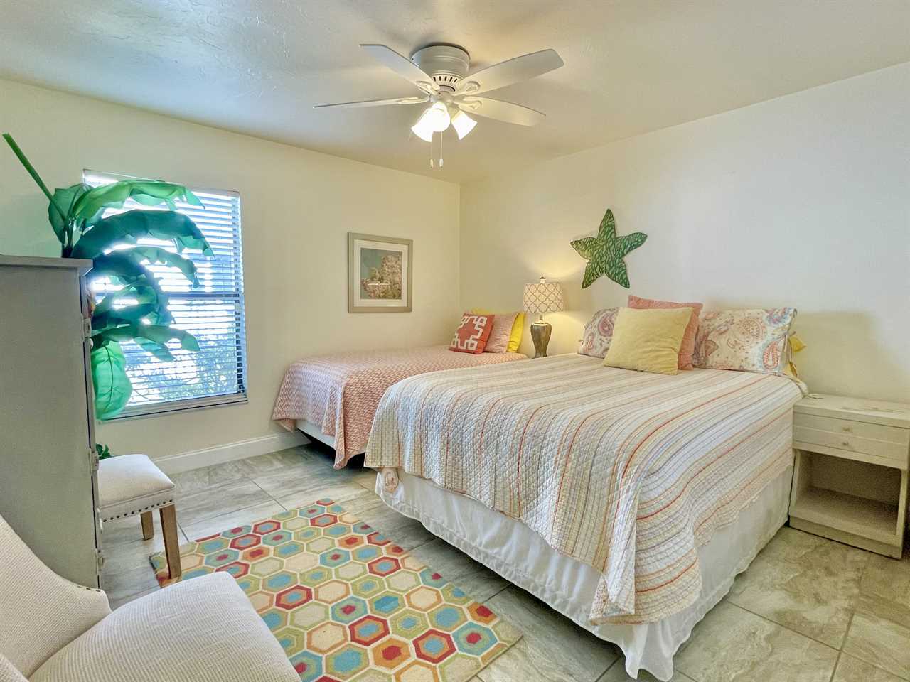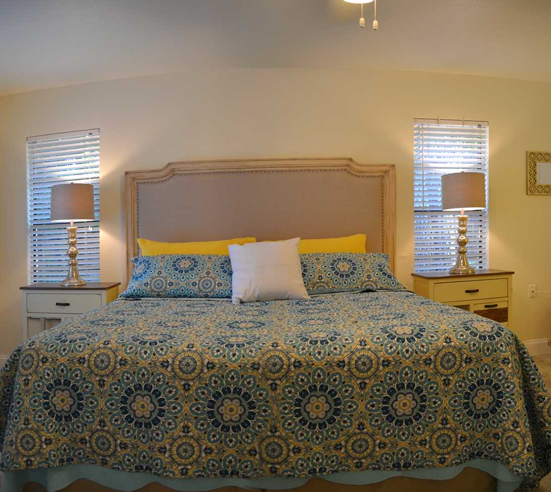 This beautiful home has recently been renovated inside and out. Located just a 10 minute drive to Holmes Beach on Anna Maria Island and 15 minutes to Downtown Bradenton puts this home right in the middle of unlimited shops, restaurants, and activities. As you enter the home you are welcomed by an open floor plan with family room, kitchen, and living room which all open out to a large screened patio and pool through french doors. All three bedrooms are very large furnished with 1 king bed in the master, 1 queen and 2 twin-size beds in the guest bedrooms. These two guest bedrooms share a beautifully remodeled bathroom with soaking tub. The master en-suite bath has a large walk-in shower and closet. The spacious kitchen with breakfast bar opens out to the patio via french doors and is equipped for all your cooking needs. Enjoy a serene and quiet atmosphere out by the pool overlooking the lake or try some fishing off the dock.