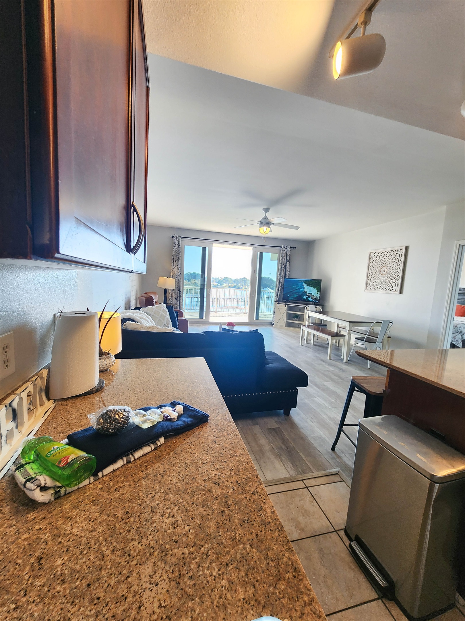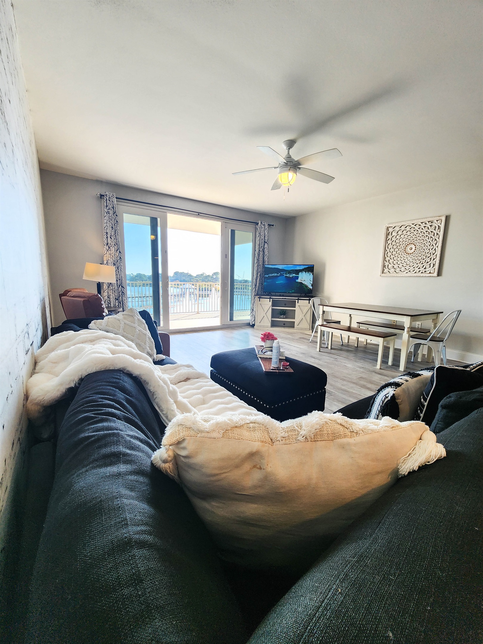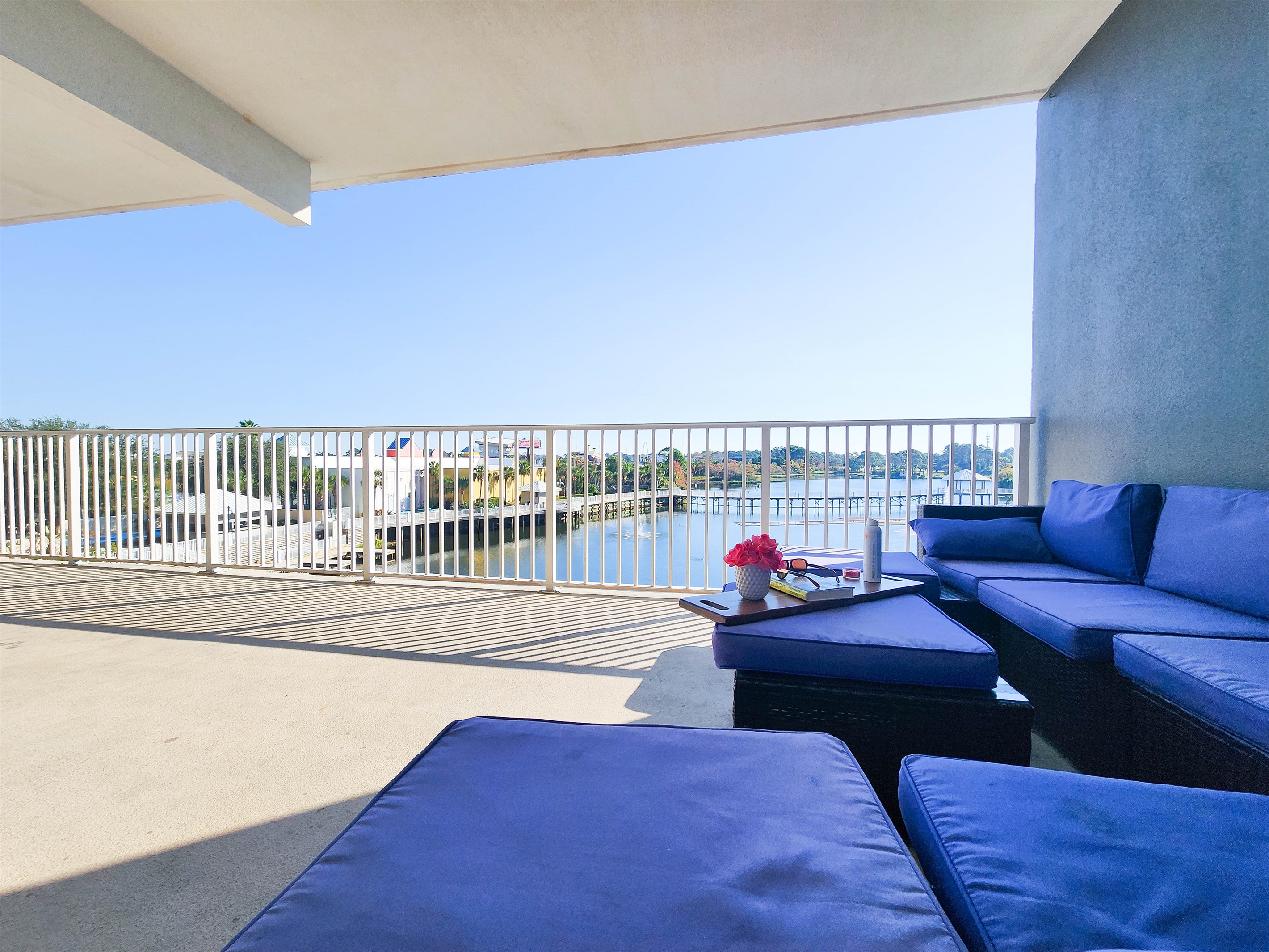 Completely Remodeled and Beautifully Furnished Condo, located directly across from the within a short walk to the beach. Lake town Wharf offers THE Resort style vacation, from the five unique pools, 52,000 square feet of lakefront boardwalk, a fully equipped fitness center, covered parking, miniature golf, an on-site market/bistro, on-site dining options and flexible meeting spaces for conferences, to weddings and other group functions. There is really no reason to leave, other than the beach experience you can find across the street.