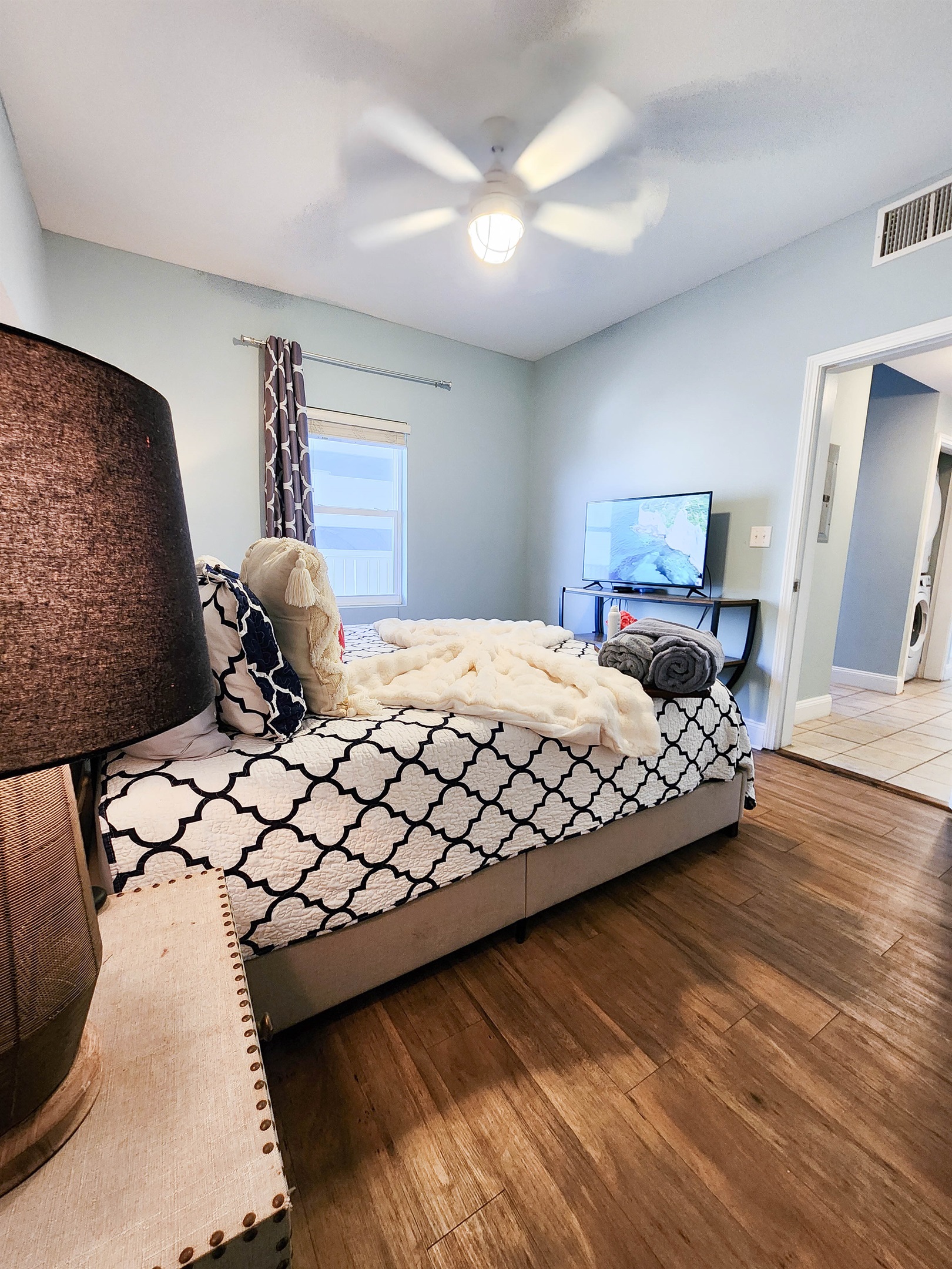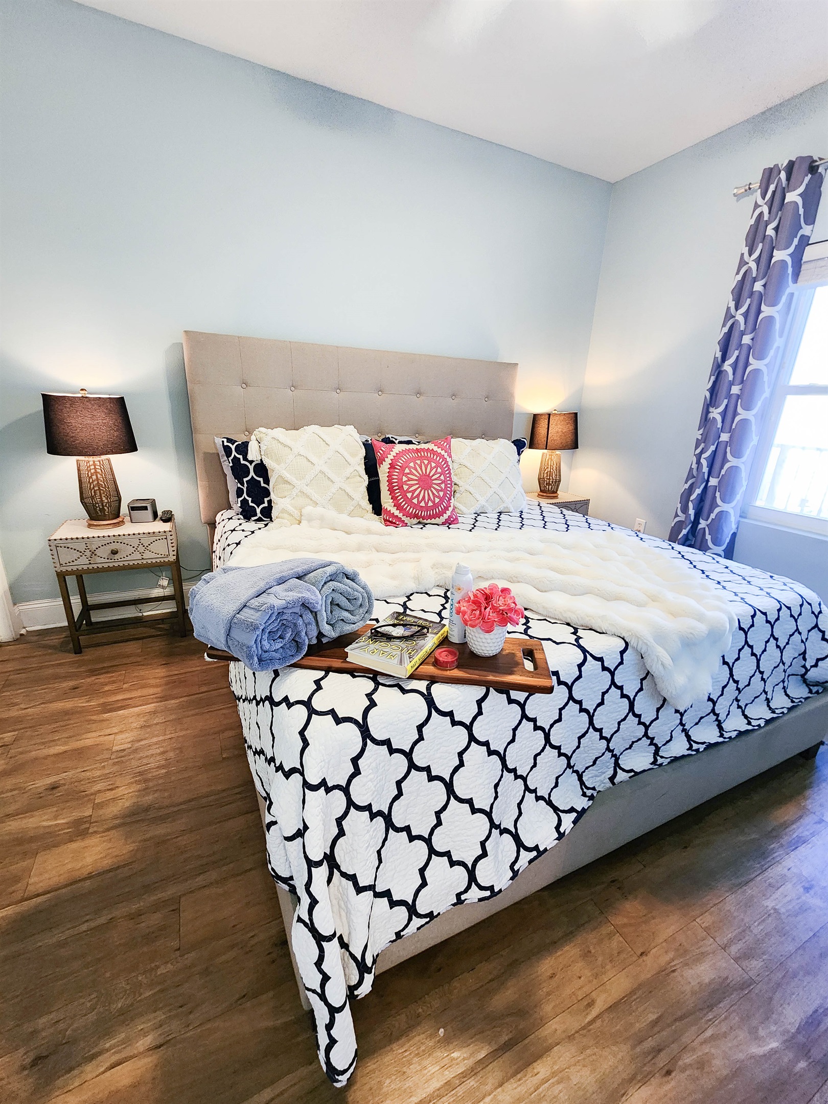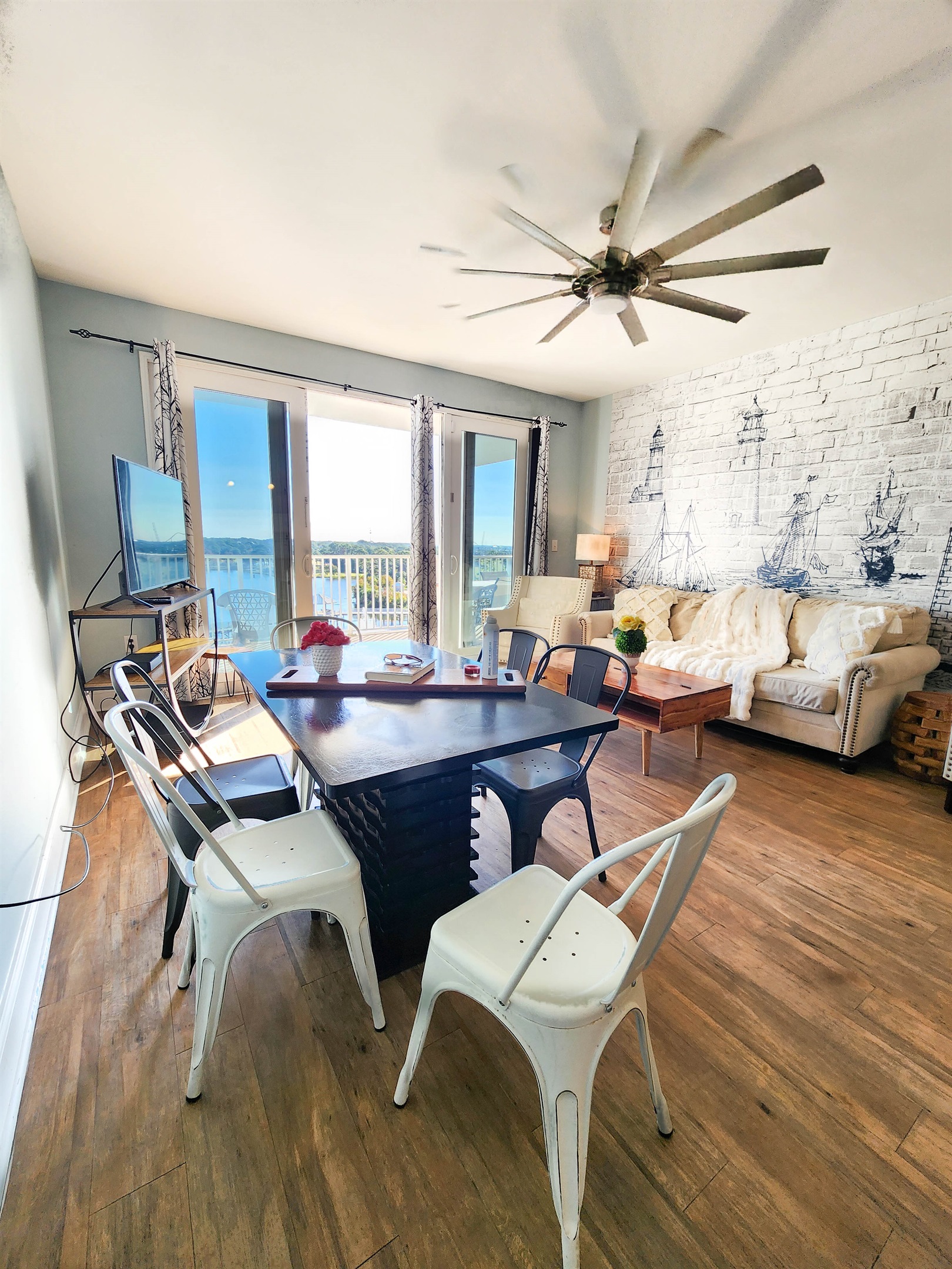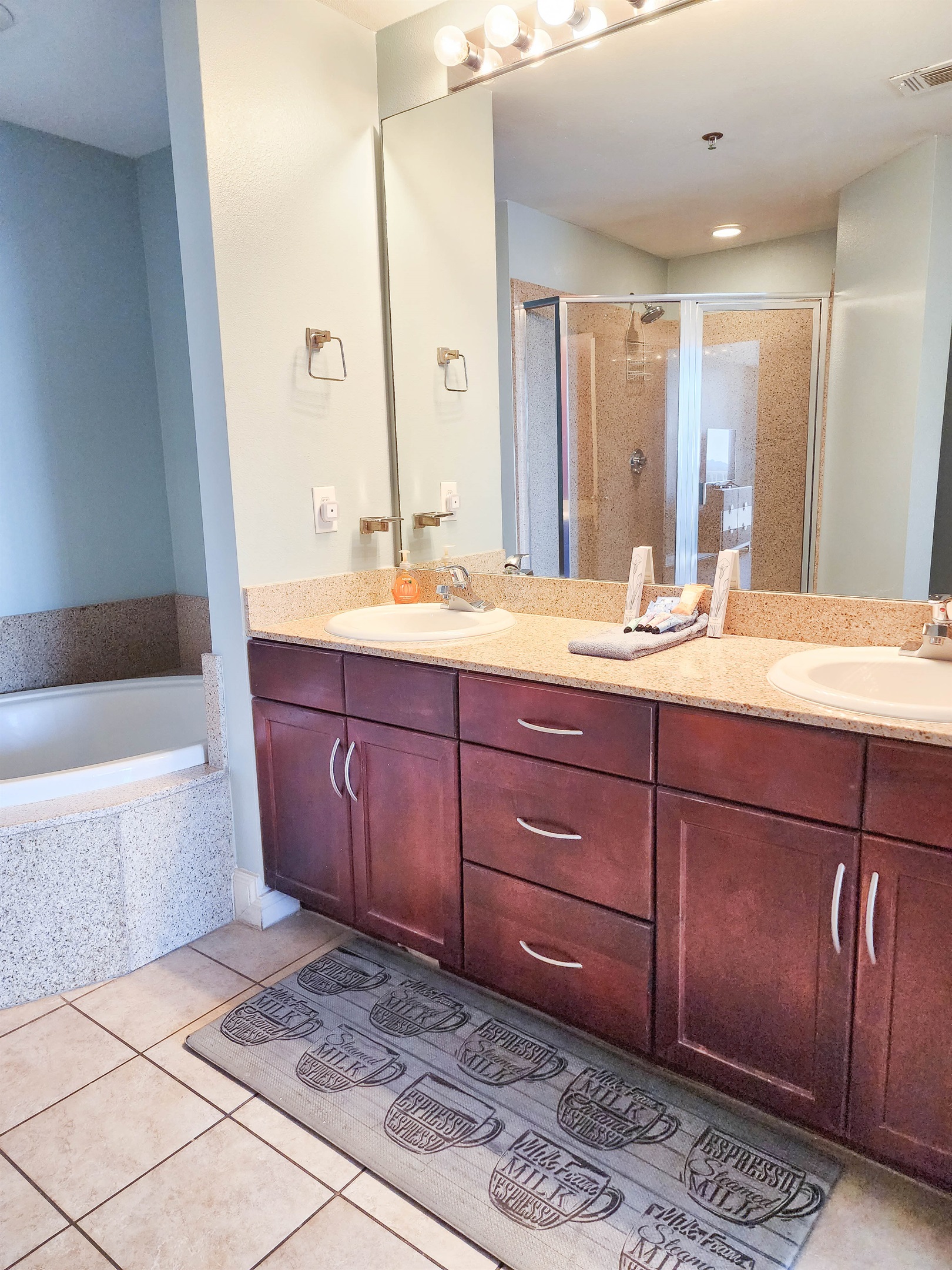 This Uniquely Designed 2 Bedroom Condo will take your breath away! Beautifully decorated with the latest design trends, it creates the ultimate comfort for your Panama City Beach Getaway! The living room is well appointed with comfortable and stylish furniture, including a sleeper sofa, smart TV with Netflix account and upgraded channels like HBO and latest apps.The kitchen is fully equipped with all necessary items to cook a meal, from high end toaster, coffee maker to the latest washer and dryers. The master bedroom is very spacious with a balcony and en suite bathroom, a very comfortable King bed and a TV. The second master also has a flat screen TV with a Netflix account and al the latest apps and upgraded channels, like HBO. The nook area offers the bunk bed, lots of storage and a fun environment for the kiddos to play in and have their own space away from adults. The unit has an extremely large balcony that overlooks the lake and the Vegas style fountain show every night. The condo is located on the 6th floor, so once you park your vehicle on the 6th floor parking level, you walk straight to your unit without needing any elevator. The putting green and kids pools are just 2 floors down.