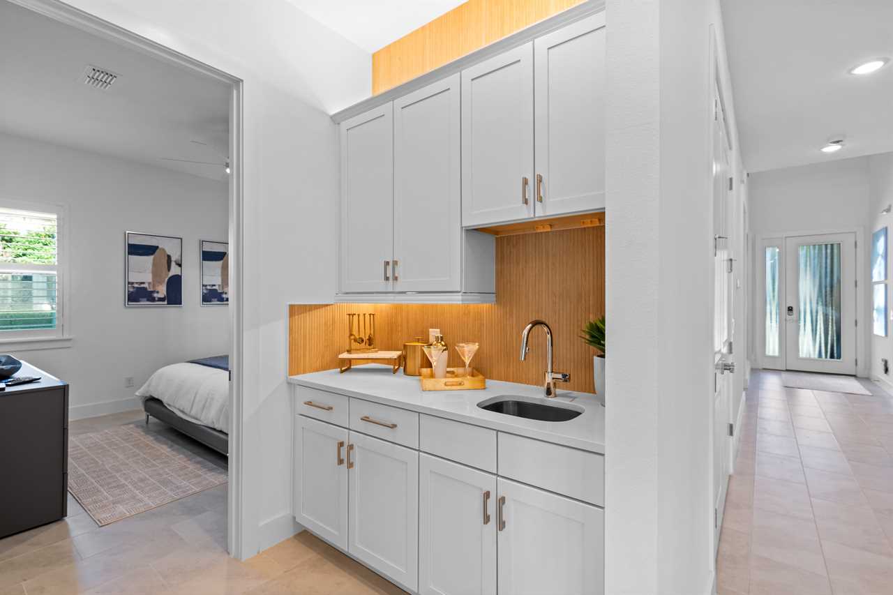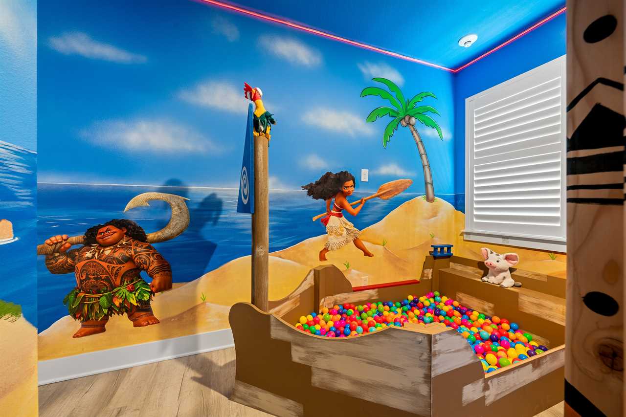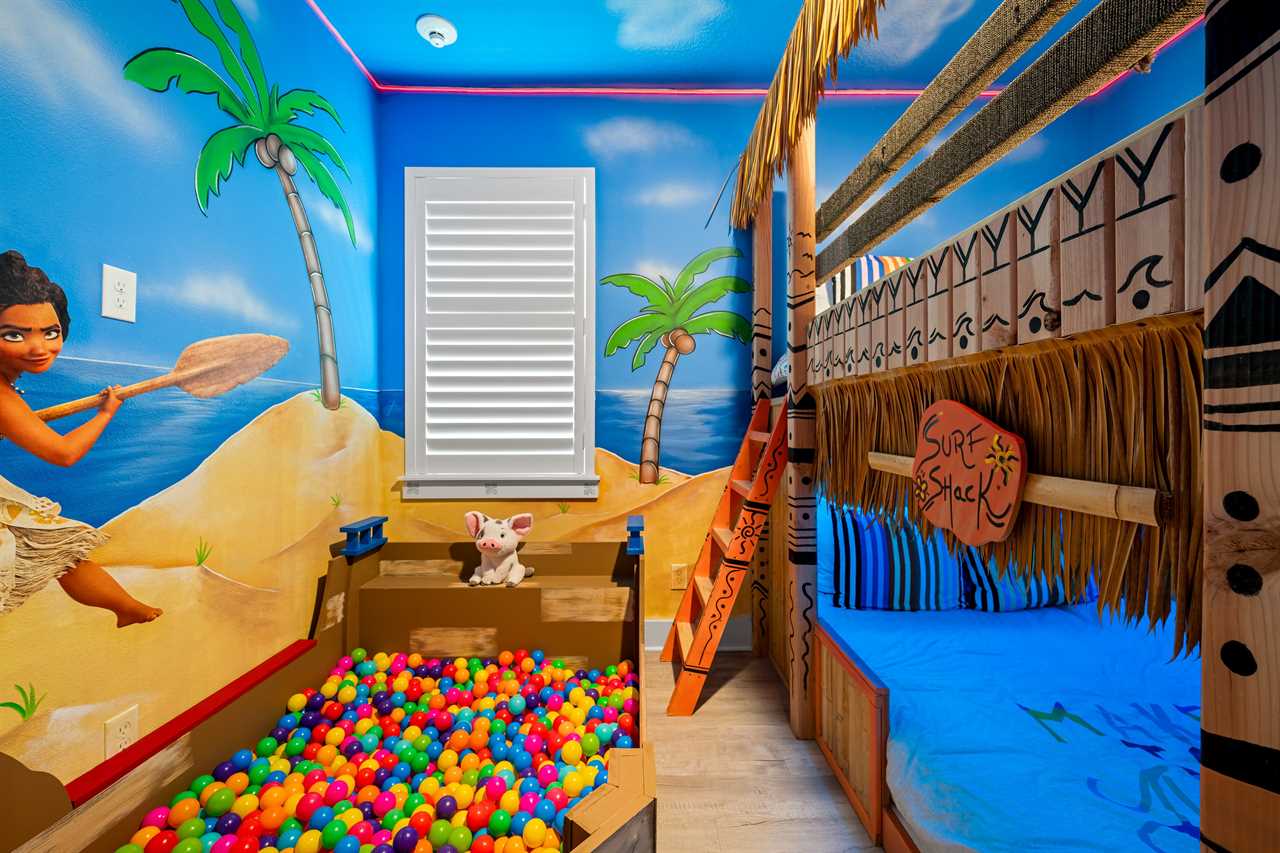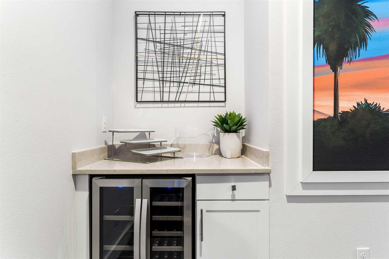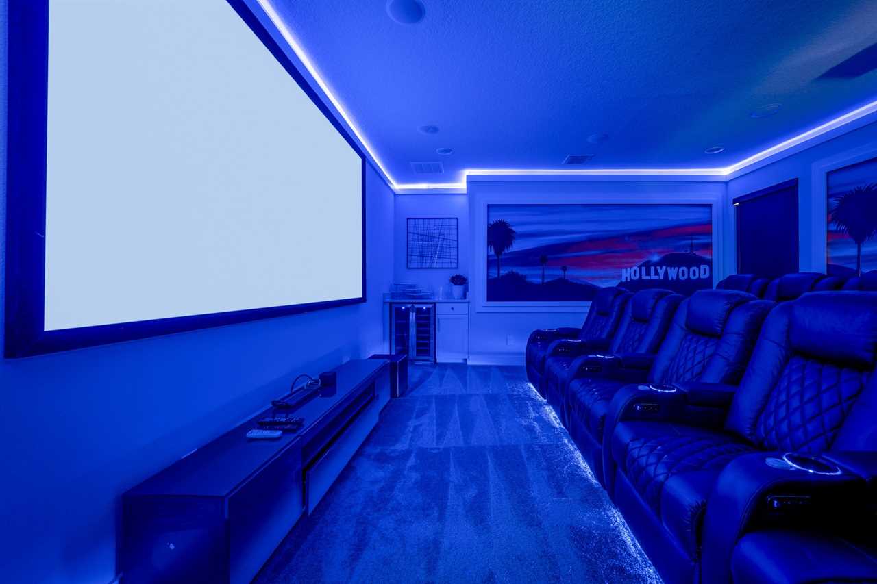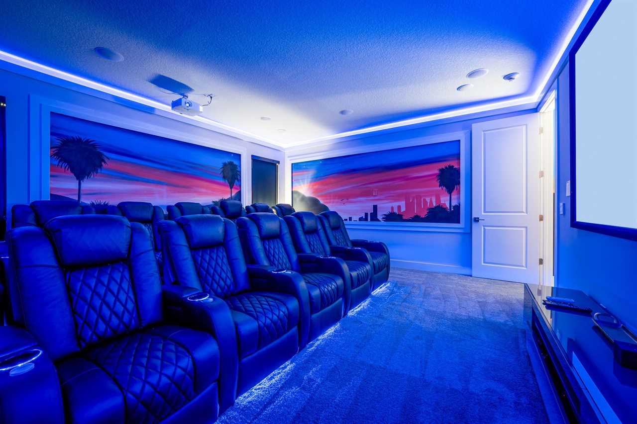 For movie lovers, the Hollywood-themed theater seats 12 in plush comfort and includes a wine fridge, a 144” screen, and a dedicated gaming station.