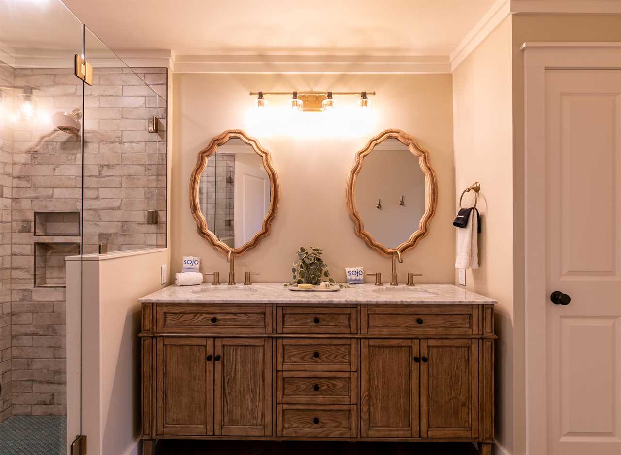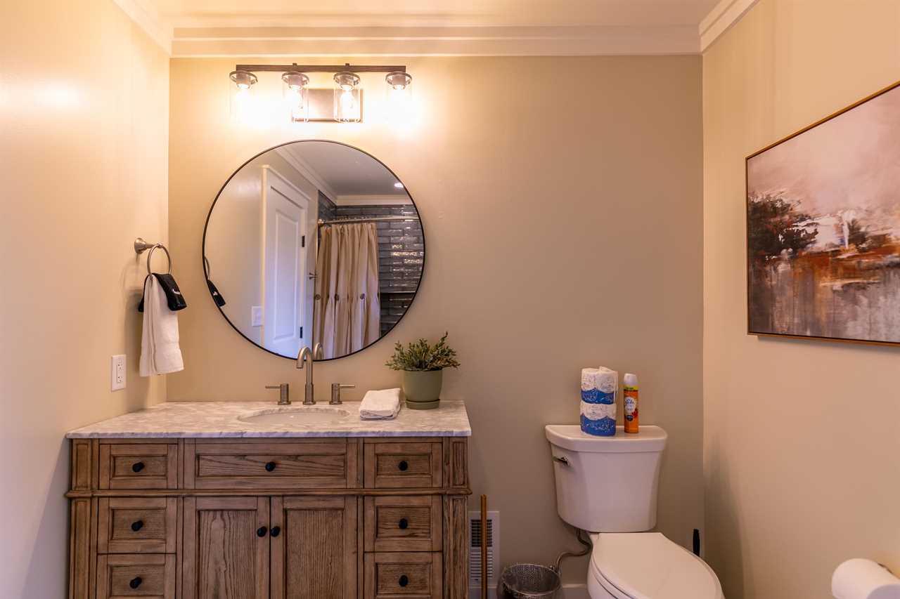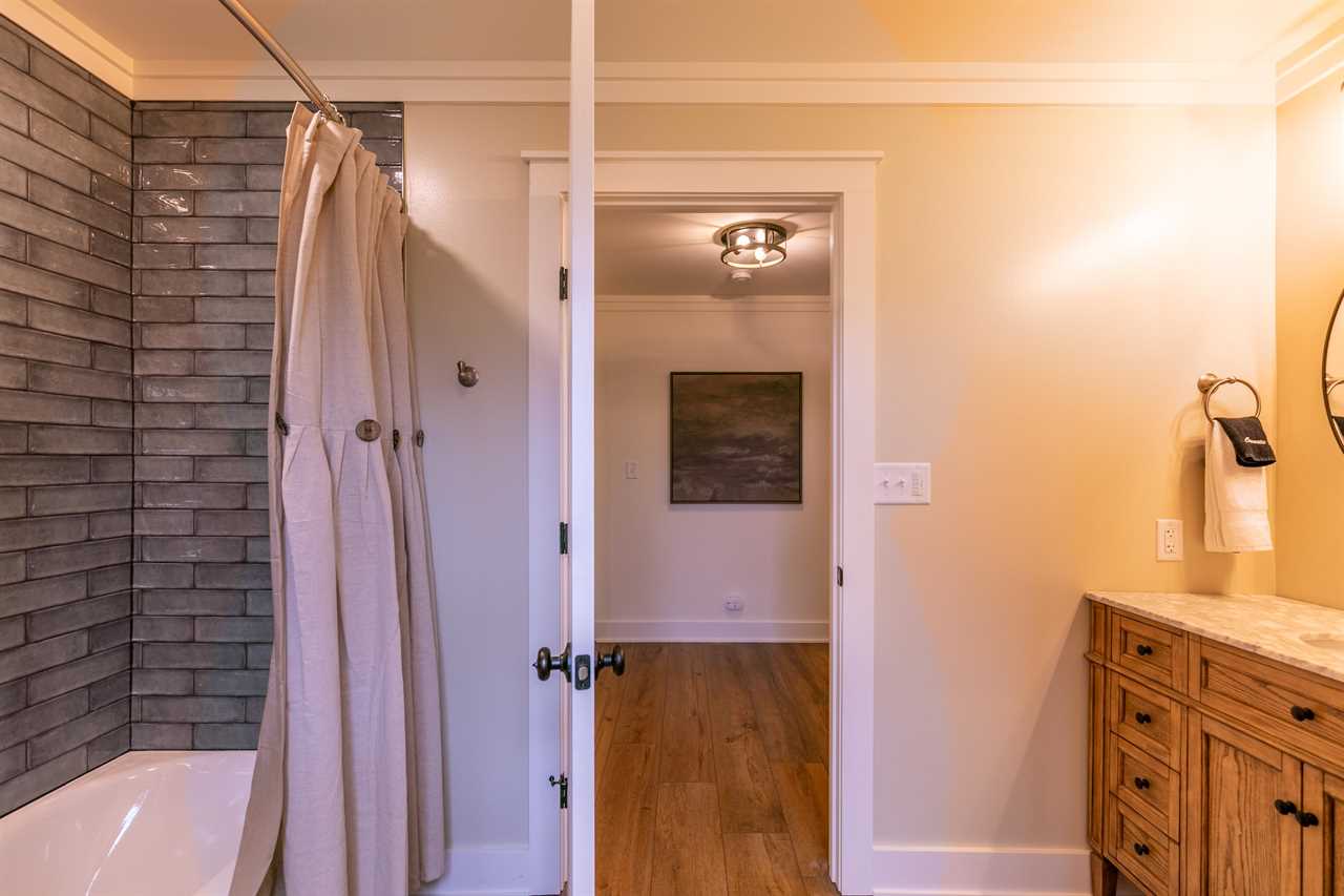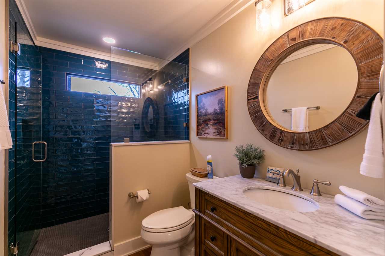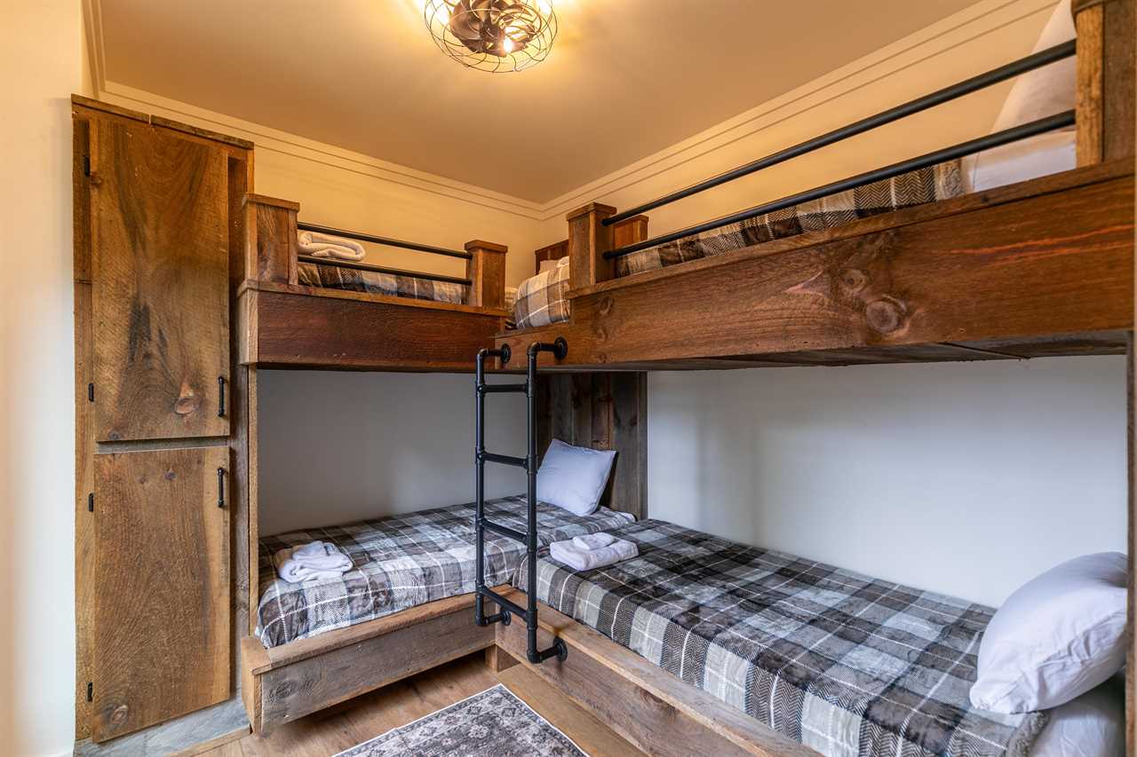 Time for bed? Cornerstone offers four relaxing sleeping spaces. On the main level is a King suite with TV, access to the deck, and an ensuite bath with a tiled shower and double granite vanities. Upstairs is a second sleeping area, this one featuring a Queen bed and a full bath off the nearby hall with a tub/shower. On the lower level is a second King suite with TV and ensuite bath with shower and heated floors, as well as a fourth area offering two sets of built-in twin over twin bunk beds and access to a fourth bathroom down the hall with tub/shower.