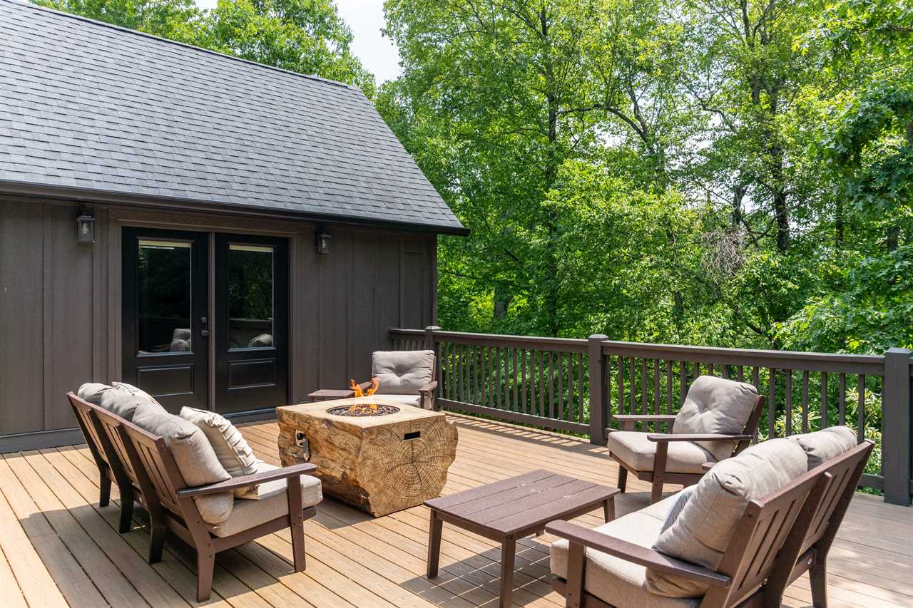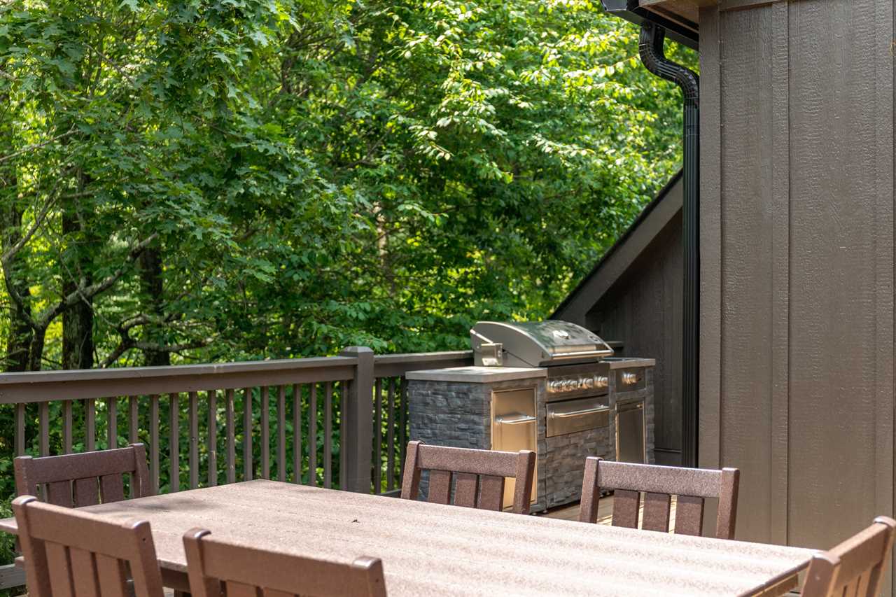 Cornerstone offers ample areas for you and your loved ones to gather together to have fun, relax, and make memories. Head downstairs to the game room for a fun game of pool or poker. Step outside and enjoy a relaxing dip in the covered hot tub with waterfall feature, and after dark pull up an Adirondack chair to the in-ground stone firepit ring and roast marshmallows while you tell stories. On the main level deck, enjoy gracious outdoor living mountain style around the gas firetable.