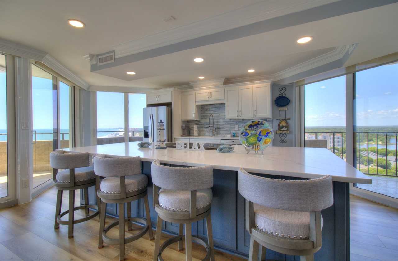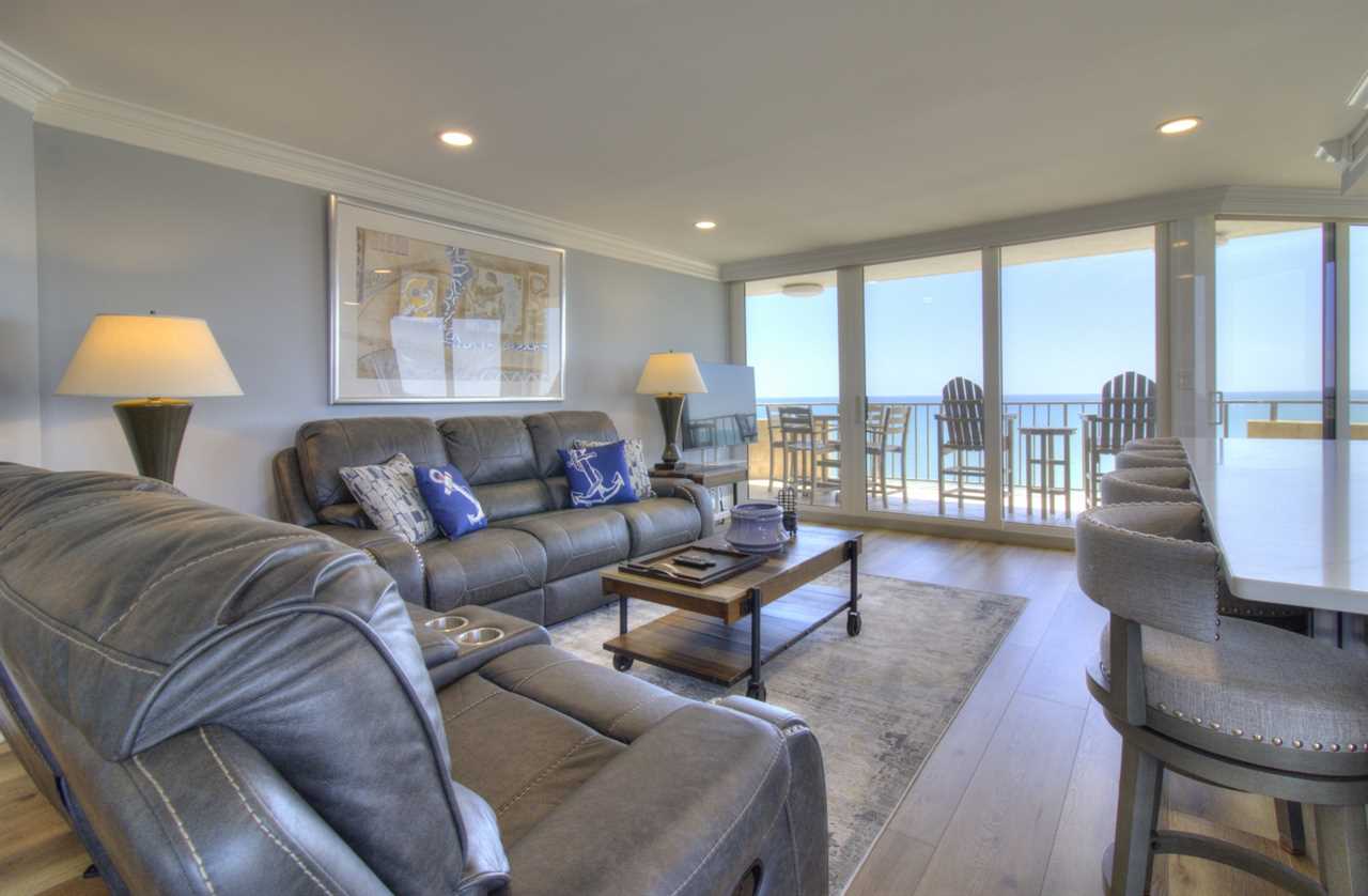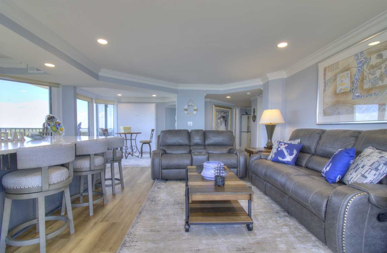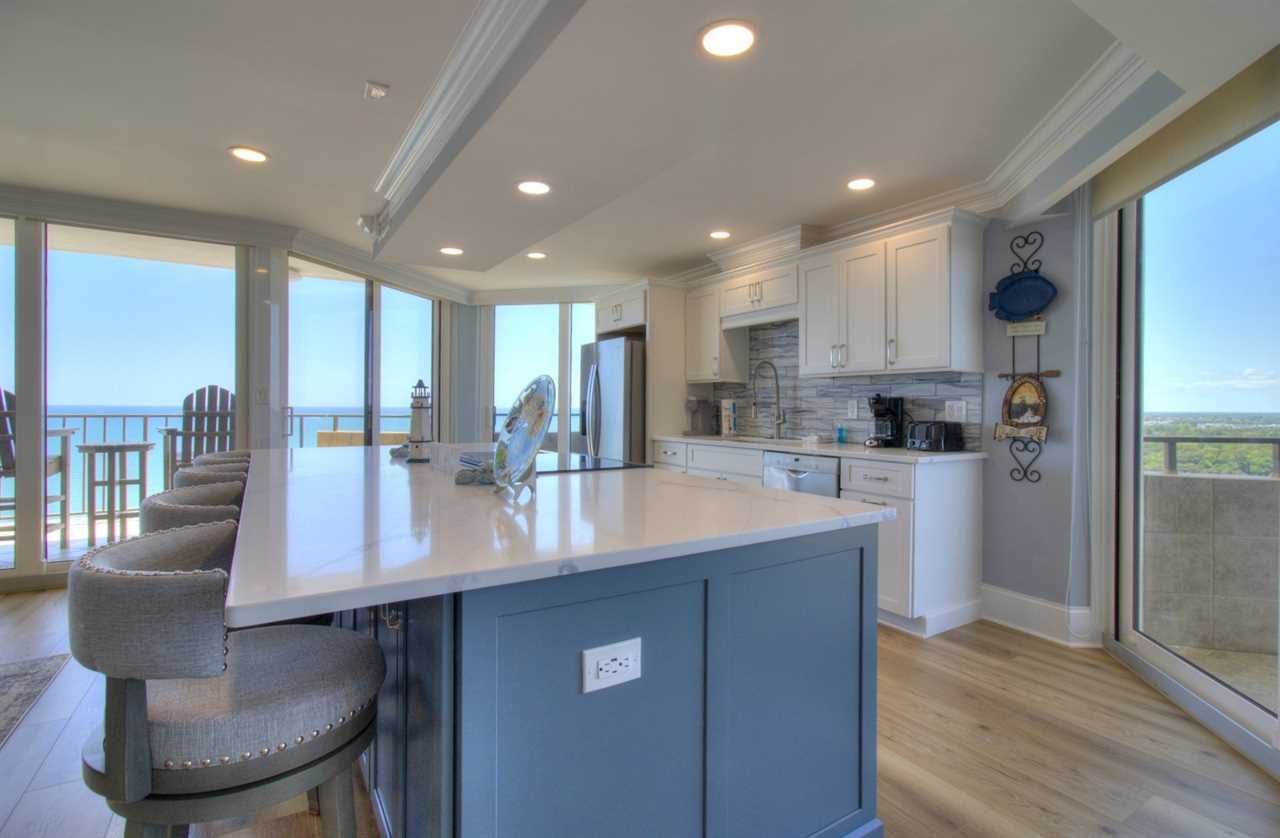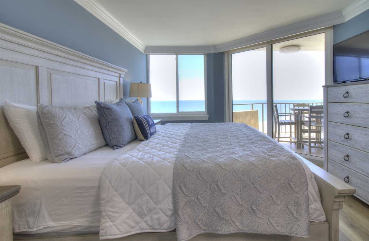 Welcome to this newly renovated 2-bedroom, 2-bathroom penthouse at Maisons-sur-Mer, perched on the 24th floor for unparalleled views of Myrtle Beach and the Atlantic Ocean. This stunning unit features an expansive balcony where you can soak in breathtaking sunrises and the soothing sounds of the waves. The recent renovation has elevated this space into a contemporary haven, complete with a sleek, fully equipped kitchen, open-concept living areas, and beautifully designed bedrooms. Each bedroom is furnished with a luxurious king bed, plush bedding, and ample storage, with the primary suite offering added privacy and its own en-suite bath. Floor-to-ceiling windows flood the space with natural light, framing the spectacular ocean vistas. French for "houses on the sea," Maisons-Sur-Mer offers luxurious accommodations in one of the most prestigious locations along the Grand Strand. Located in Myrtle Beach, this property features 24-hour security, four elevators, a large outdoor pool, a kiddie pool, game room, putting green, tennis courts, a poolside tiki bar, cocktail lounge, a small on-site restaurant, access to the beach, as well as live entertainment during the summer months. Please note: This unit is not recommended for families with young children, as it has been thoughtfully designed and furnished with adult guests in mind. Saltwater Grande utilizes an identity and fraud protection program to verify guest identity. Depending on the arrival date, this very simple verification process may be required before you receive access to the property. Should this be necessary for your reservation, you will receive an email notification with further instructions. Have peace of mind knowing every rental includes Accidental Damage Protection by RentalGuardian, covering you for up to $25,000 in accidental damages that may occur during your stay. Enjoy upgraded bed linens, bath towels, washcloths, and kitchen hand towels! Departure cleaning is provided, as well as an Essentials Starter Pack, including a roll of paper towels, a roll of toilet paper in every bathroom, and a packet of dishwashing detergent. This property is in a quiet residential community. Disturbances that interfere with the rights, comforts or conveniences of other guests or owners at the property will not be tolerated. Large gatherings and parties are not permitted. Motorcycles, trailers, golf carts and mopeds are not permitted.