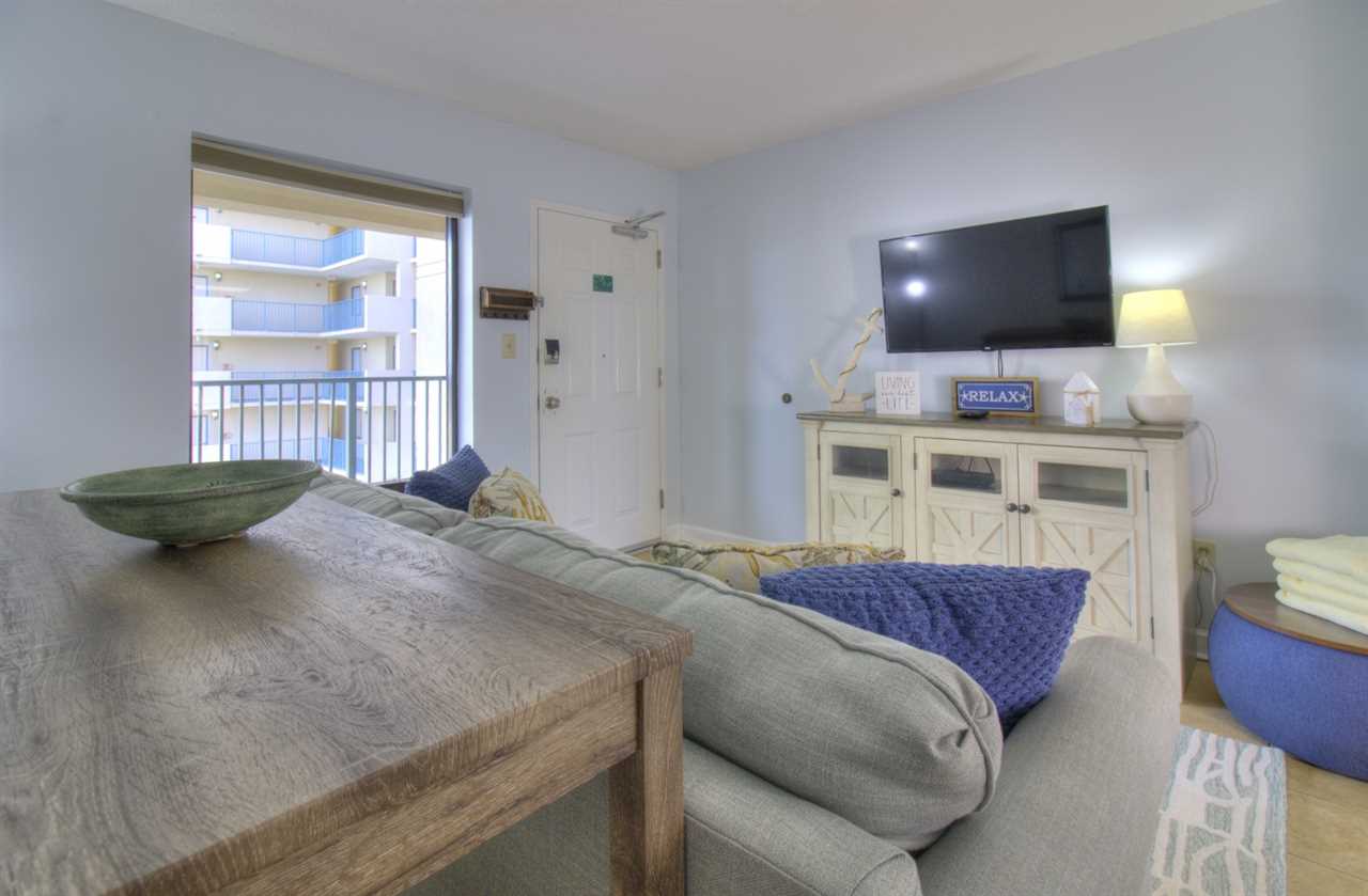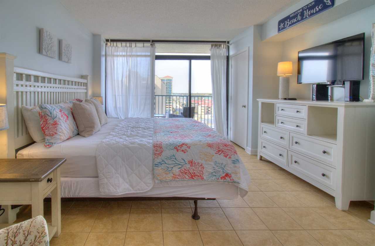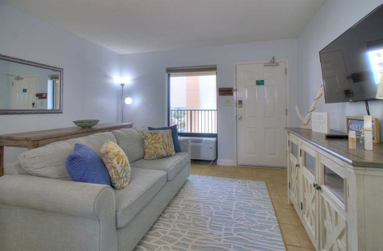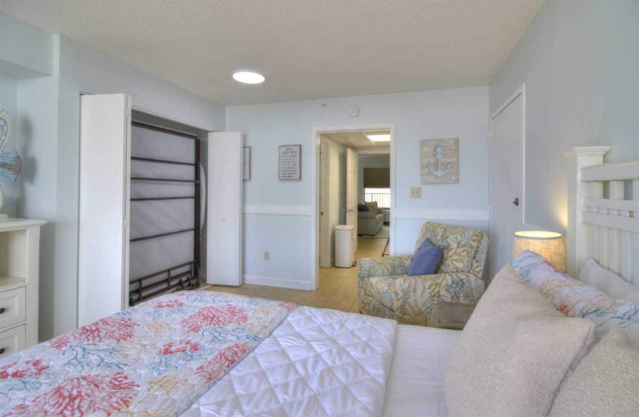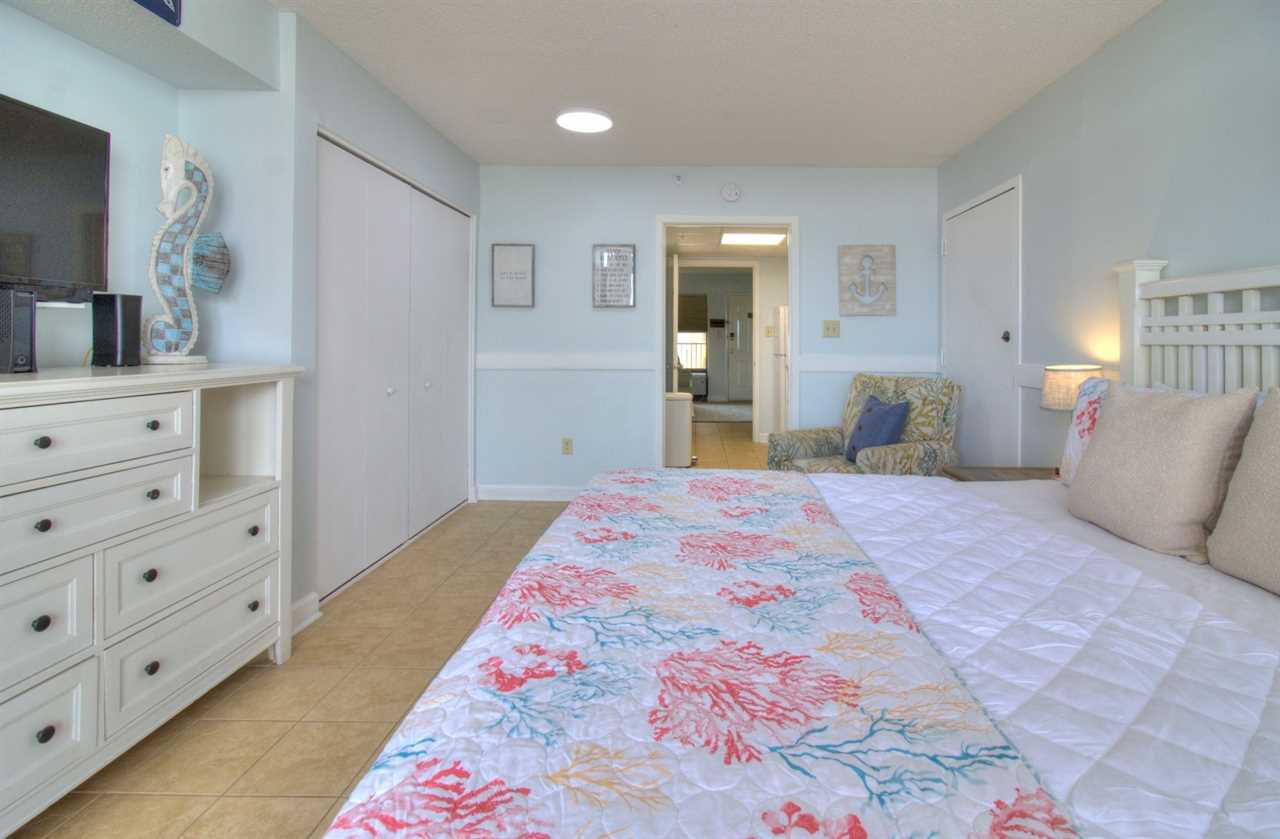 Welcome to The Verandas Unit 808, a delightful 1-bedroom, 1-bathroom condo located in the heart of North Myrtle Beach. Perched on the 8th floor, this cozy retreat offers a stunning ocean view from the private balcony—perfect for sipping your morning coffee or unwinding after a day of adventure while listening to the soothing sounds of the Atlantic. Inside, the bedroom features a luxurious king-size bed, ensuring a restful night's sleep, along with a full-size Murphy bed, offering additional sleeping space for guests. The unit has been thoughtfully updated with modern furnishings and stylish fixtures, providing all the comforts of home in a serene coastal setting. During your stay at The Verandas, take advantage of the fantastic on-site amenities designed to enhance your experience. Cool off in the outdoor pool, float along the lazy river, or relax in the bubbling hot tub, all just steps from your door. ​​​​​​​ Whether you're here to soak up the sun on the beach, explore the vibrant local dining and entertainment scene, or simply relax in comfort and style, this condo is the perfect home base for your North Myrtle Beach getaway. Experience the perfect blend of relaxation and convenience in this charming ocean-view escape. Saltwater Grande utilizes an identity and fraud protection program to verify guest identity. Depending on the arrival date, this very simple verification process may be required before you receive access to the property. Should this be necessary for your reservation, you will receive an email notification with further instructions. Have peace of mind knowing every rental includes Accidental Damage Protection by RentalGuardian, covering you for up to $25,000 in accidental damages that may occur during your stay. Enjoy upgraded bed linens, bath towels, washcloths, and kitchen hand towels! Departure cleaning is provided, as well as an Essentials Starter Pack, including a roll of paper towels, a roll of toilet paper in every bathroom, and a packet of dishwashing detergent. This property is in a quiet residential community. Disturbances that interfere with the rights, comforts or conveniences of other guests or owners at the property will not be tolerated. Large gatherings and parties are not permitted. Motorcycles, trailers, golf carts and mopeds are not permitted.