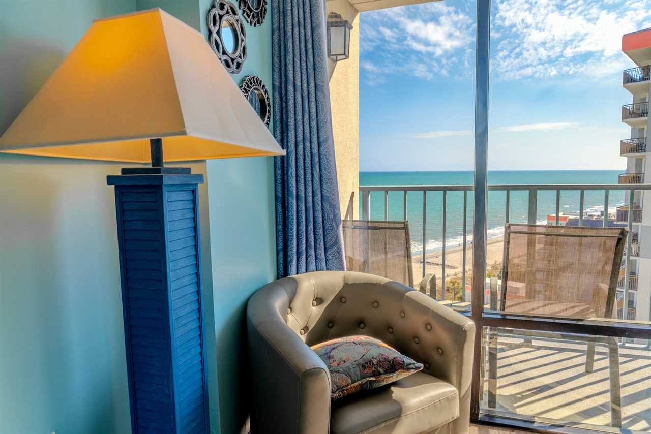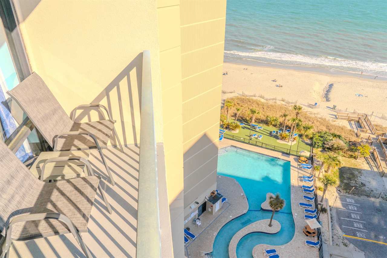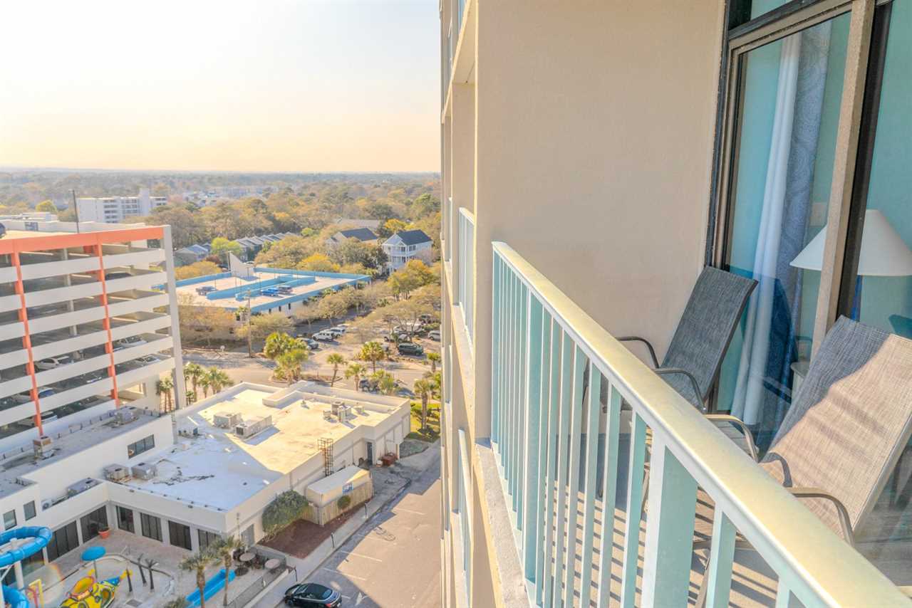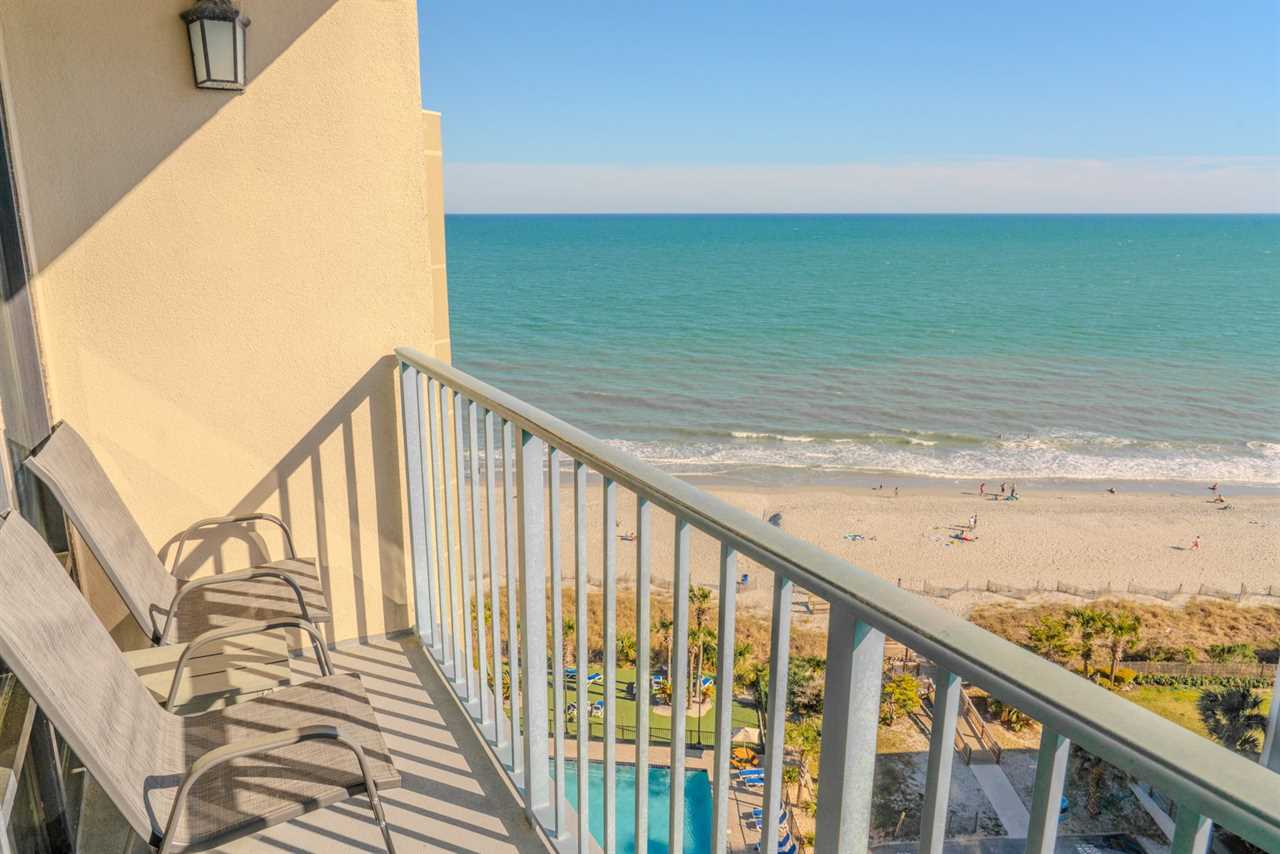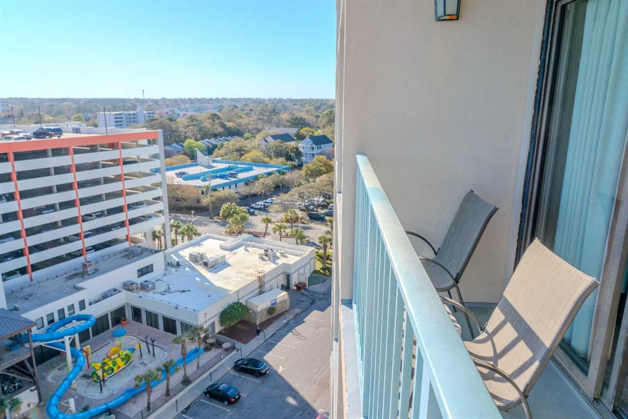 Both units feature private balconies, offering breathtaking views of the Atlantic Ocean and glimpses of Myrtle Beach. Whether you're sipping morning coffee or unwinding after a day of adventure, these balconies provide the perfect spot to soak in the beauty of the coastline.