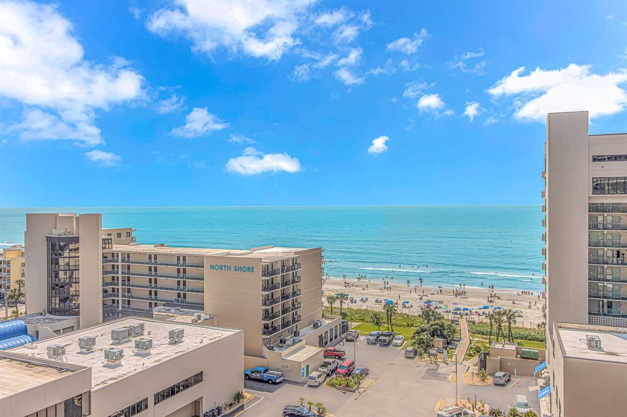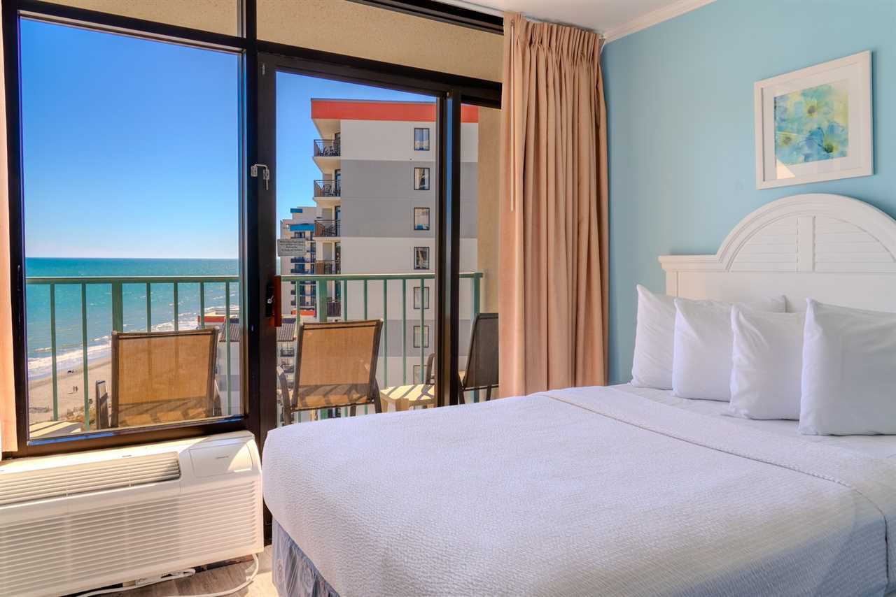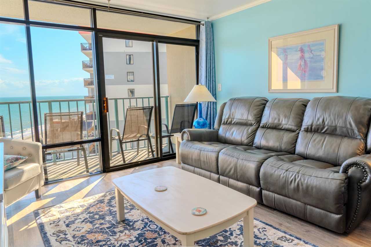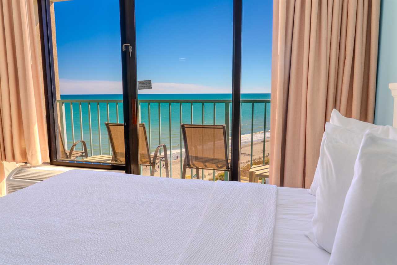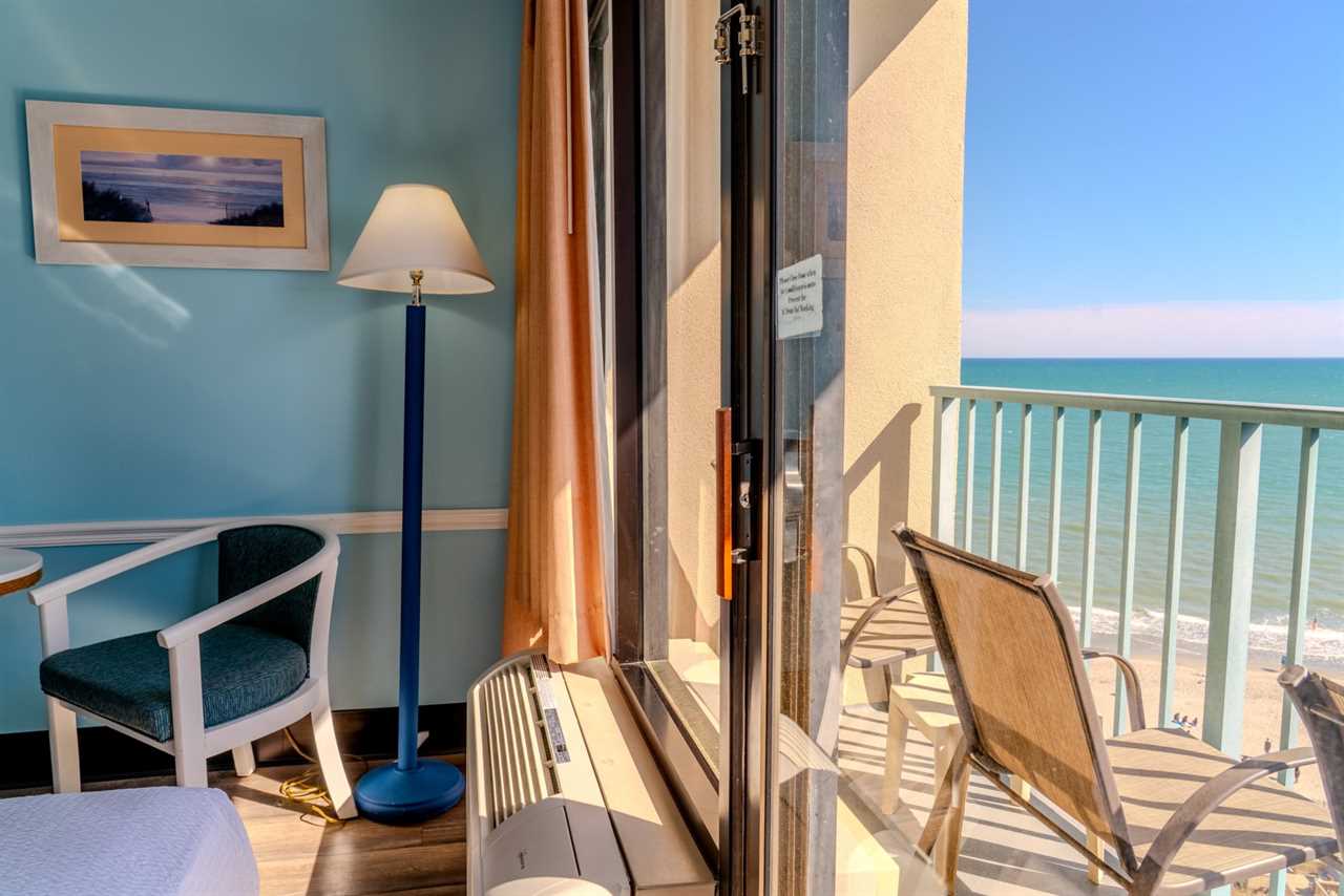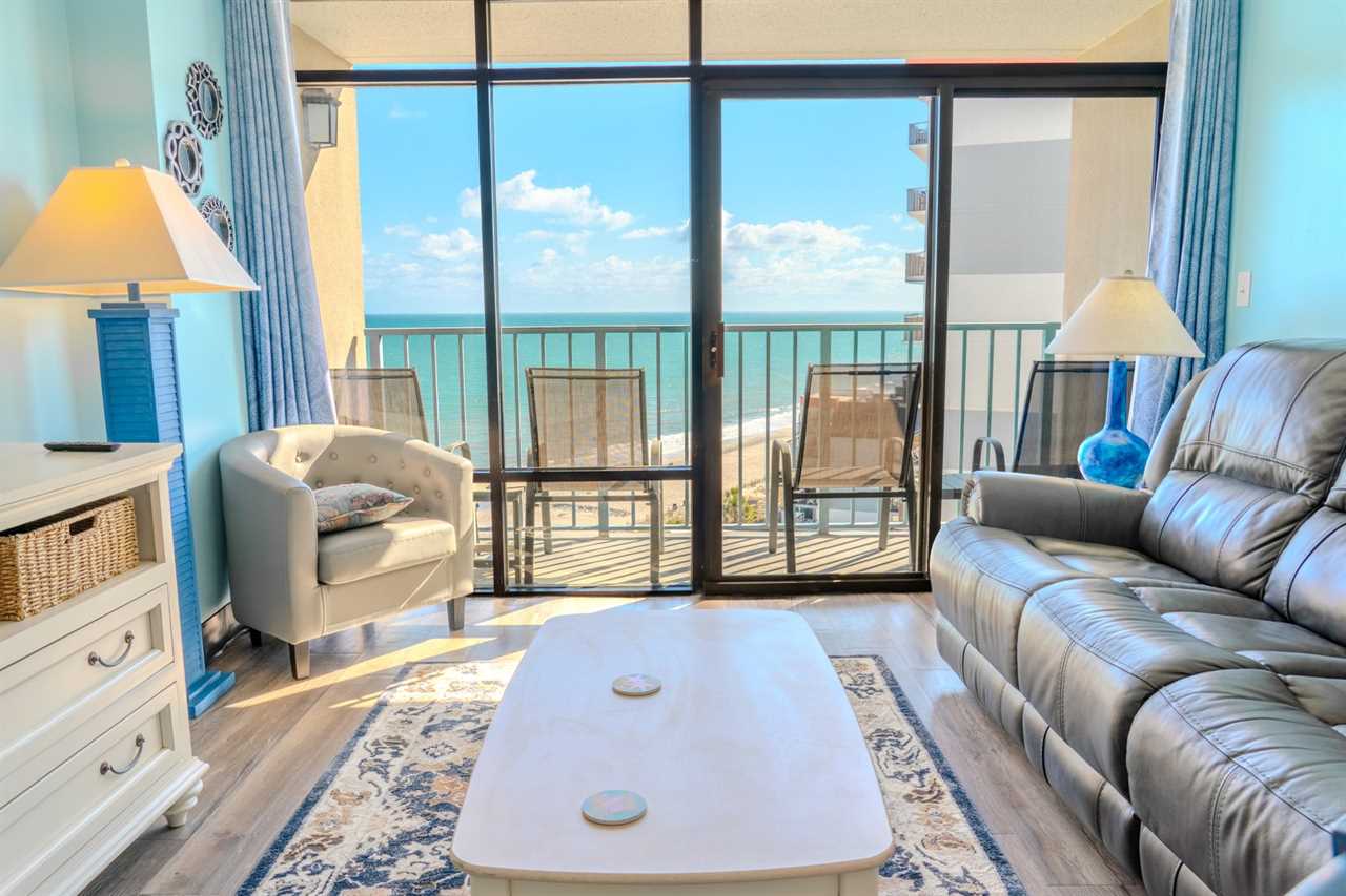 Both units feature private balconies, offering breathtaking views of the Atlantic Ocean and glimpses of Myrtle Beach. Whether you're sipping morning coffee or unwinding after a day of adventure, these balconies provide the perfect spot to soak in the beauty of the coastline.
