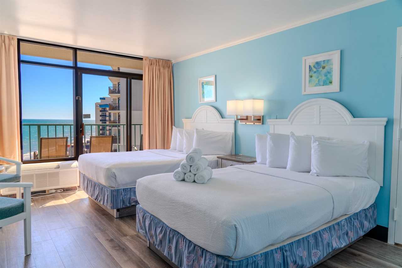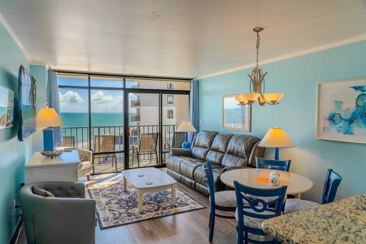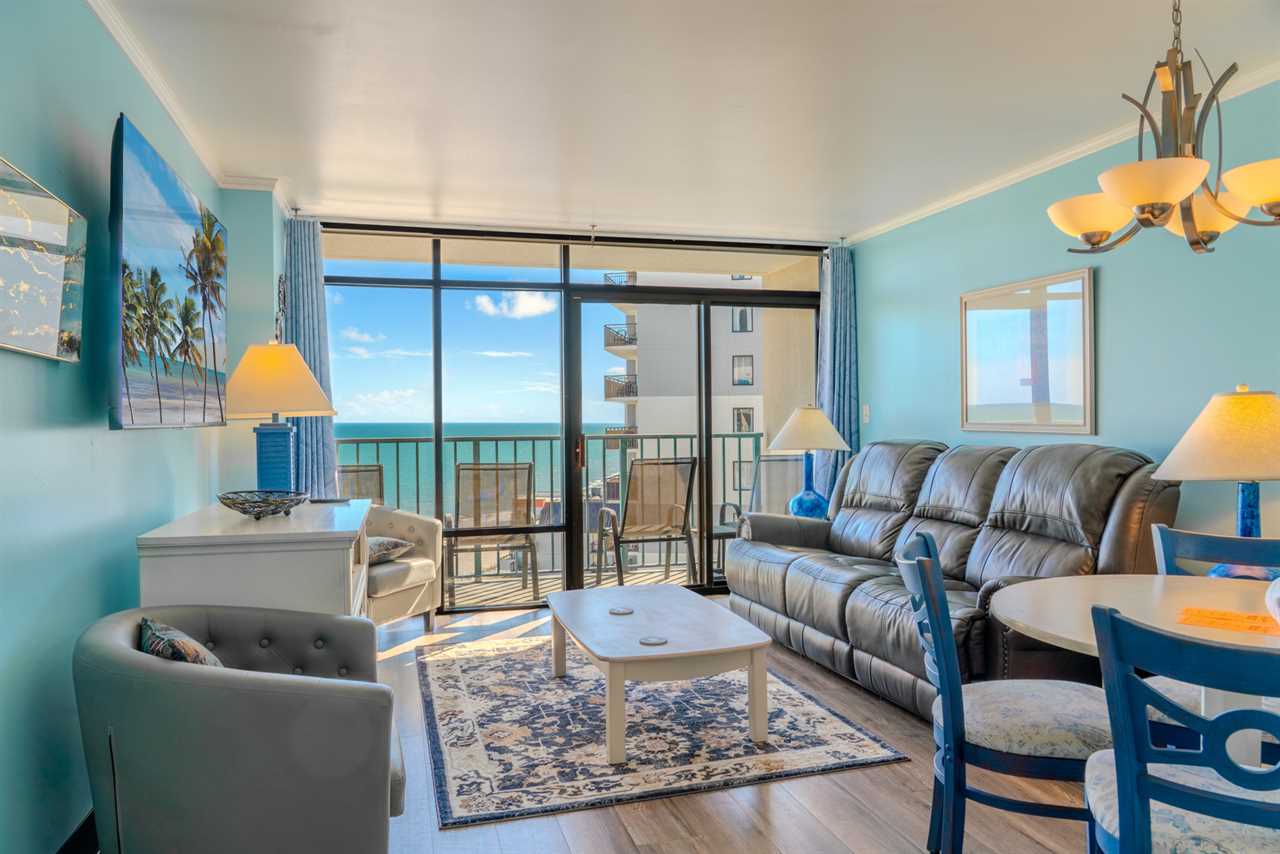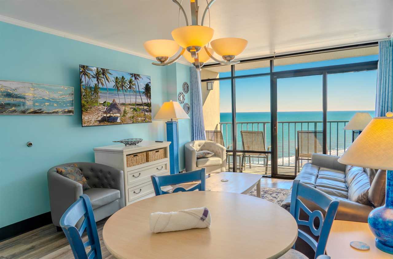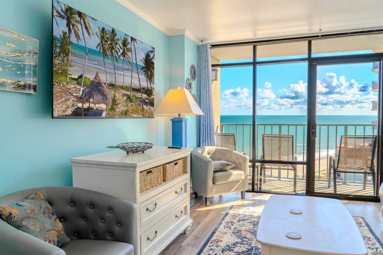 Both units feature private balconies, offering breathtaking views of the Atlantic Ocean and glimpses of Myrtle Beach. Whether you're sipping morning coffee or unwinding after a day of adventure, these balconies provide the perfect spot to soak in the beauty of the coastline.