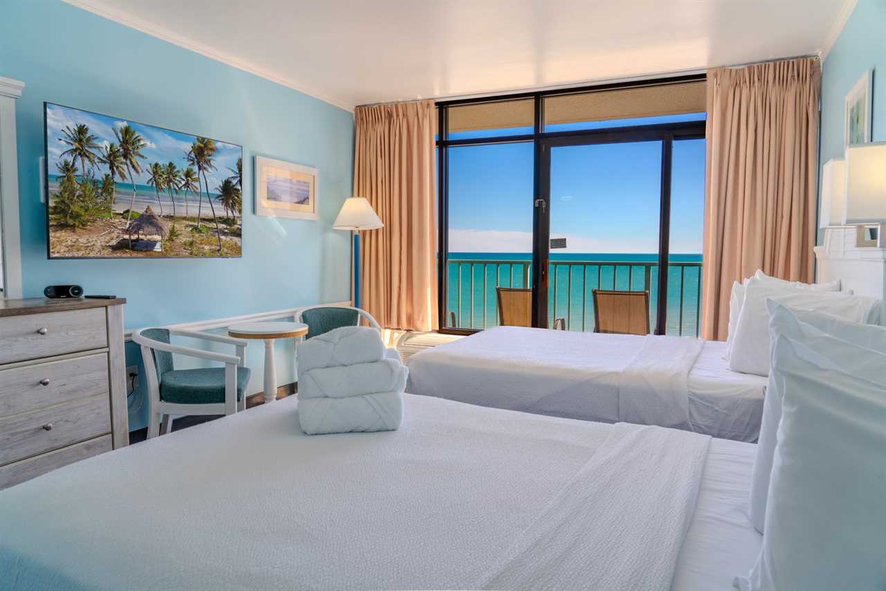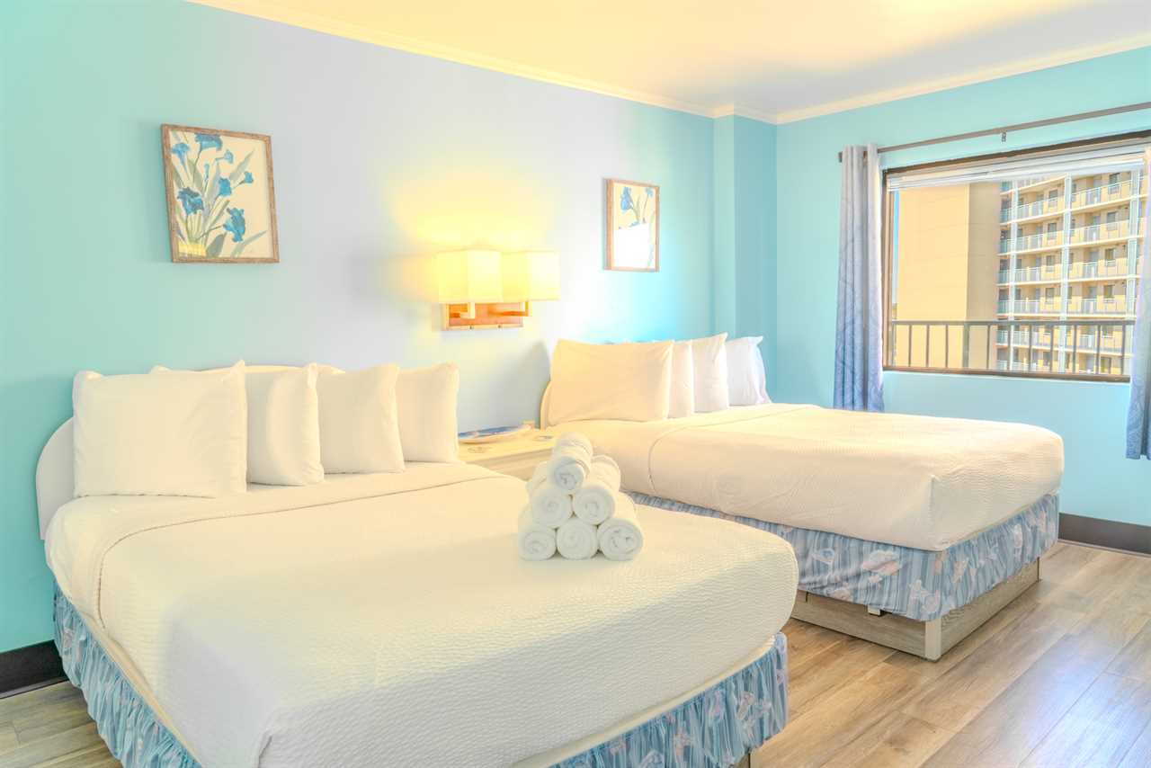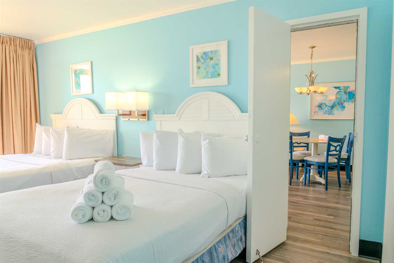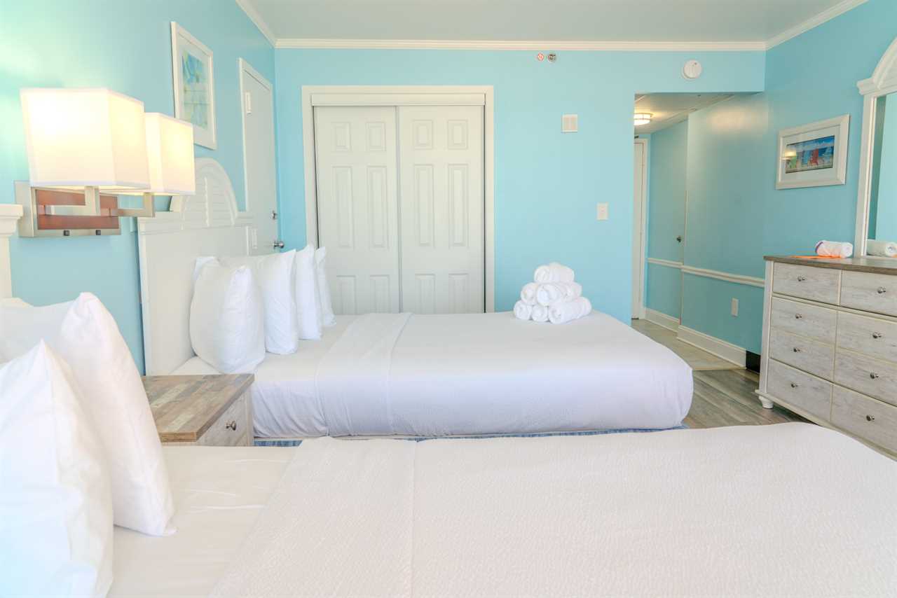 This is a unique opportunity to book two individual condos in one! Sand Dunes 1245 and 1246 are conveniently located side by side, offering private entry doors for each unit while delivering all the comforts of home. Together, these ocean-view units can comfortably accommodate up to 8 guests with four extra long double beds spread across both spaces! Sand Dunes 1245 and 1246 are conveniently located side by side, offering private entry doors for each unit, as well as an adjoining door, while delivering all the comforts of home.