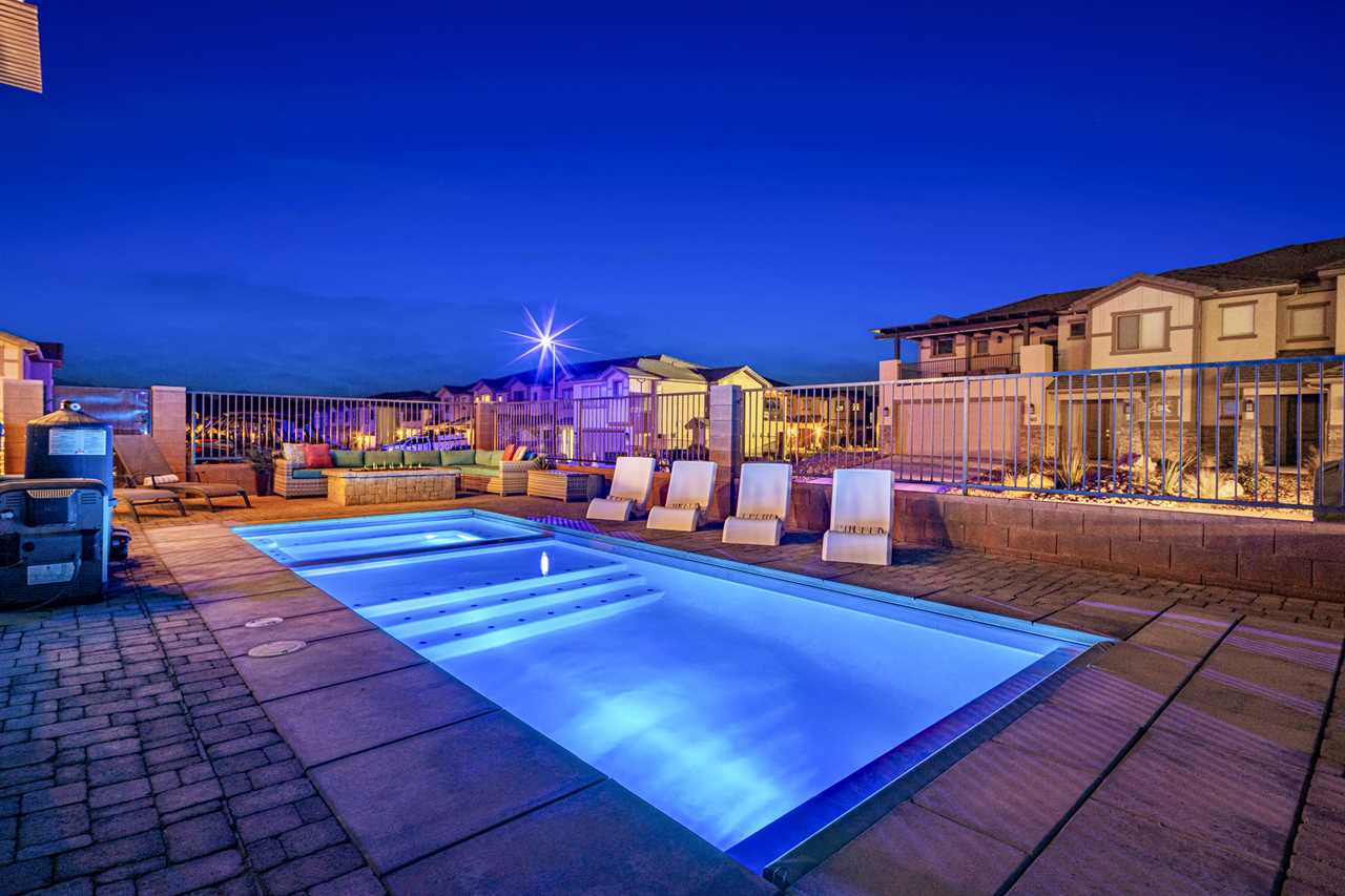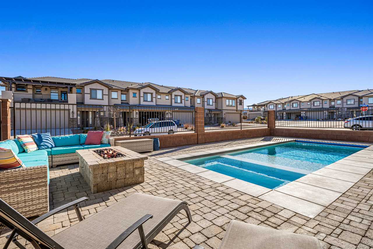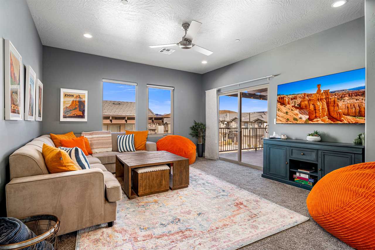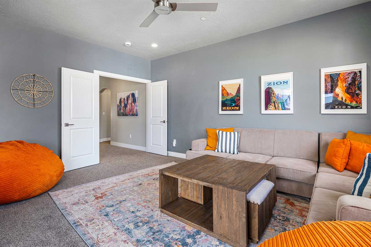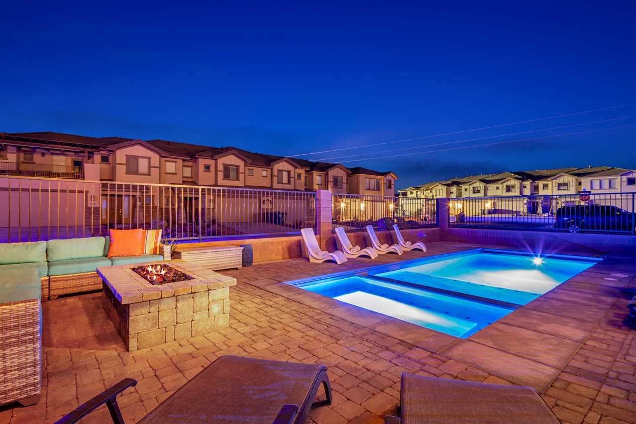 This luxurious 7-bedroom, 6-bathroom gem sleeps up to 20 guests, making it ideal for large groups, families, or friends. Whether you're relaxing by your very own private pool (with plenty of pool toys for the little ones) or unwinding in the private hot tub, Desert Sky has everything you need for the ultimate retreat. Gather around the outdoor seating and enjoy meals al fresco while soaking in the stunning desert views. Looking for some fun? Challenge your loved ones to a game of cornhole, or dive into a selection of board games perfect for any age. When you're ready to relax, cozy up and watch a movie on one of the many Smart TVs provided in the home. Whether you're splashing around in the resort's amazing lazy river, playing pickleball on the community courts, or enjoying a peaceful evening on your private balcony, Desert Sky promises an unforgettable vacation experience. Zion Village Resort is the perfect home base for exploring all that Southern Utah has to offer. Located just miles from Zion National Park, this stunning resort offers everything you need for relaxation and recreation. Book your stay at Desert Sky today and create lasting memories with your loved ones in the heart of Zion Village Resort!