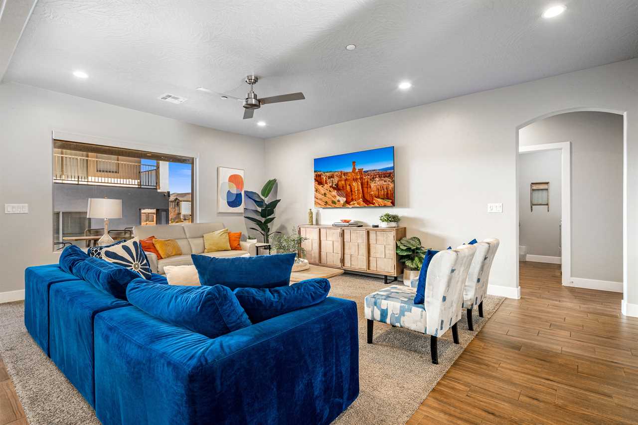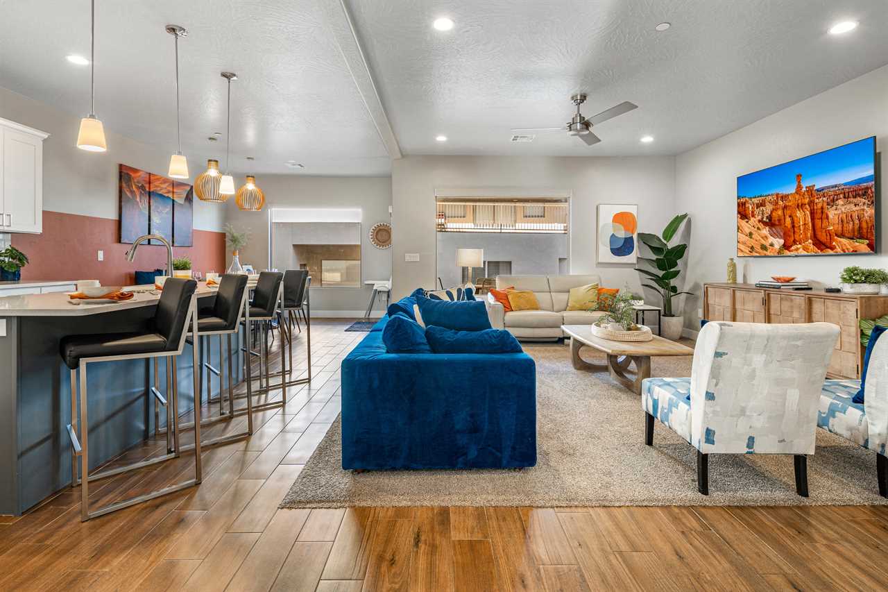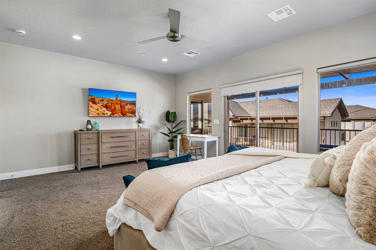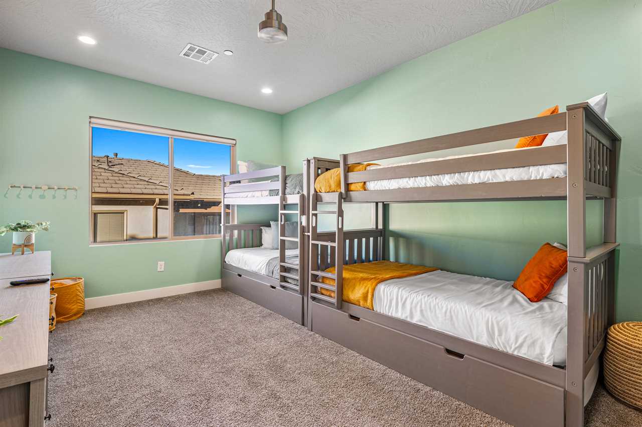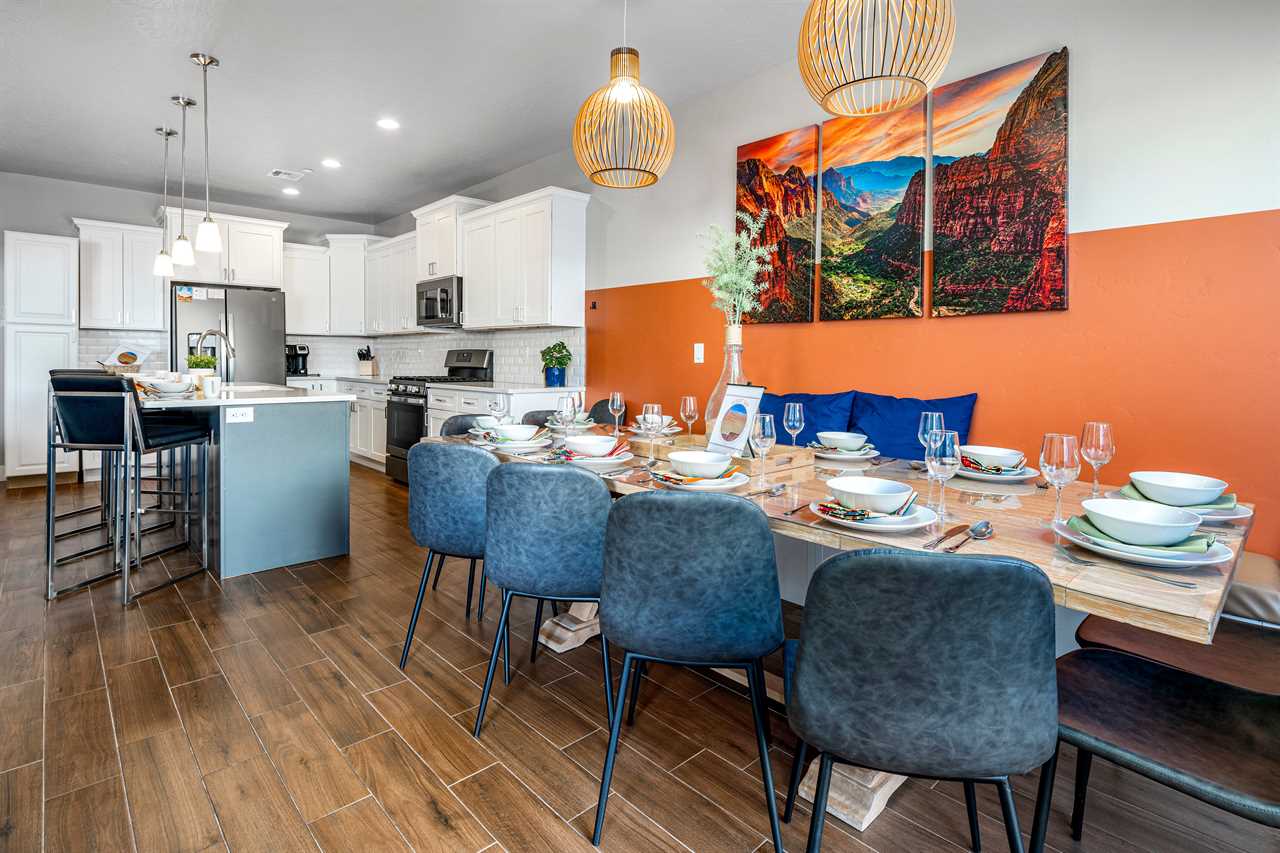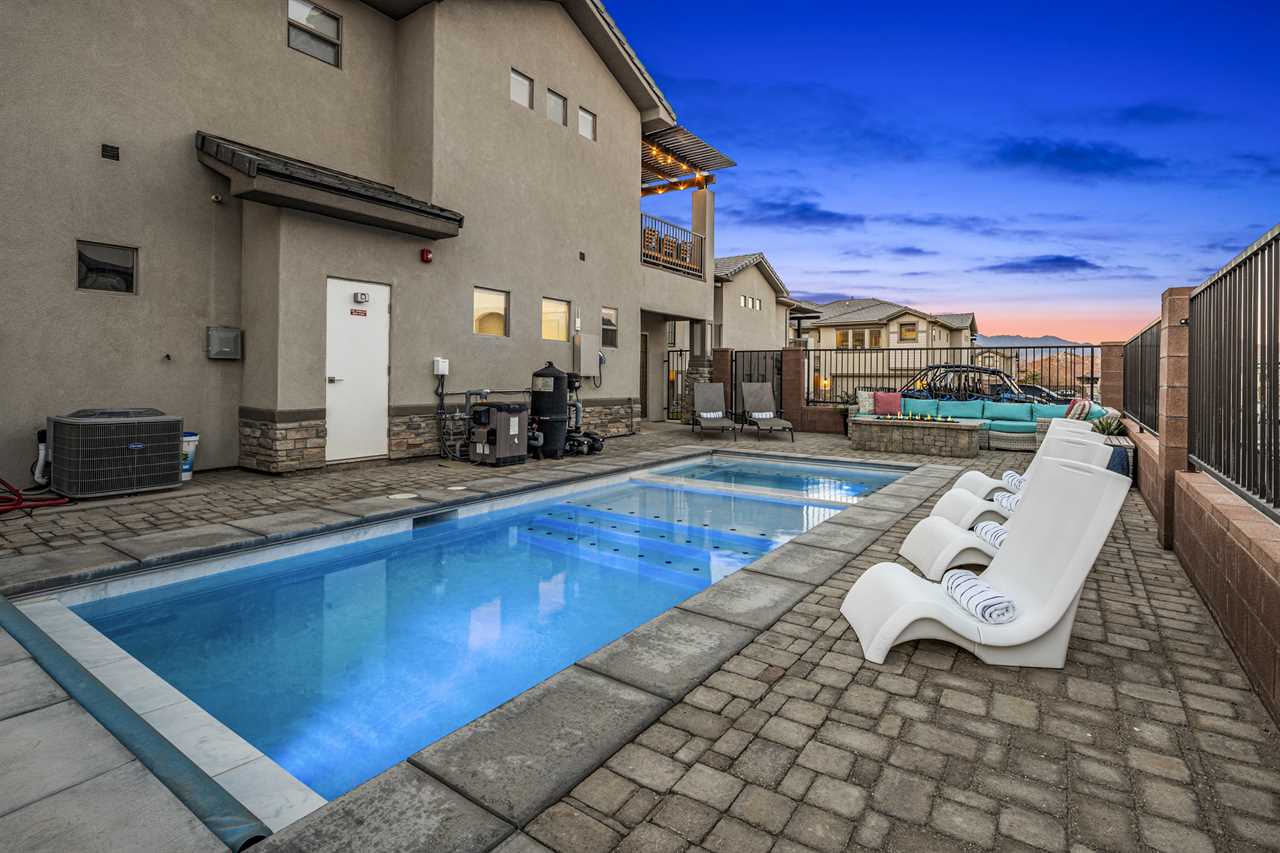 This luxurious 7-bedroom, 6-bathroom gem sleeps up to 20 guests, making it ideal for large groups, families, or friends. Whether you're relaxing by your very own private pool (with plenty of pool toys for the little ones) or unwinding in the private hot tub, Desert Sky has everything you need for the ultimate retreat. Gather around the outdoor seating and enjoy meals al fresco while soaking in the stunning desert views. Looking for some fun? Challenge your loved ones to a game of cornhole, or dive into a selection of board games perfect for any age. When you're ready to relax, cozy up and watch a movie on one of the many Smart TVs provided in the home. Whether you're splashing around in the resort's amazing lazy river, playing pickleball on the community courts, or enjoying a peaceful evening on your private balcony, Desert Sky promises an unforgettable vacation experience. Zion Village Resort is the perfect home base for exploring all that Southern Utah has to offer. Located just miles from Zion National Park, this stunning resort offers everything you need for relaxation and recreation. Book your stay at Desert Sky today and create lasting memories with your loved ones in the heart of Zion Village Resort!